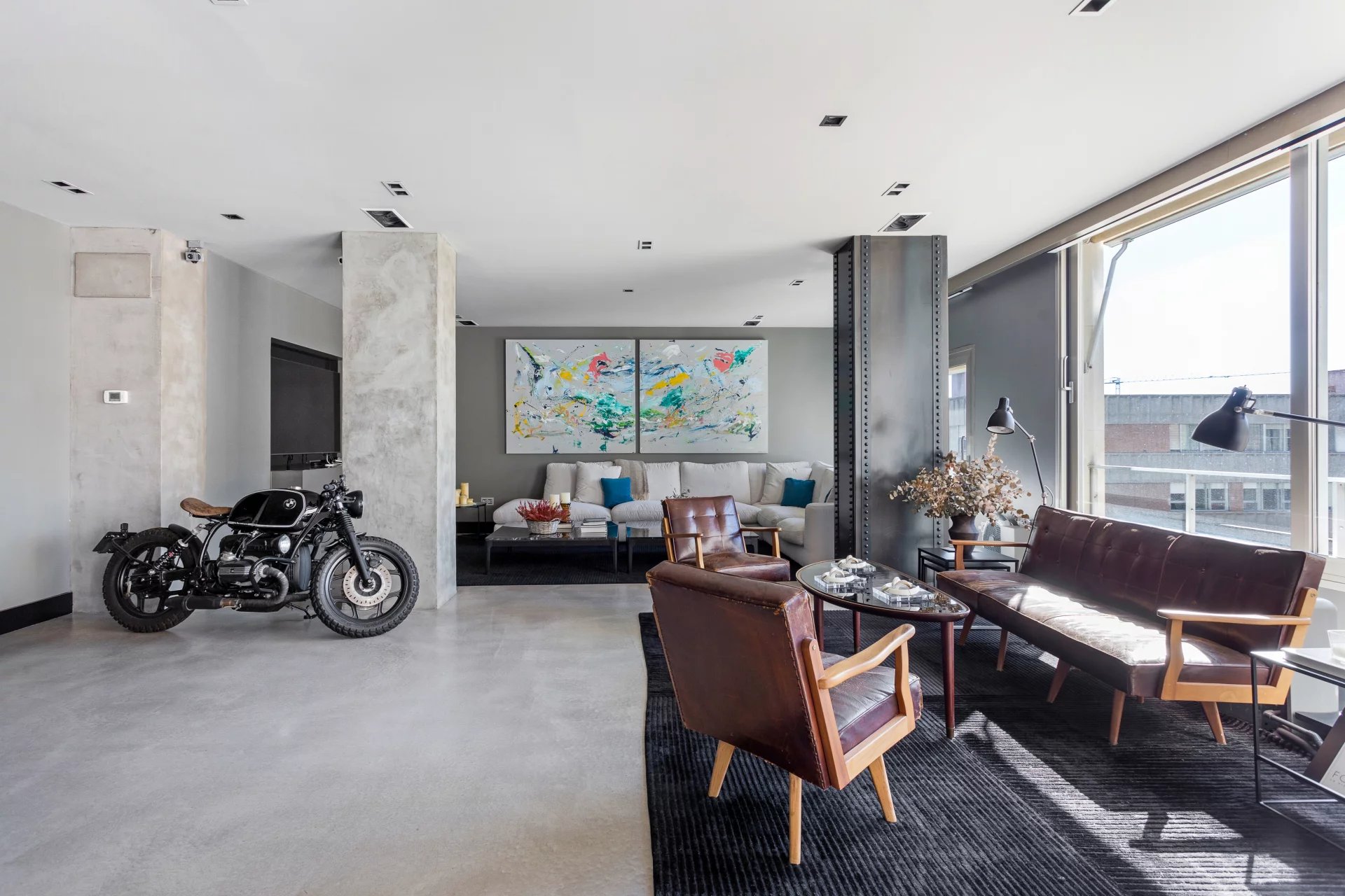 Полы из микроцемента и натурального дерева