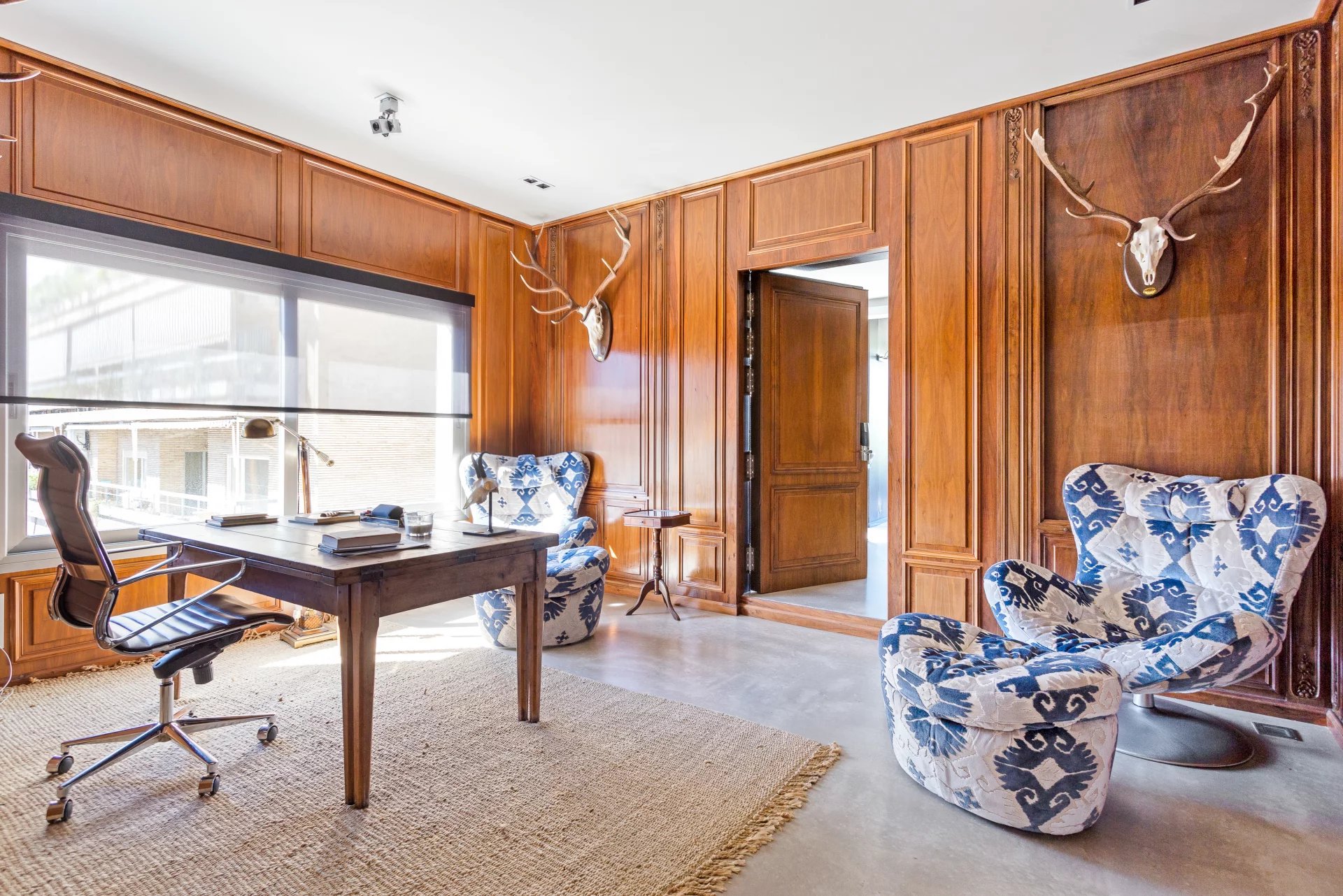 Кухня с немецким дизайном, оснащенная техникой Gaggenau, сочетает в себе эстетику и функциональность. Здесь есть кабинет, отдельная прачечная и служебная спальня с собственной ванной комнатой.