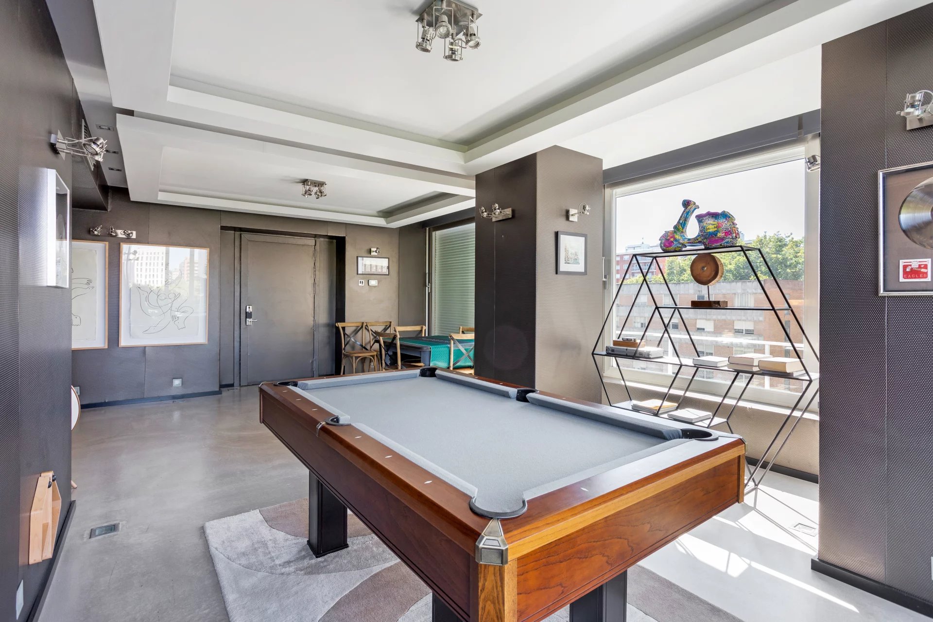 В доме имеется впечатляющая зона приема и представления, состоящая из нескольких соединенных между собой залов, залитых естественным светом благодаря большим окнам и открытому виду на парк. Элегантная отдельная столовая, вмещающая до 15 гостей, предназначена для приема и празднования в изысканной обстановке. Это пространство дополняют игровая комната и частный, полностью звукоизолированный кинозал, созданный для максимального удовольствия от просмотра кинофильмов.