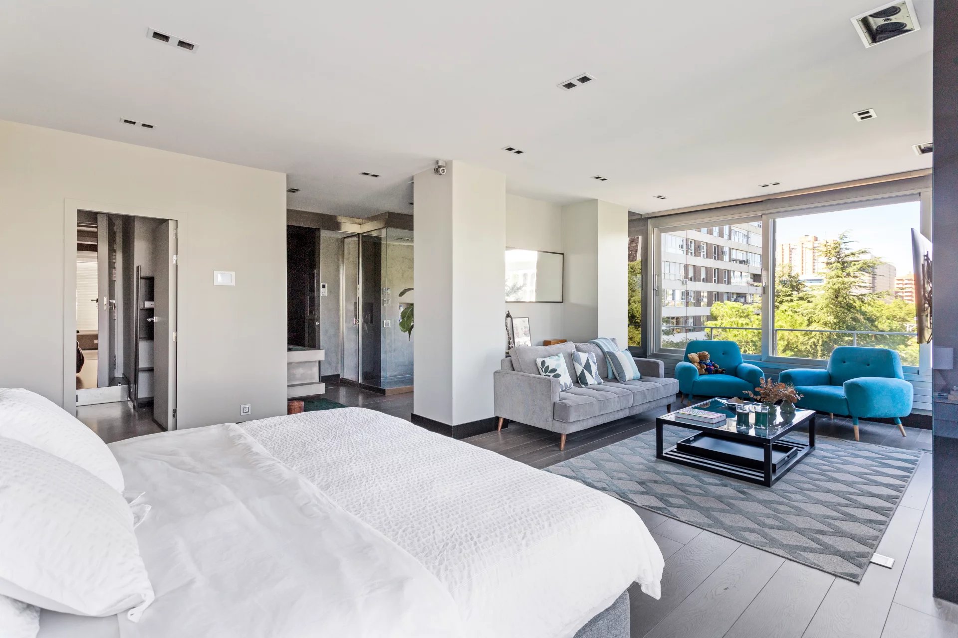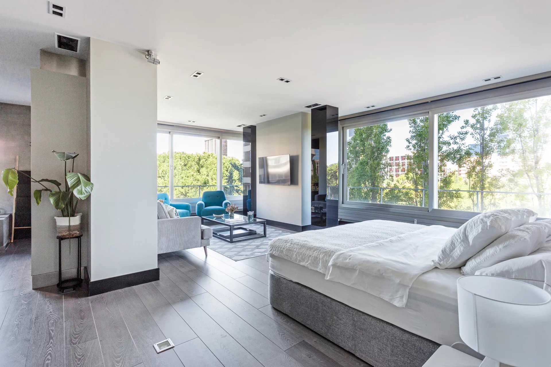 Расположенная на четвертом этаже современного особняка представительского класса, эта необычная недвижимость с беспрепятственным видом на сады парка Изабель II предлагает исключительное сочетание уединения, простора и элегантности в одном из самых эксклюзивных районов города.