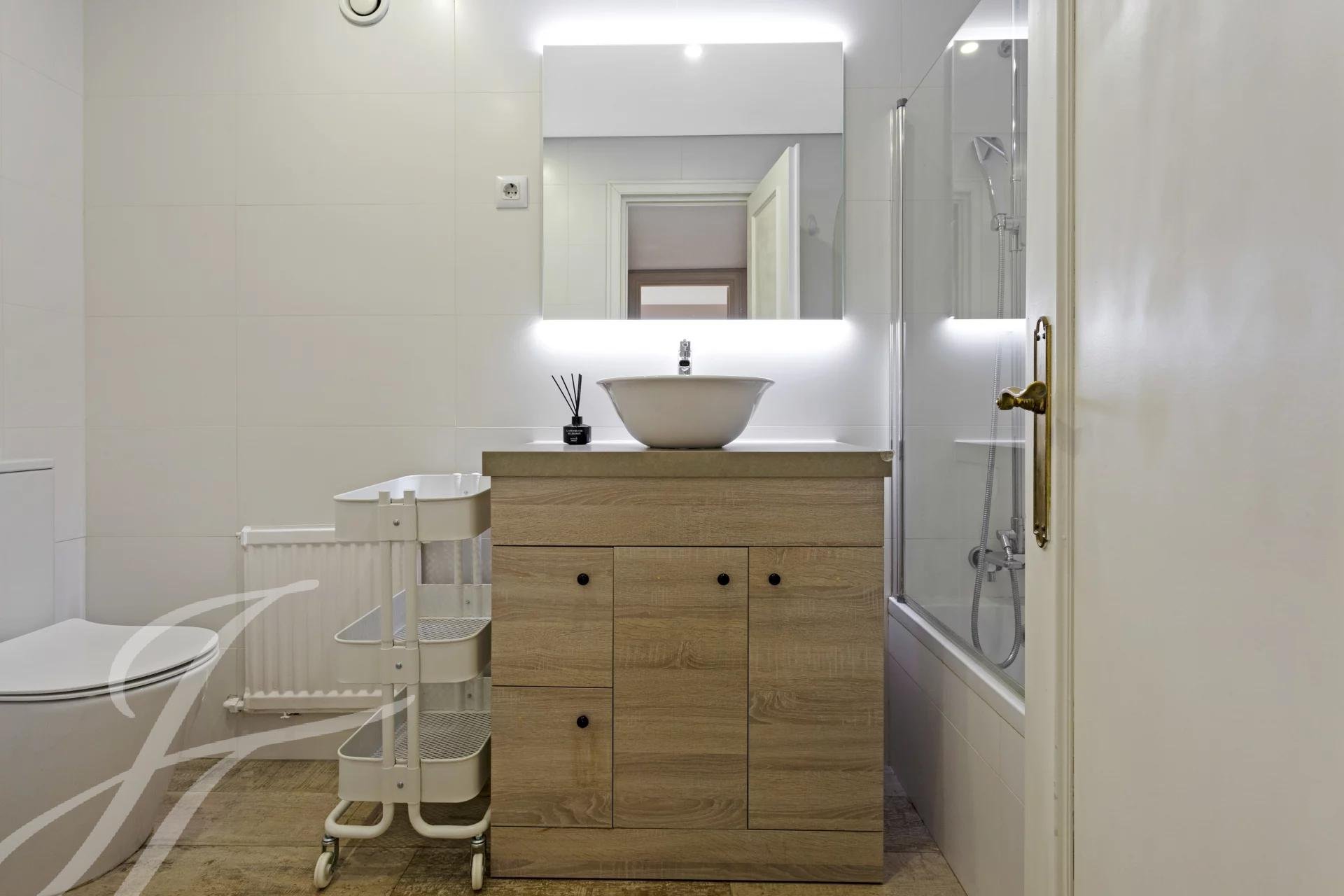 В здании есть швейцар, который живет на территории, и фантастический бассейн, окруженный зелеными зонами. В здании есть парковка с возможностью аренды парковочного места с прямым доступом к квартире. Потребление центрального отопления радиатором и горячей и холодной воды индивидуально по счетчику, НЕ включено в арендную плату. Переносной кондиционер, так как сообщество категорически запрещает устанавливать кондиционеры на фасаде.