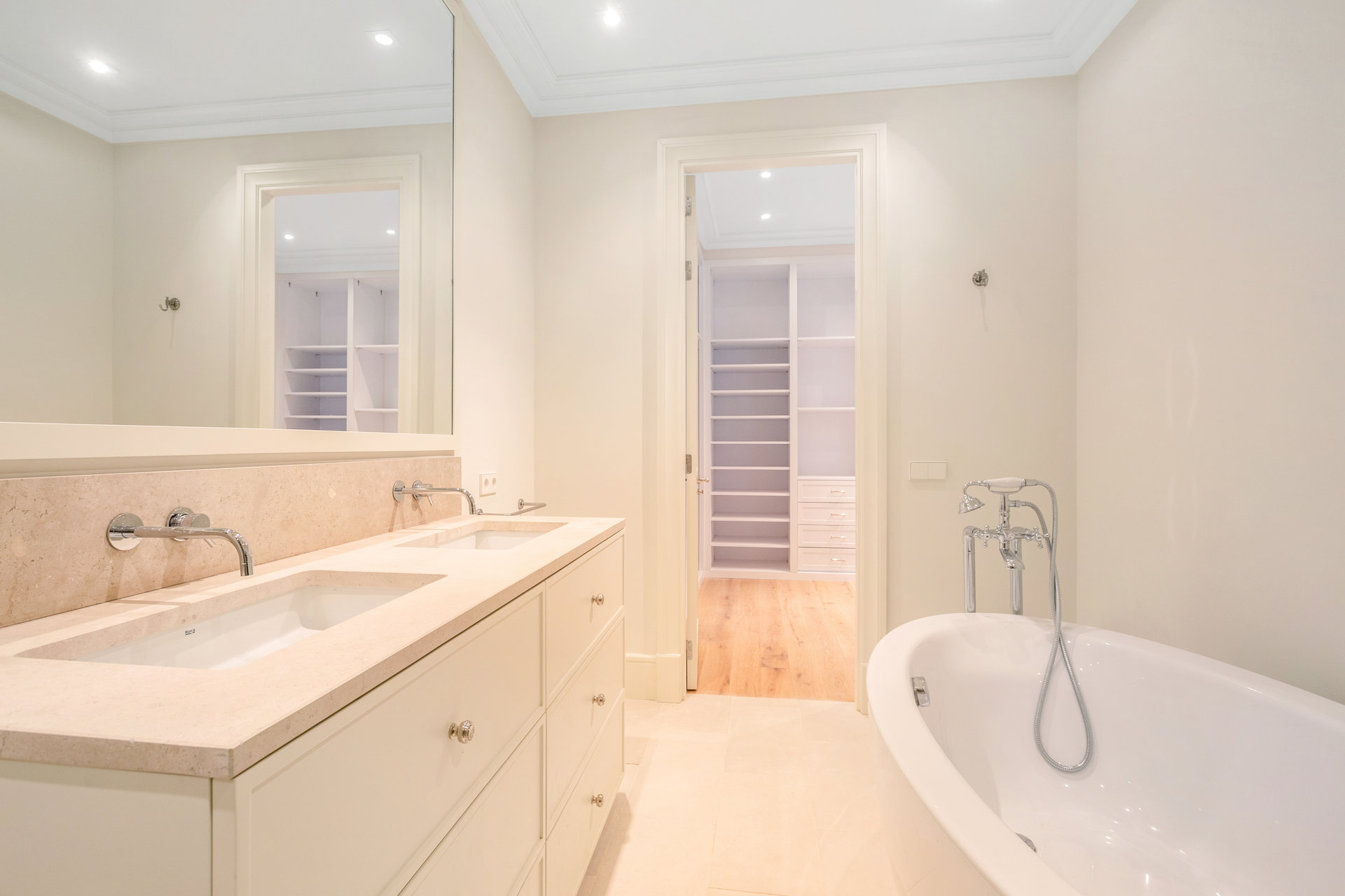 Расположенная на внешнем пятом этаже, квартира имеет площадь 251 м² и находится в строгом, классическом, высококлассном доме. Прихожая ведет в просторную гостиную с двумя комнатами, залитую естественным светом благодаря большим окнам, одно из которых имеет балкон. Столовая, независимая и элегантная, расположена рядом с кухней.