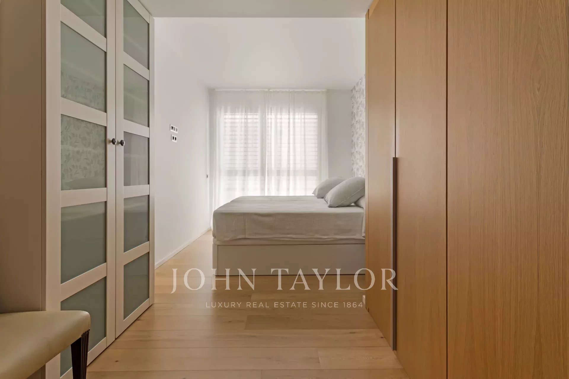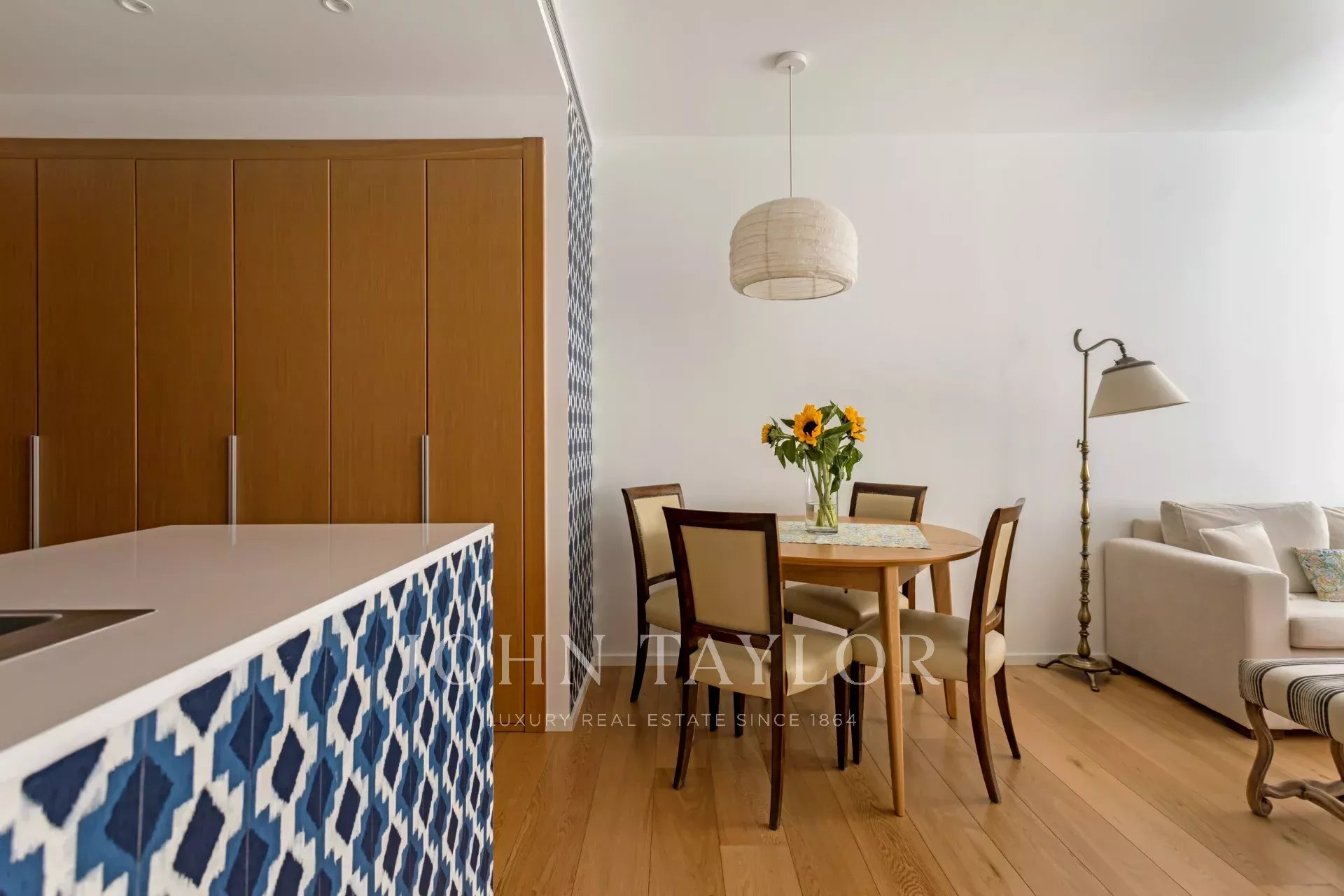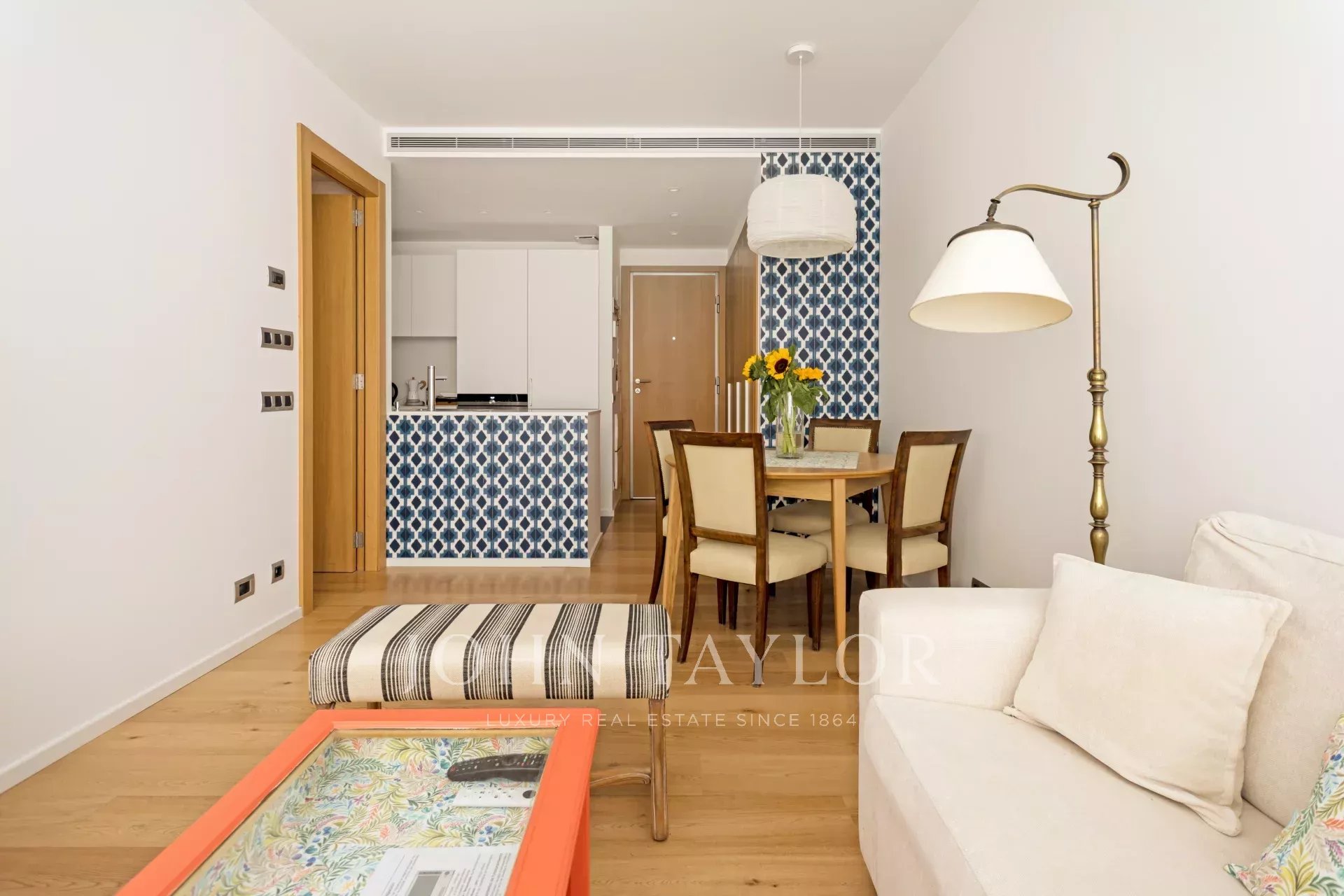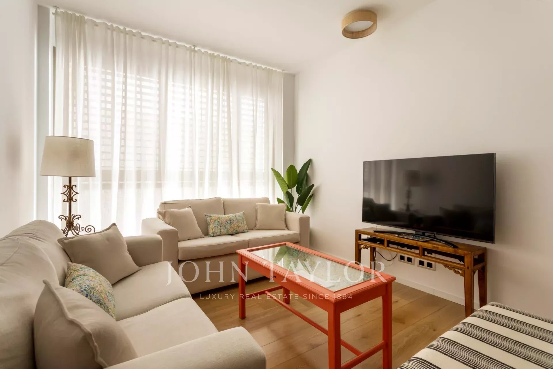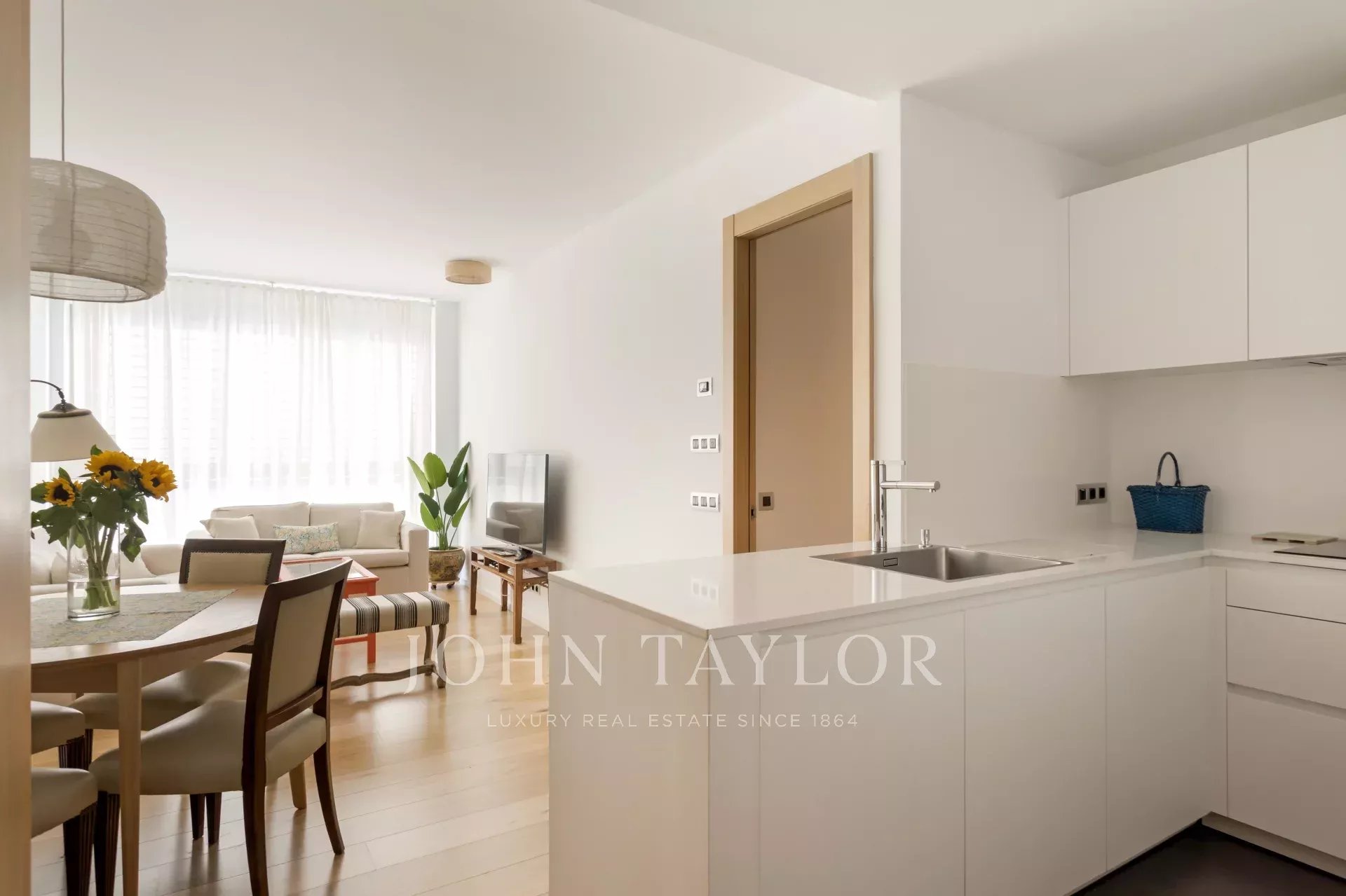 Эта квартира на 4-м этаже в здании 2018 года постройки имеет площадь 110 м² и состоит из светлой гостиной-столовой с кухней открытого плана, главной спальни со встроенными шкафами и ванной комнатой, еще одной спальни со встроенным шкафом и ванной комнаты напротив, которая также служит в качестве гостевого туалета.