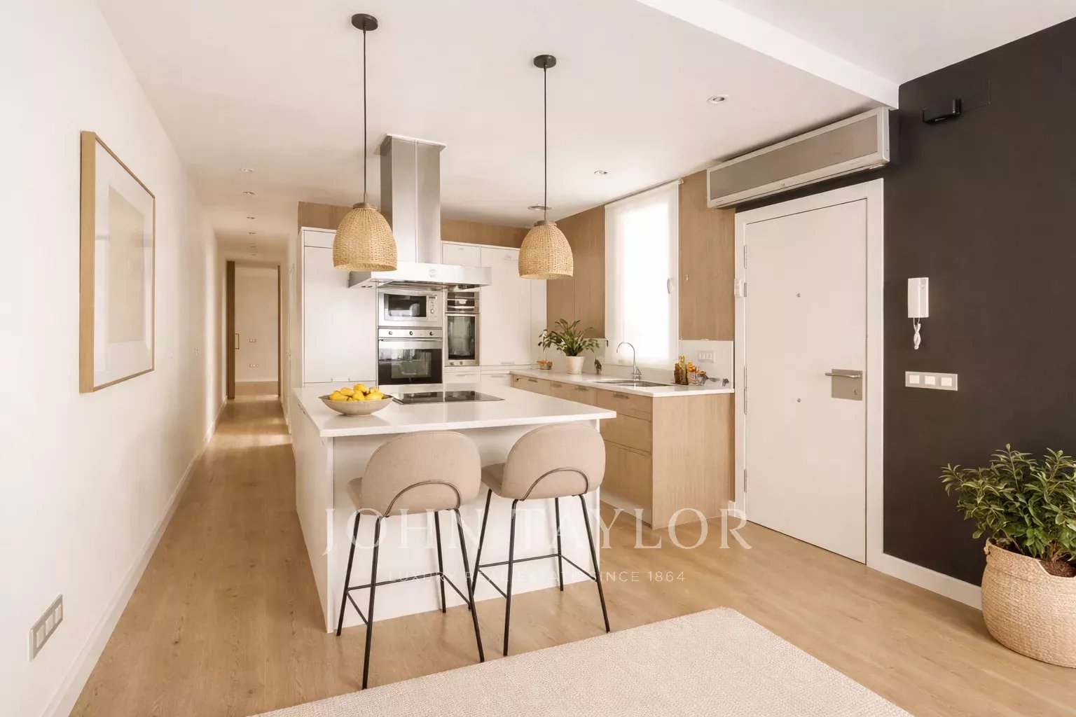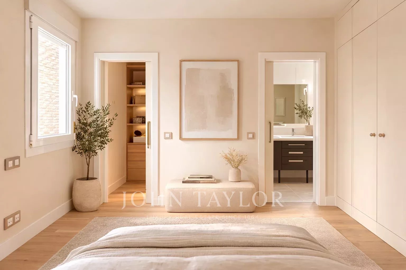Зона отдыха включает главную спальню в люксе, с двумя встроенными шкафами и дополнительной гардеробной. Главная ванная комната, освещенная естественным светом, оборудована мраморным душем и двойной раковиной. Вторая спальня универсальна и уютна, идеально подходит как комната для гостей или кабинет.