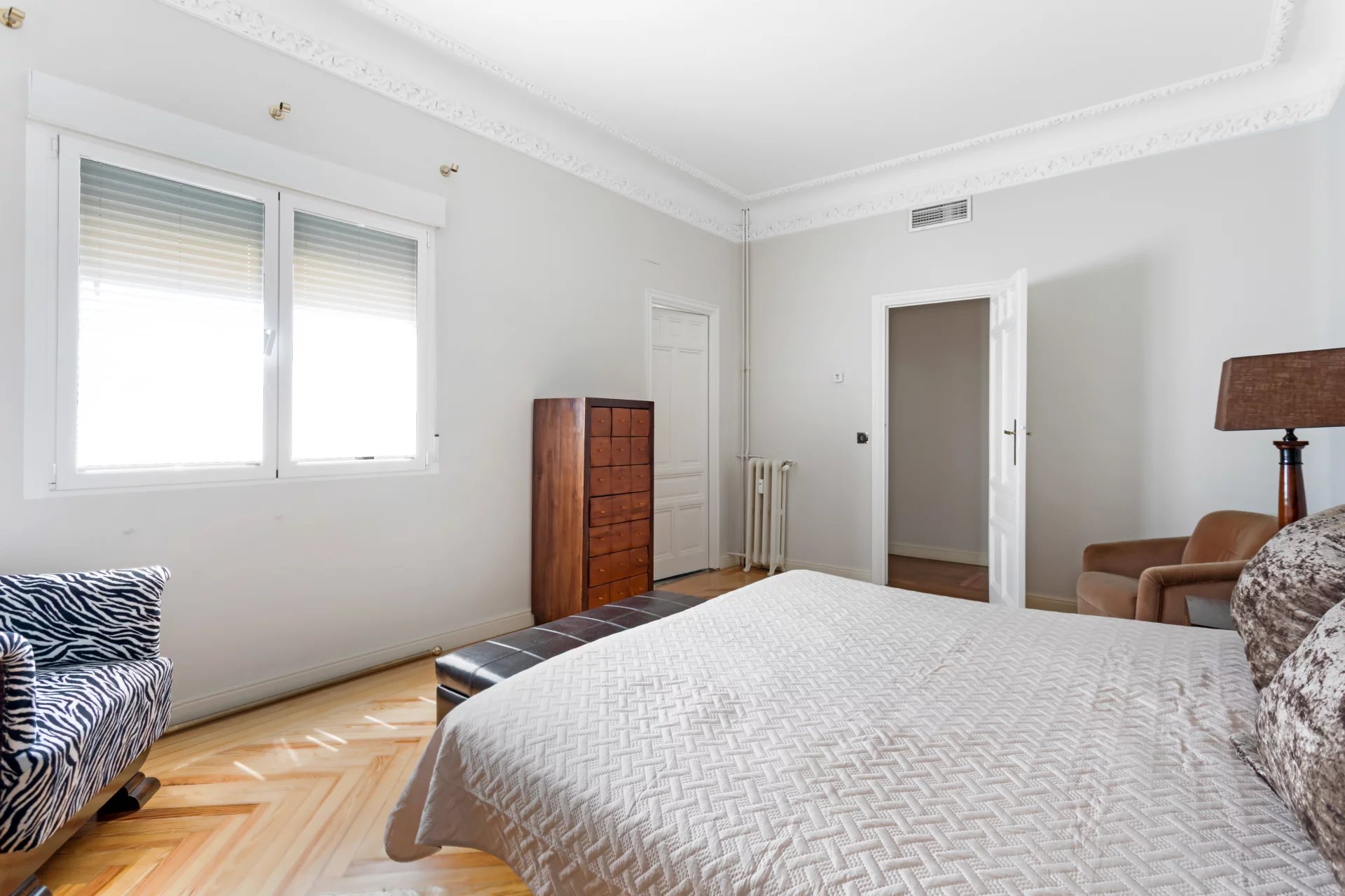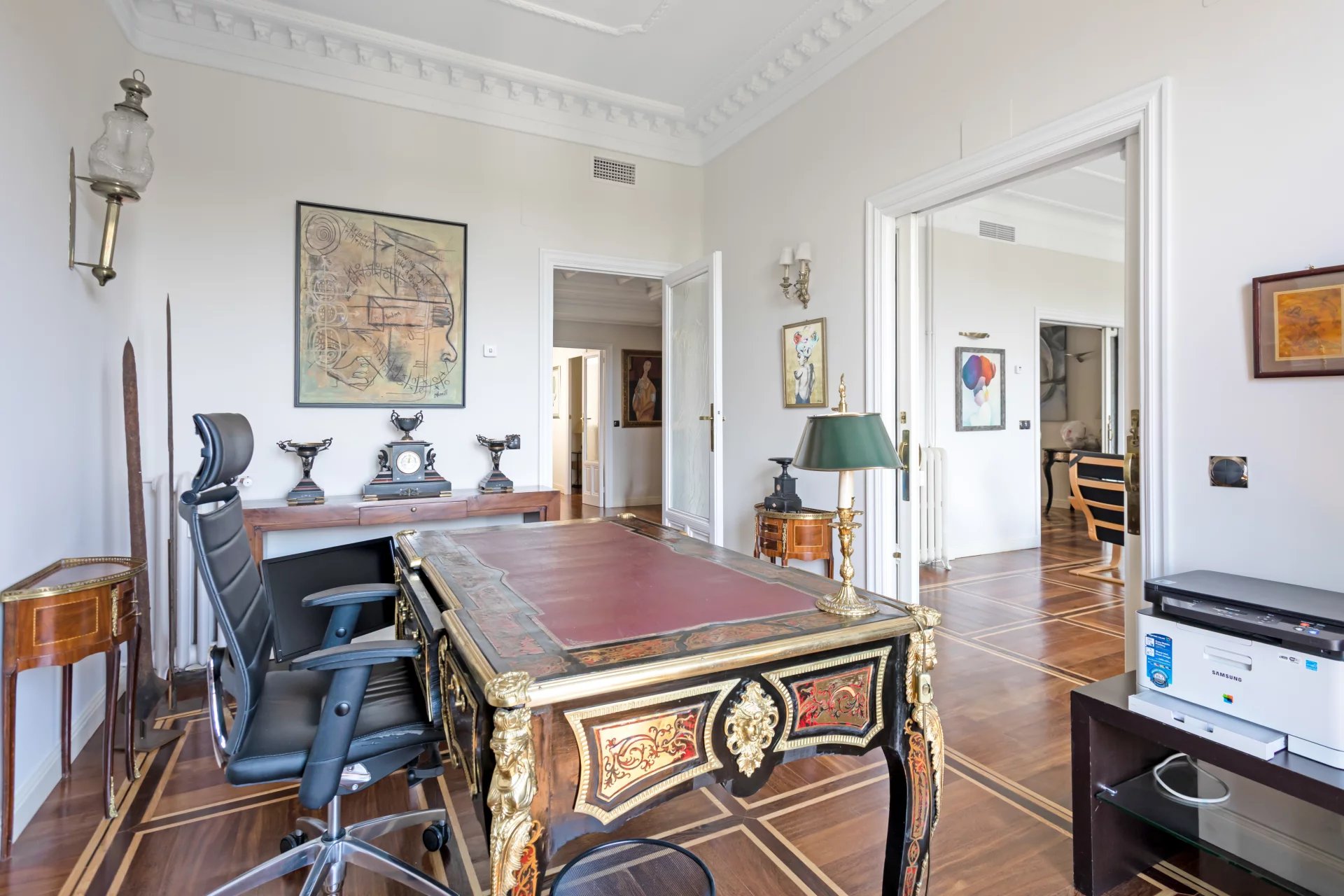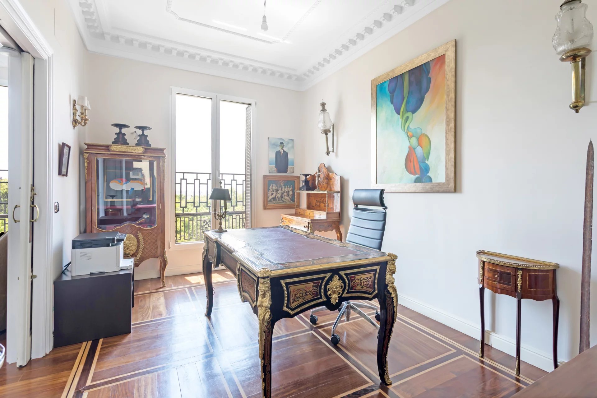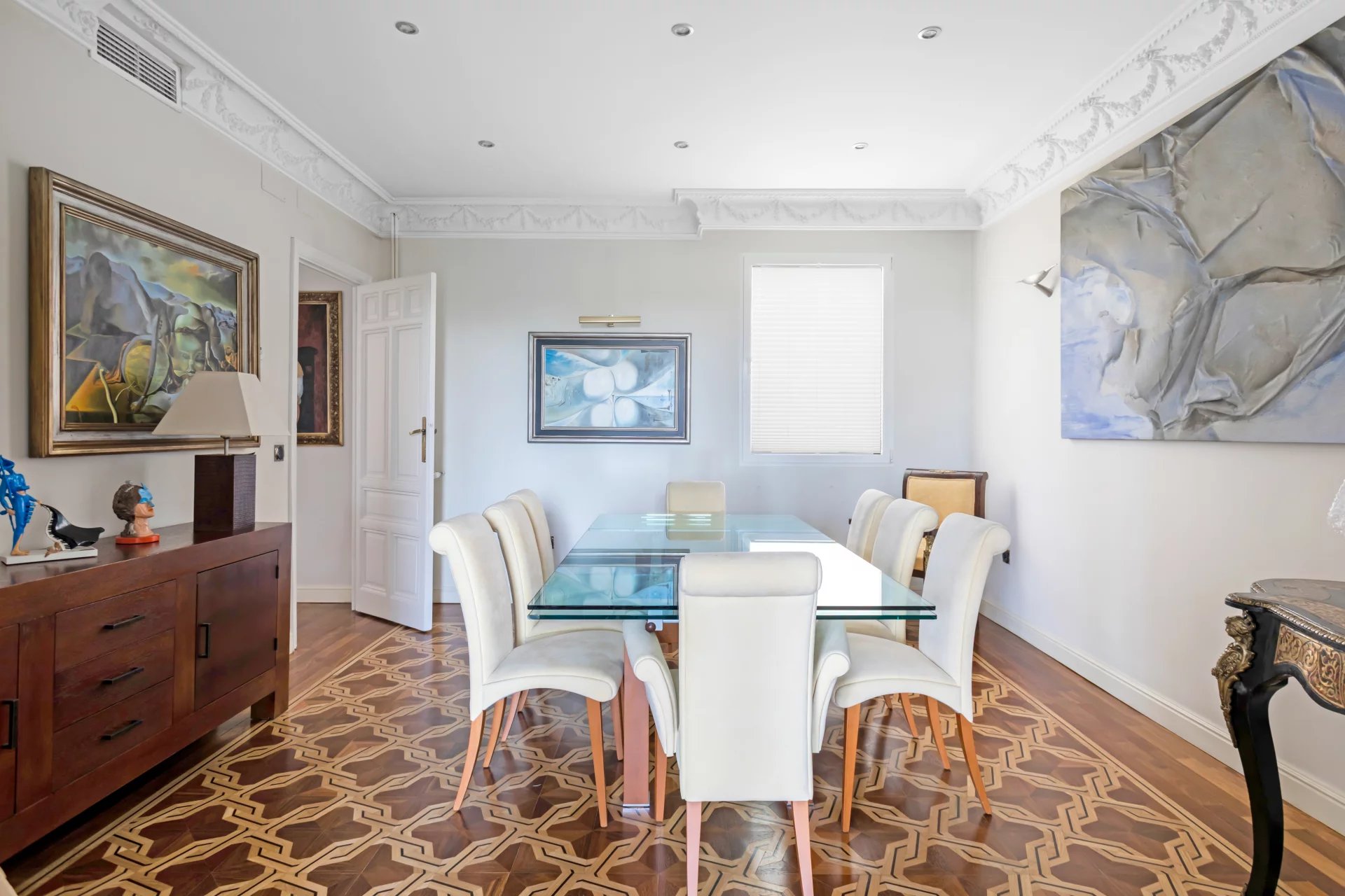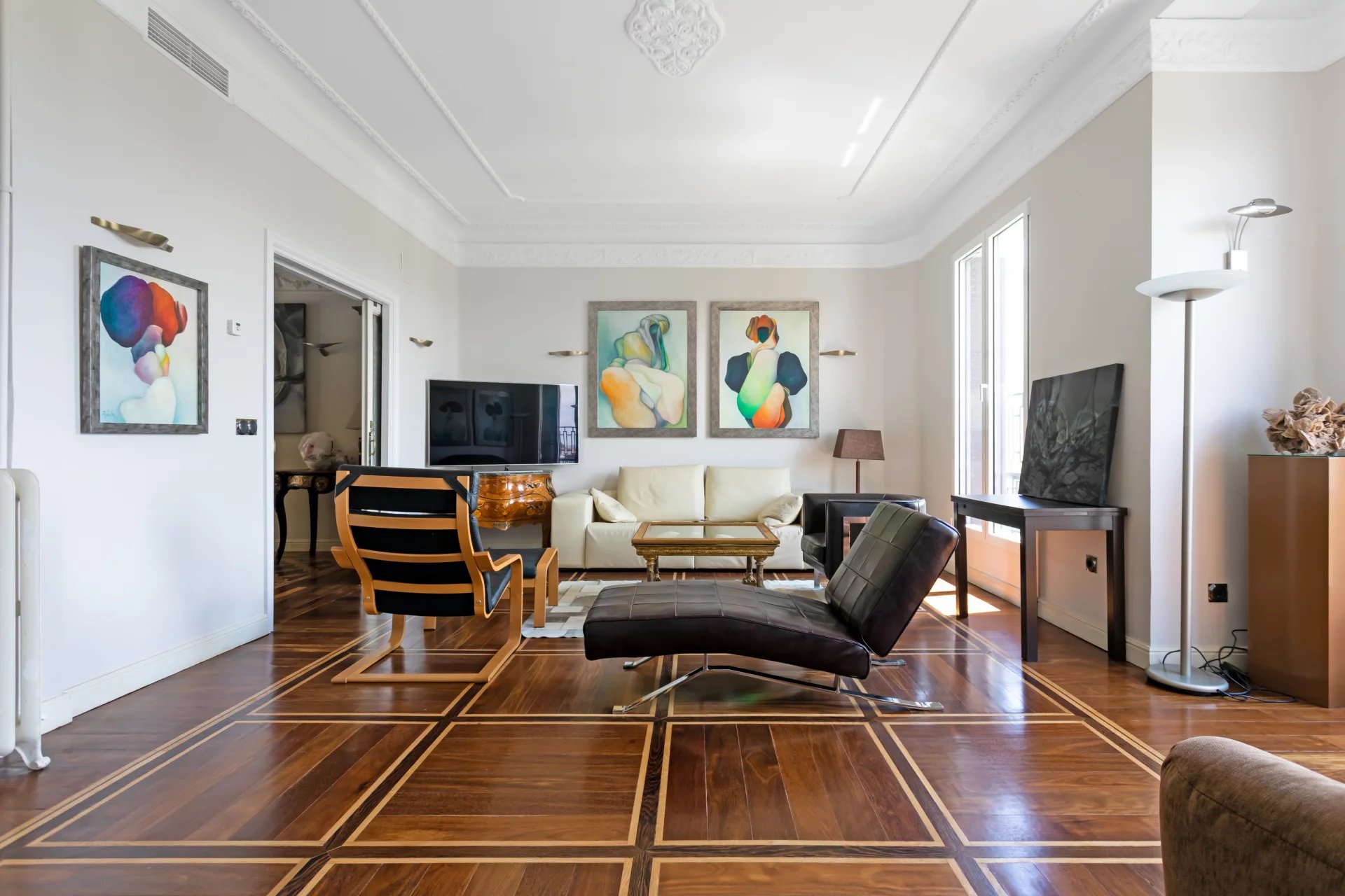 Эта квартира идеально расположена на пятом этаже одного из самых представительных классических зданий в районе Иеронимос, в двух шагах от музея Прадо.