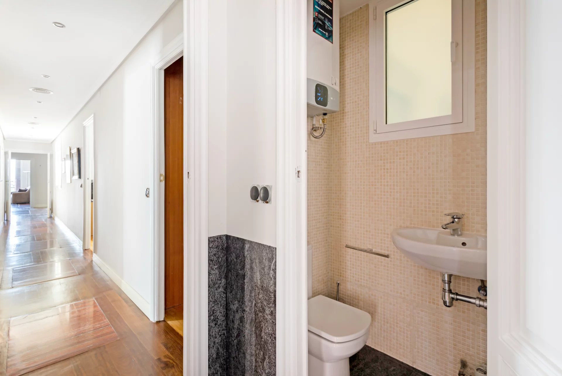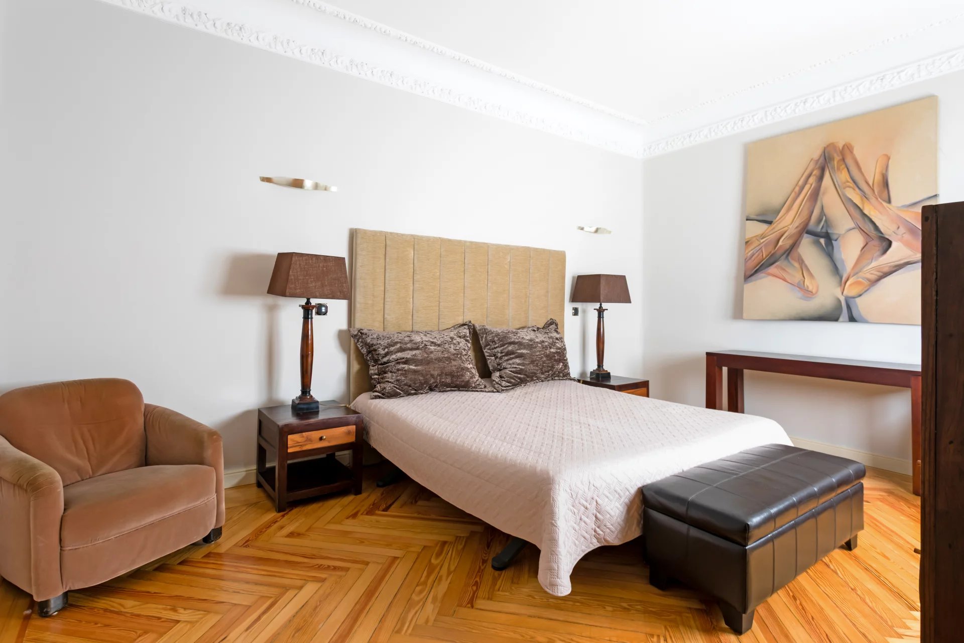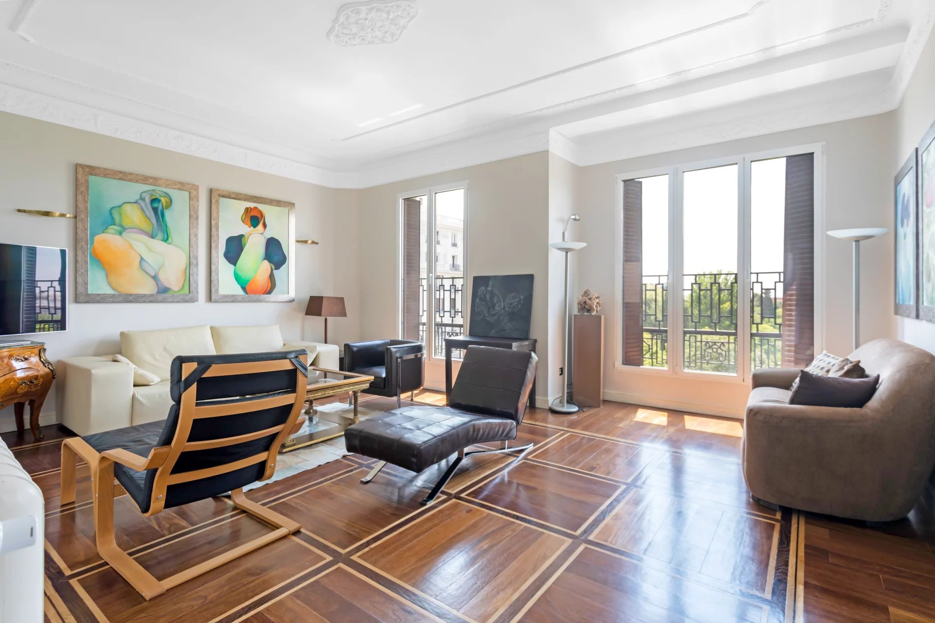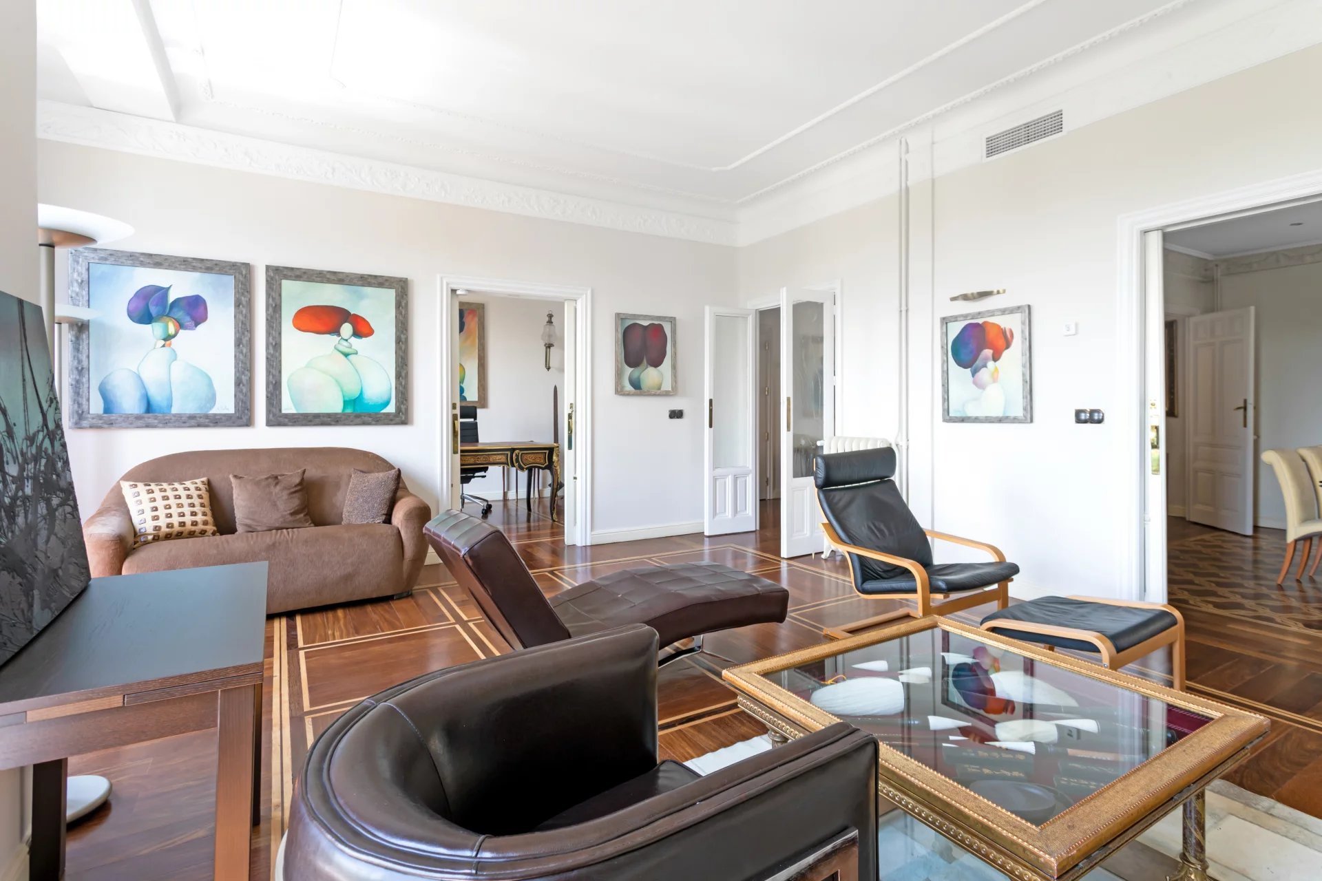 Эта квартира идеально расположена на пятом этаже одного из самых представительных классических зданий в районе Иеронимос, в двух шагах от музея Прадо.
