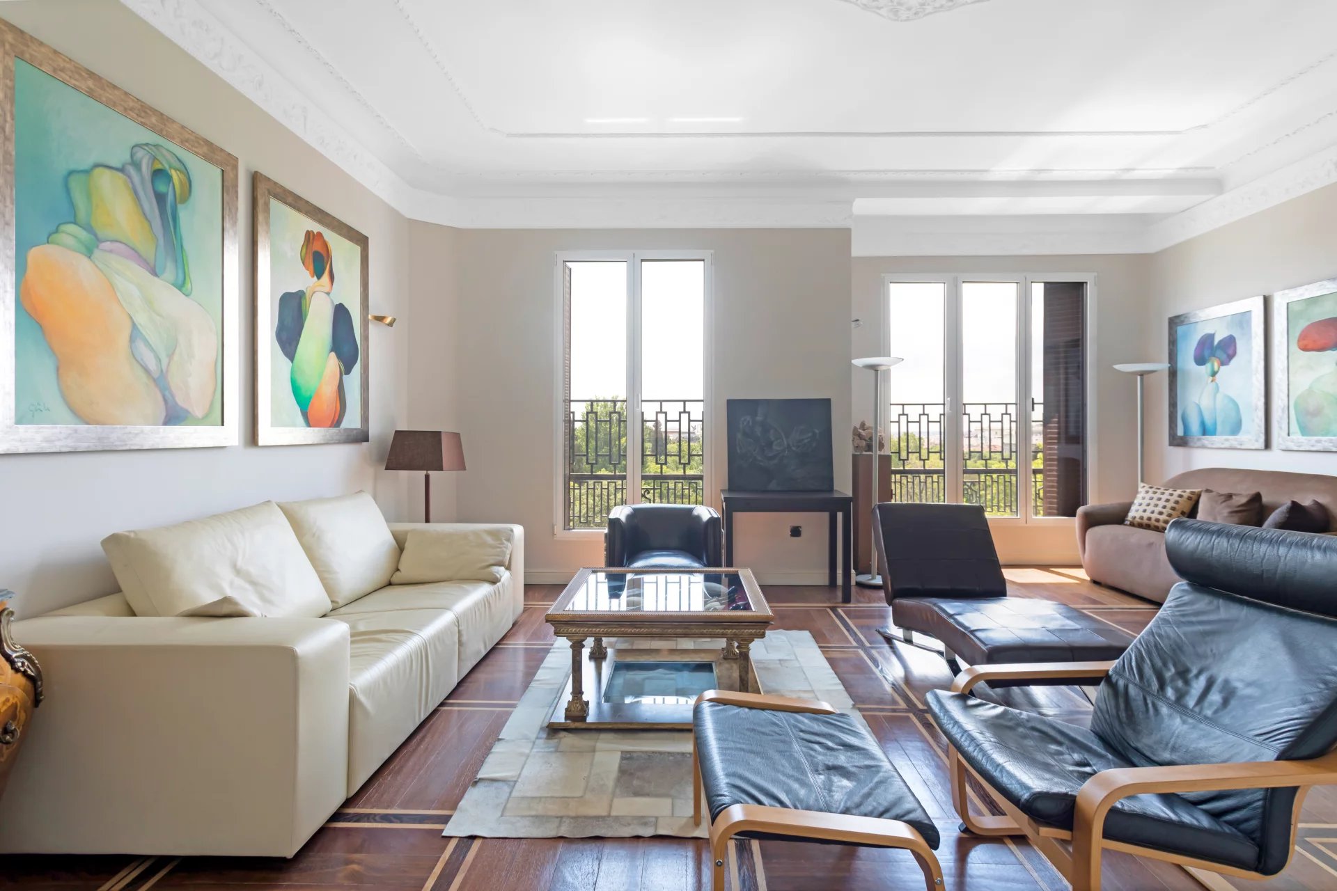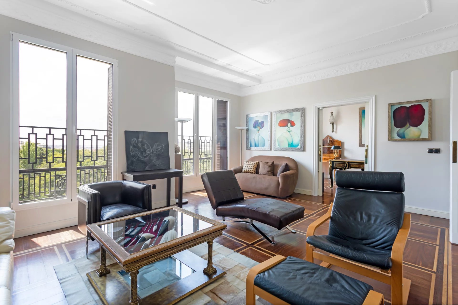 Двойная гостиная и кабинет купаются в естественном свете, а с трех балконов открывается уникальный вид на Ботанический сад и южную ориентацию.