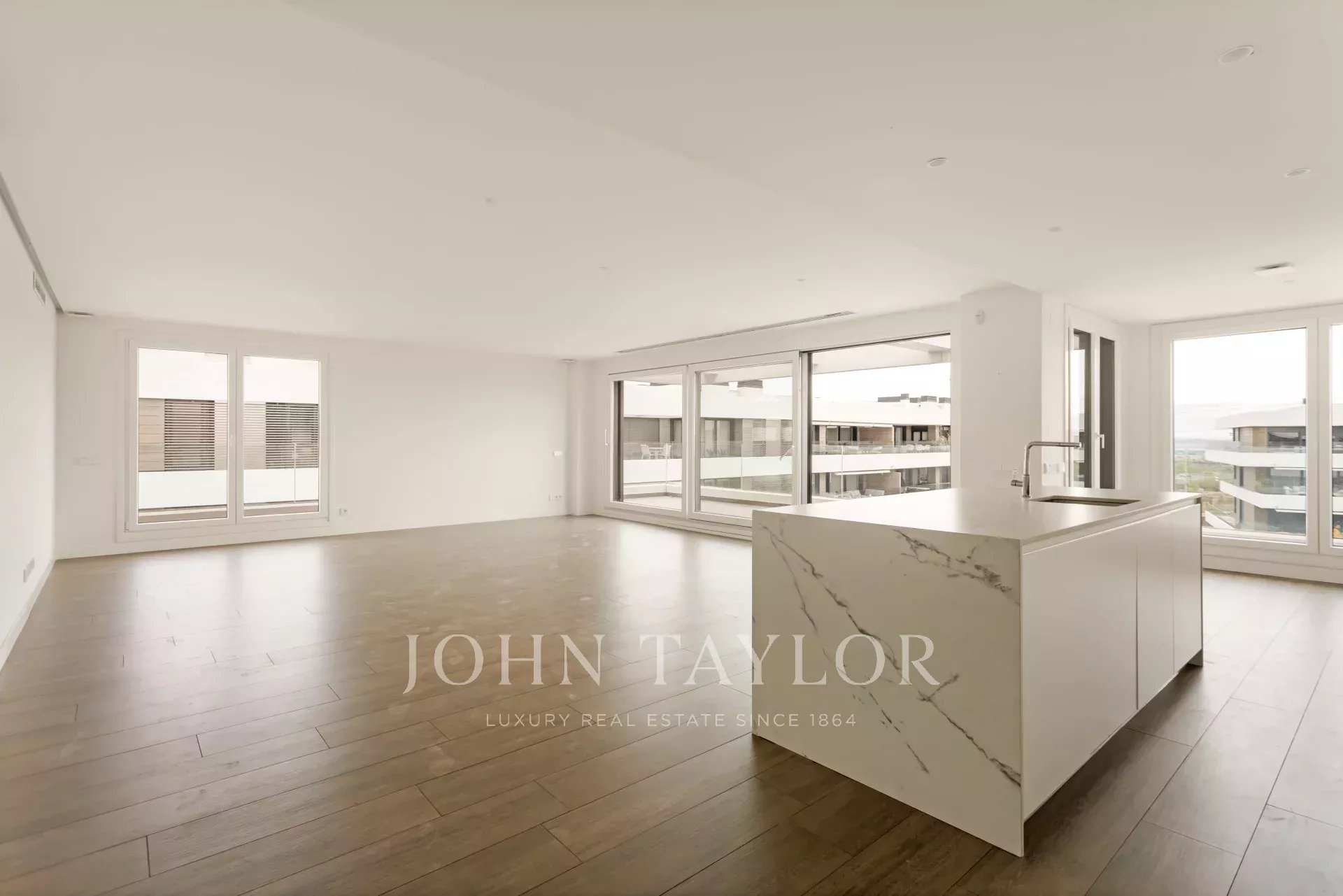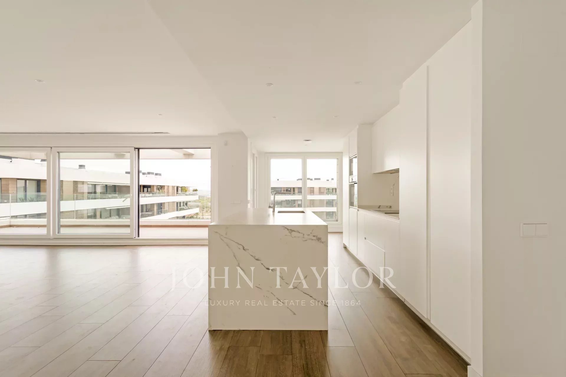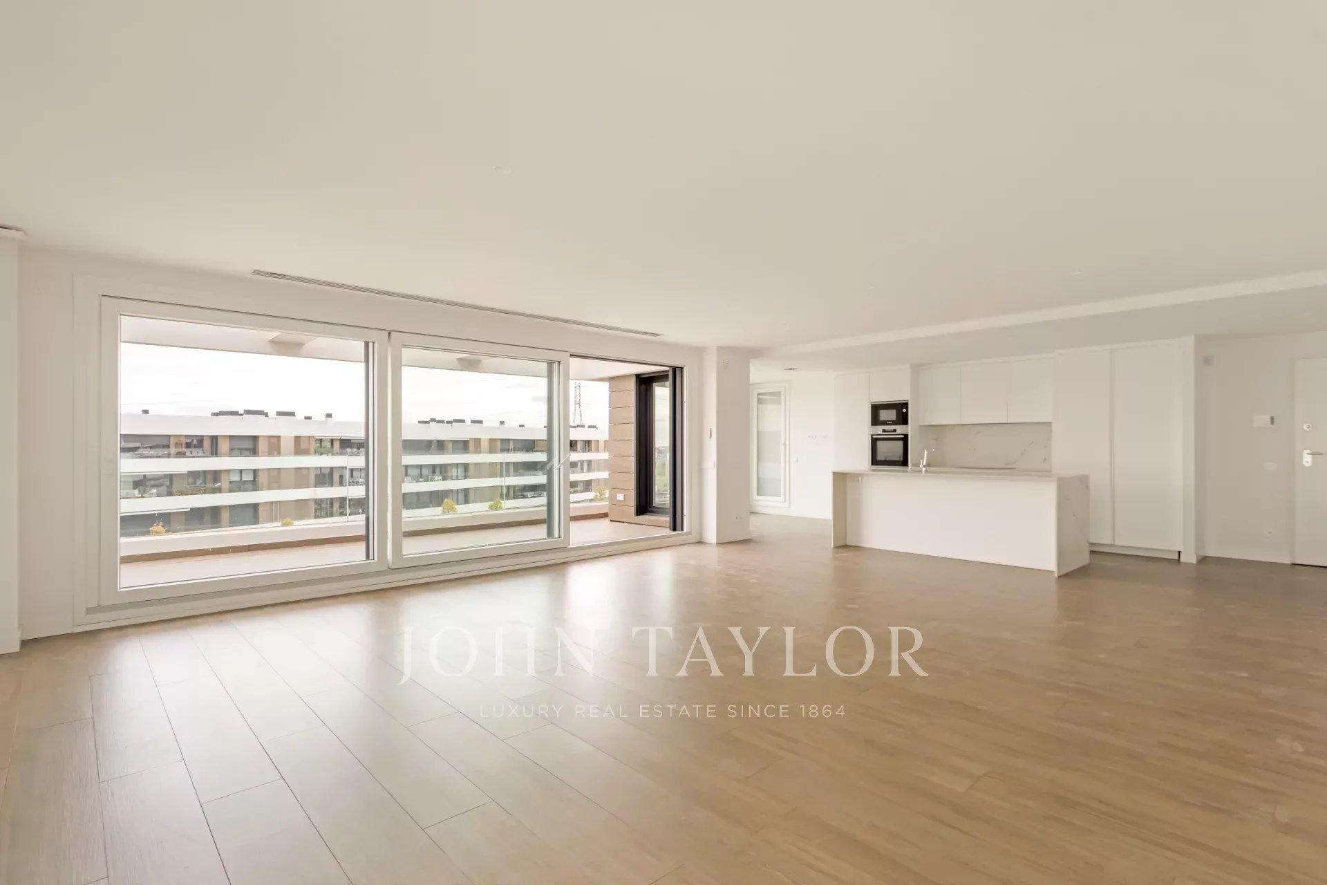 Сердцем пентхауса является впечатляющая гостиная площадью 45 м², залитая естественным светом и имеющая прямой выход на террасу. Современная, полностью интегрированная кухня расположена в социальной зоне и оснащена высококлассной техникой, а также имеет застекленный кабинет и полностью оборудованную отдельную прачечную.