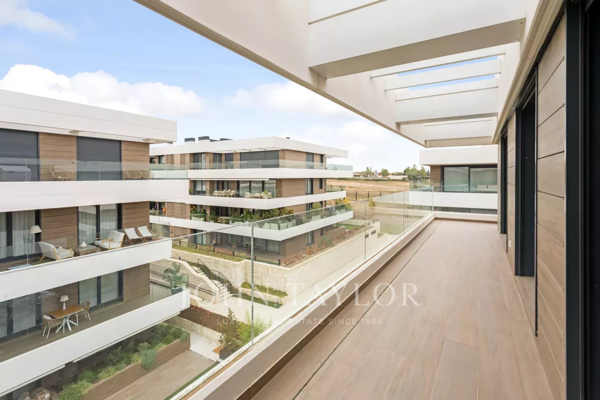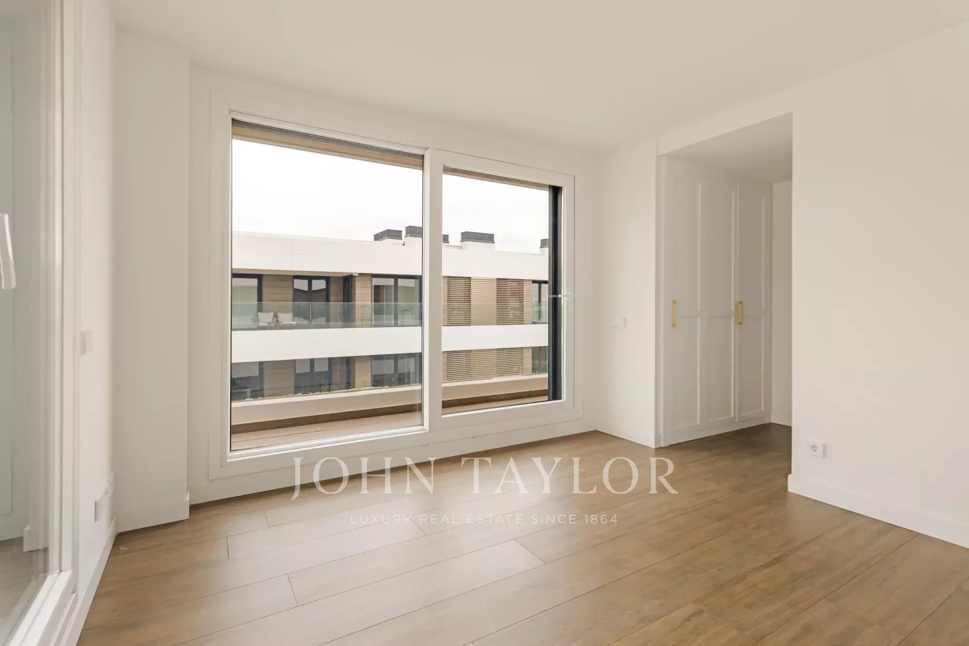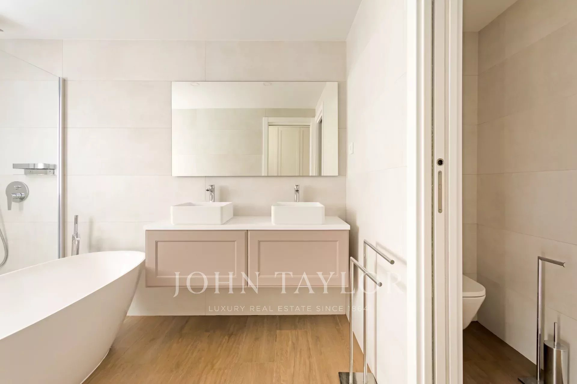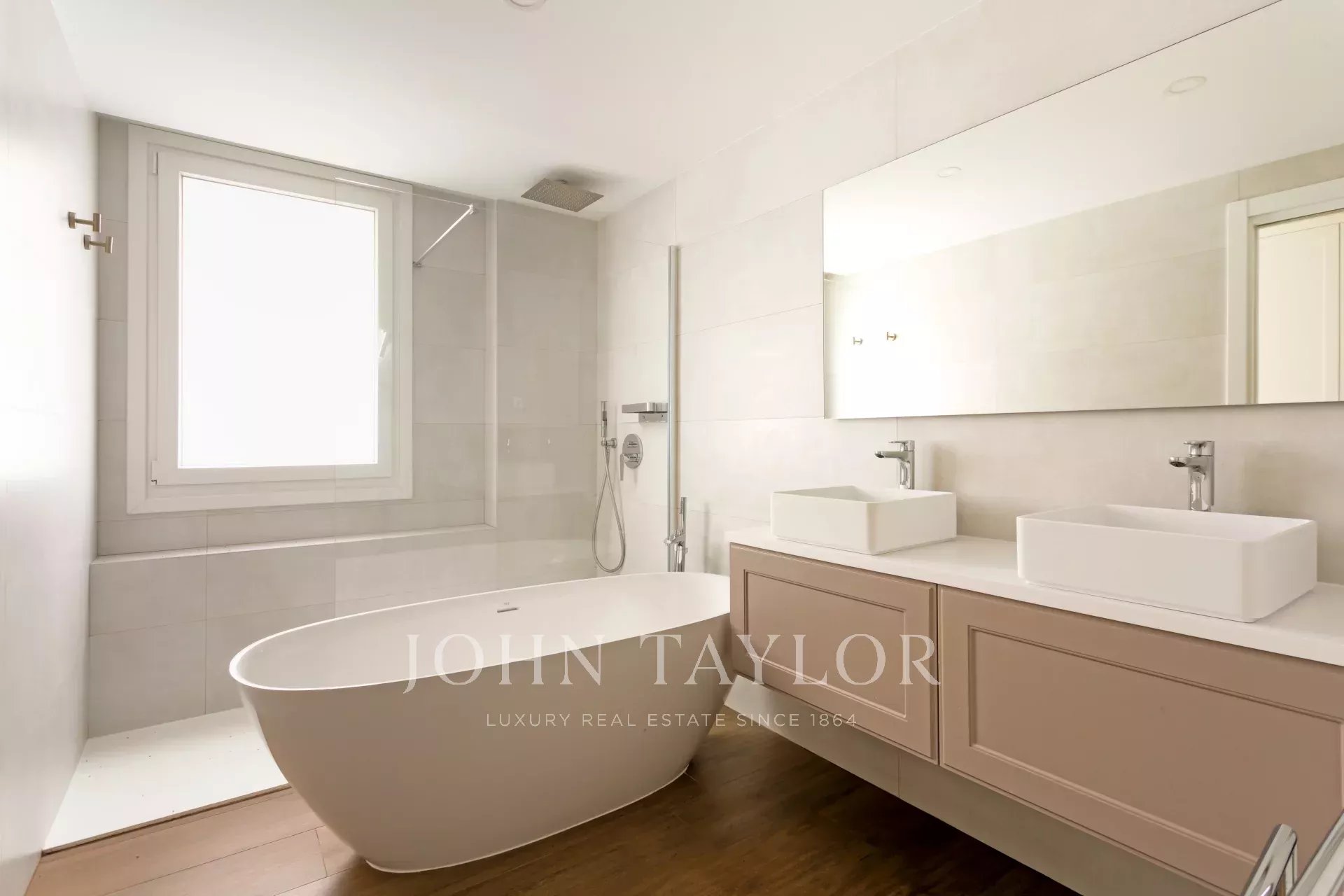 Сердцем пентхауса является впечатляющая гостиная площадью 45 м², залитая естественным светом и имеющая прямой выход на террасу. Современная, полностью интегрированная кухня расположена в социальной зоне и оснащена высококлассной техникой, а также имеет застекленный кабинет и полностью оборудованную отдельную прачечную.