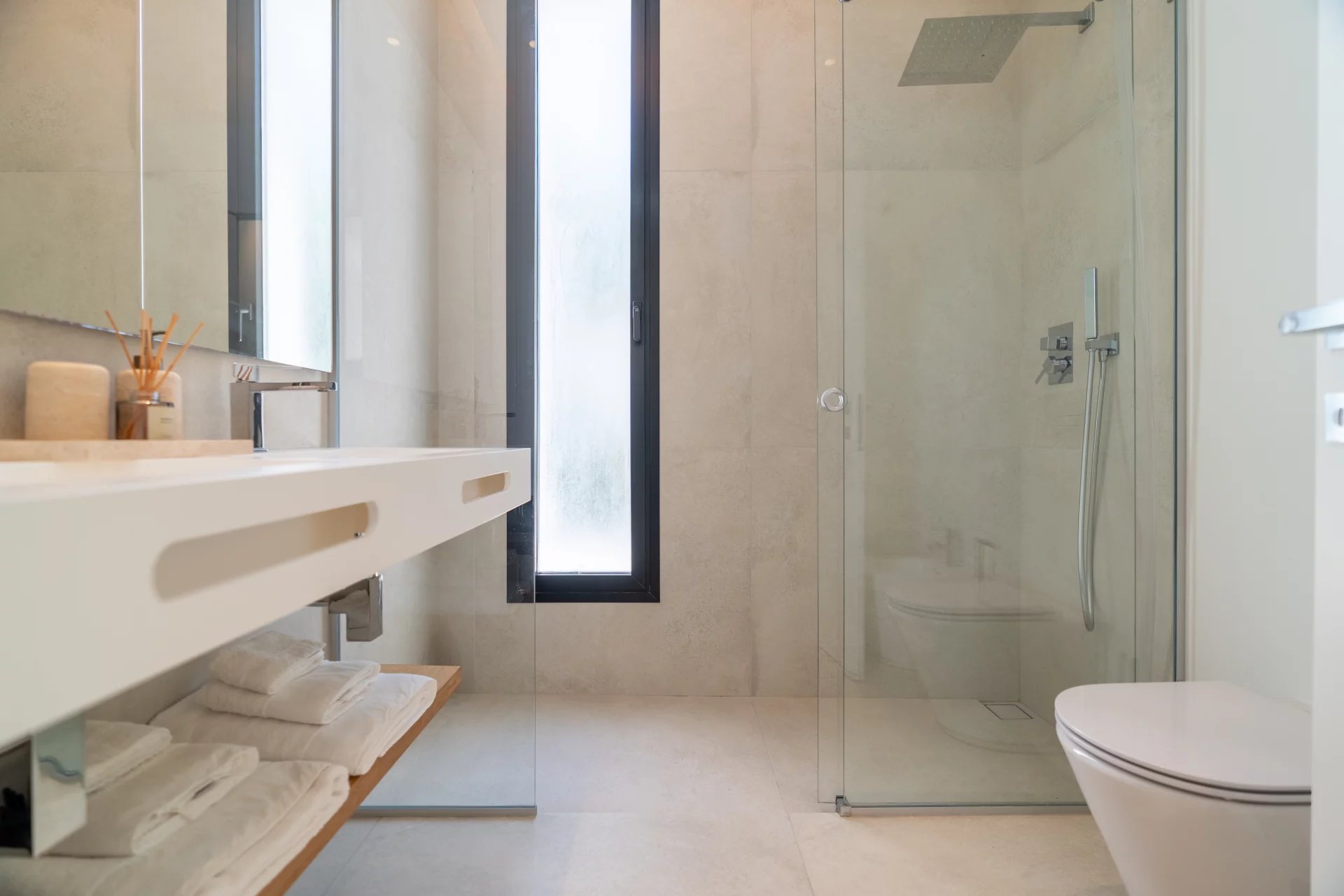 Вилла совершенно новая, только что построена, и отличается современным дизайном и отделкой высокого класса. В доме пять спален с ванными комнатами, каждая с большими окнами, наполняющими пространство естественным светом и создающими уютную атмосферу. Также предусмотрен гостевой туалет.