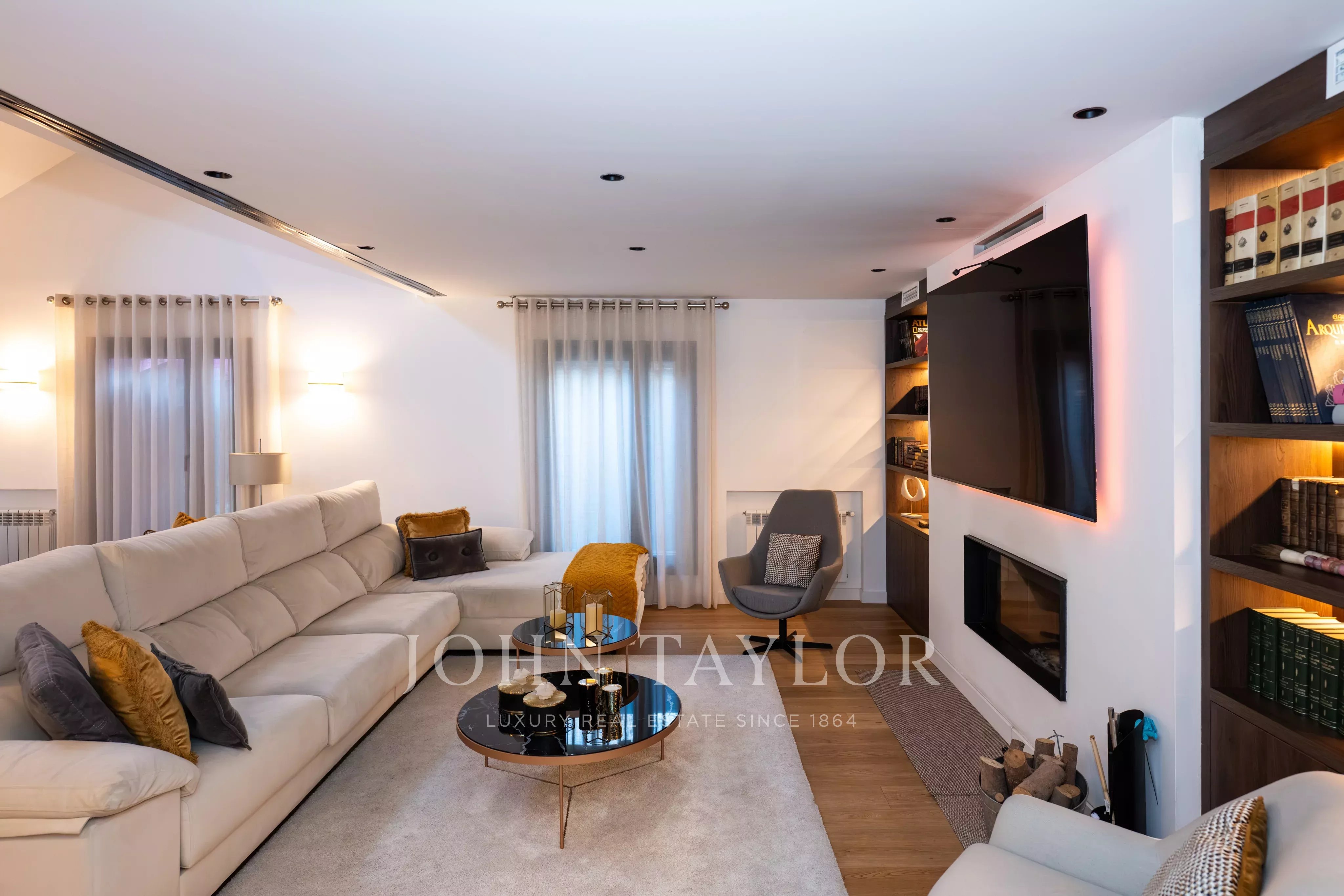 Прилегающая территория представляет собой настоящий частный оазис: ухоженный сад, бассейн с джакузи, зона барбекю и пространства для отдыха и оздоровления. Вилла расположена в закрытом жилом комплексе с круглосуточной охраной, обширными зелёными зонами и отличной транспортной доступностью до центра Мадрида.
