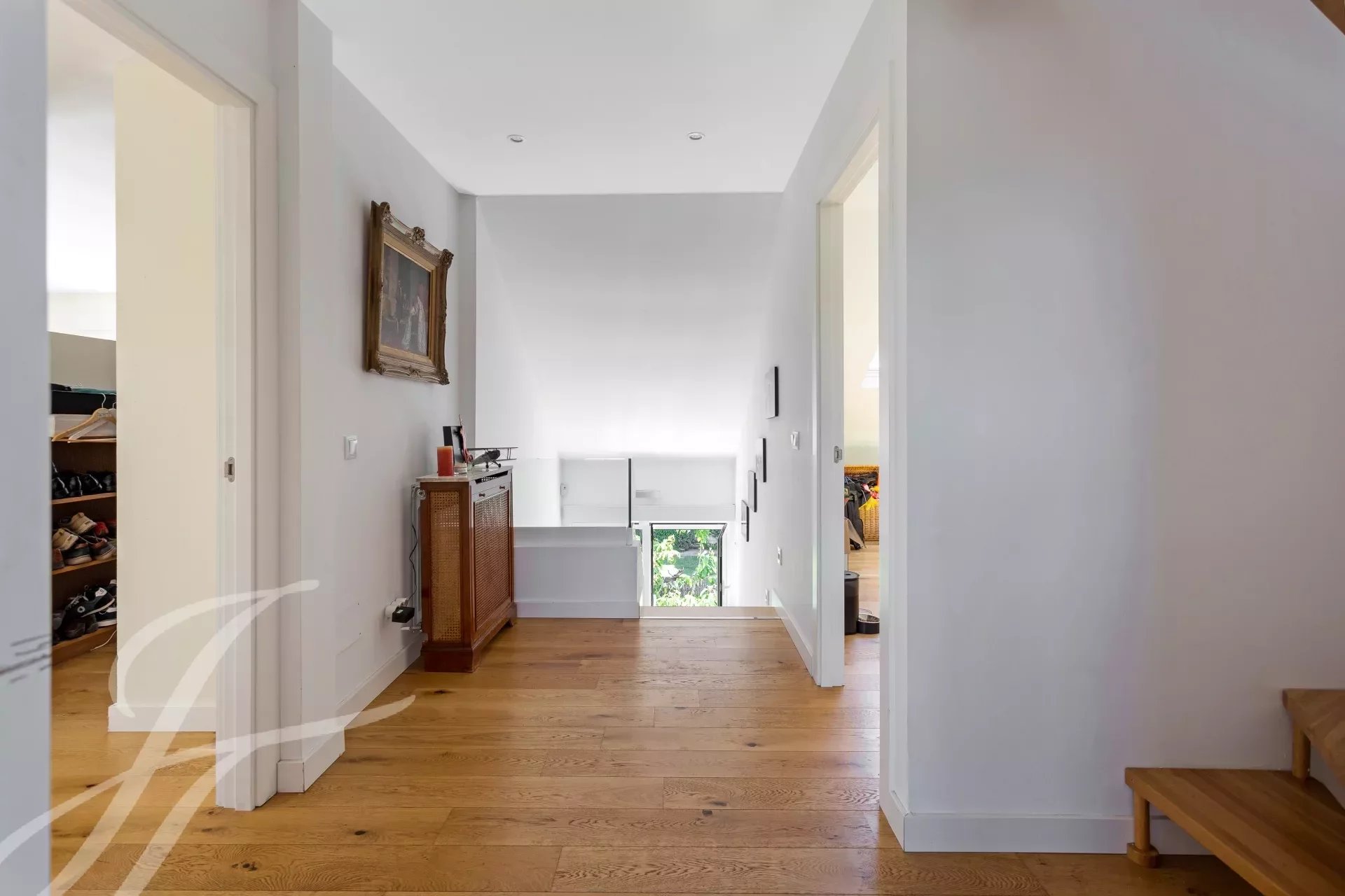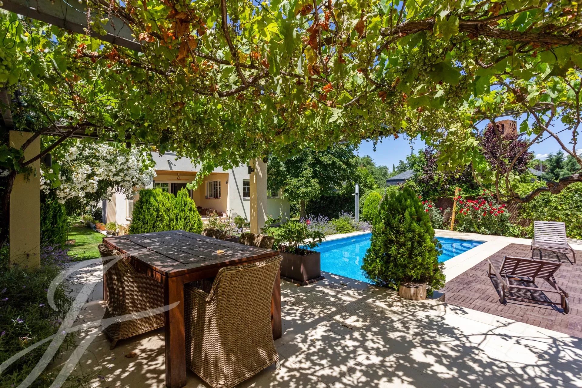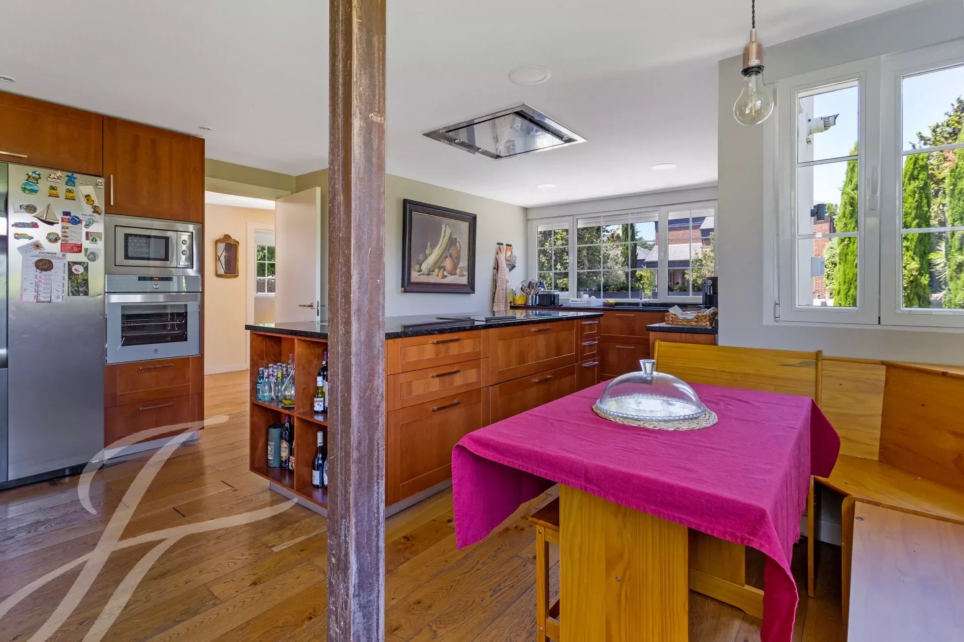 Полностью отремонтированная вилла площадью 456 м² с семью комнатами и спальнями. Участок площадью 634 м² с ухоженным садом с деревьями, бассейном, беседкой, барбекю, открытой печью, садовым навесом, подсобным помещением и сараем.