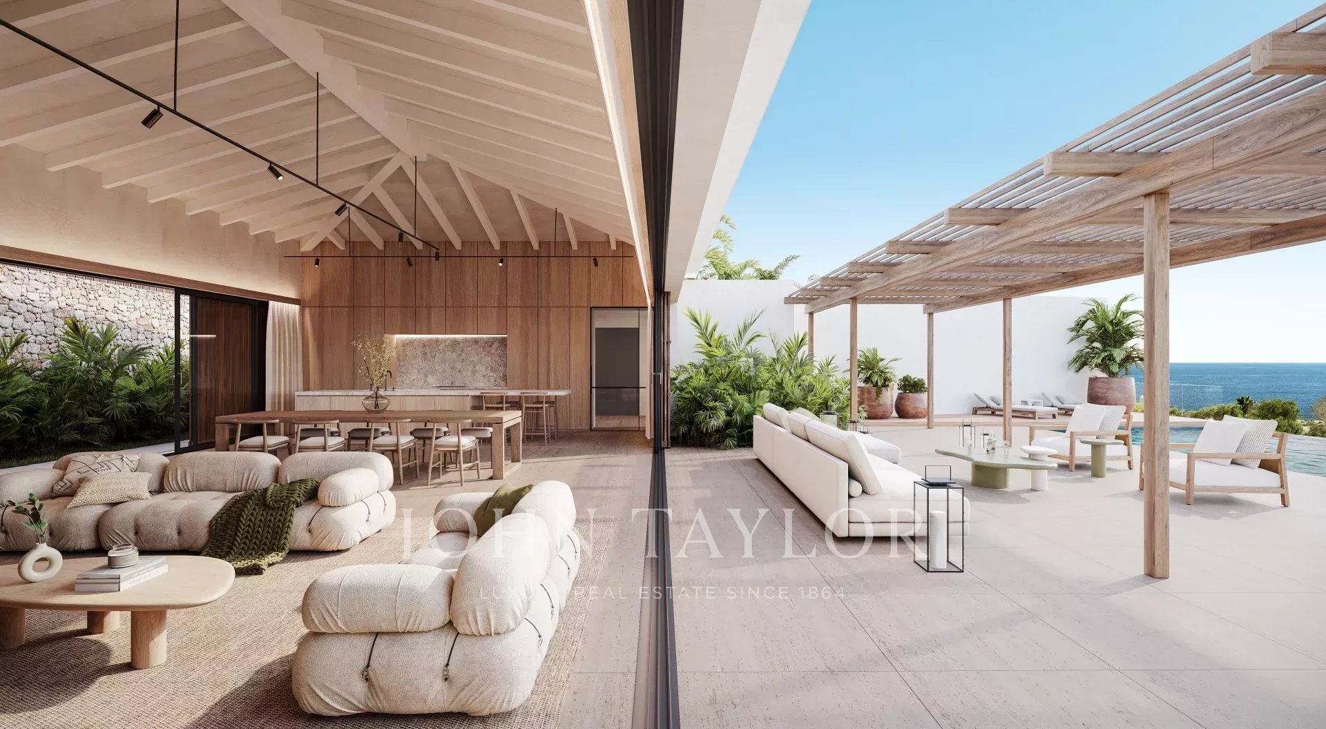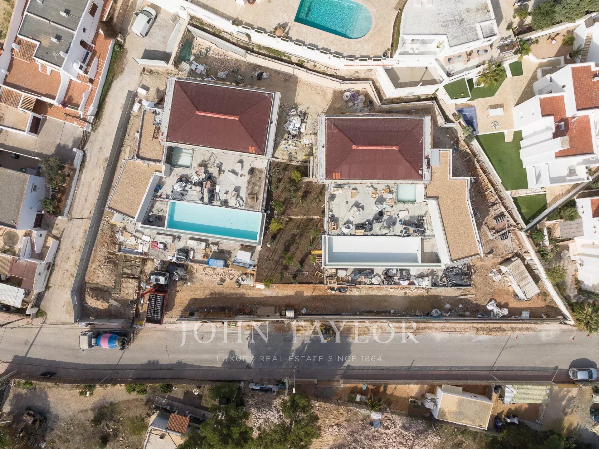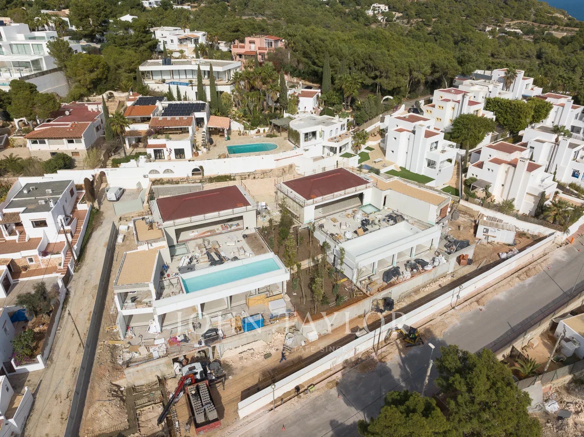 Две недавно построенные виллы с широким открытым видом на море и Форментеру расположены в Кап Мартине. Эти уникальные дома имеют исключительную высоту потолков 4,5 метра в жилых помещениях, что создает ощущение простора в сочетании с отделкой из дерева.