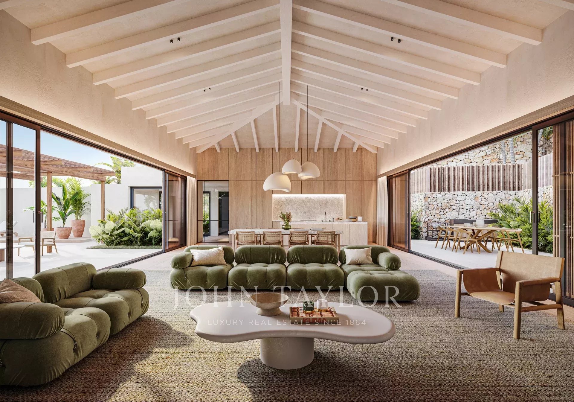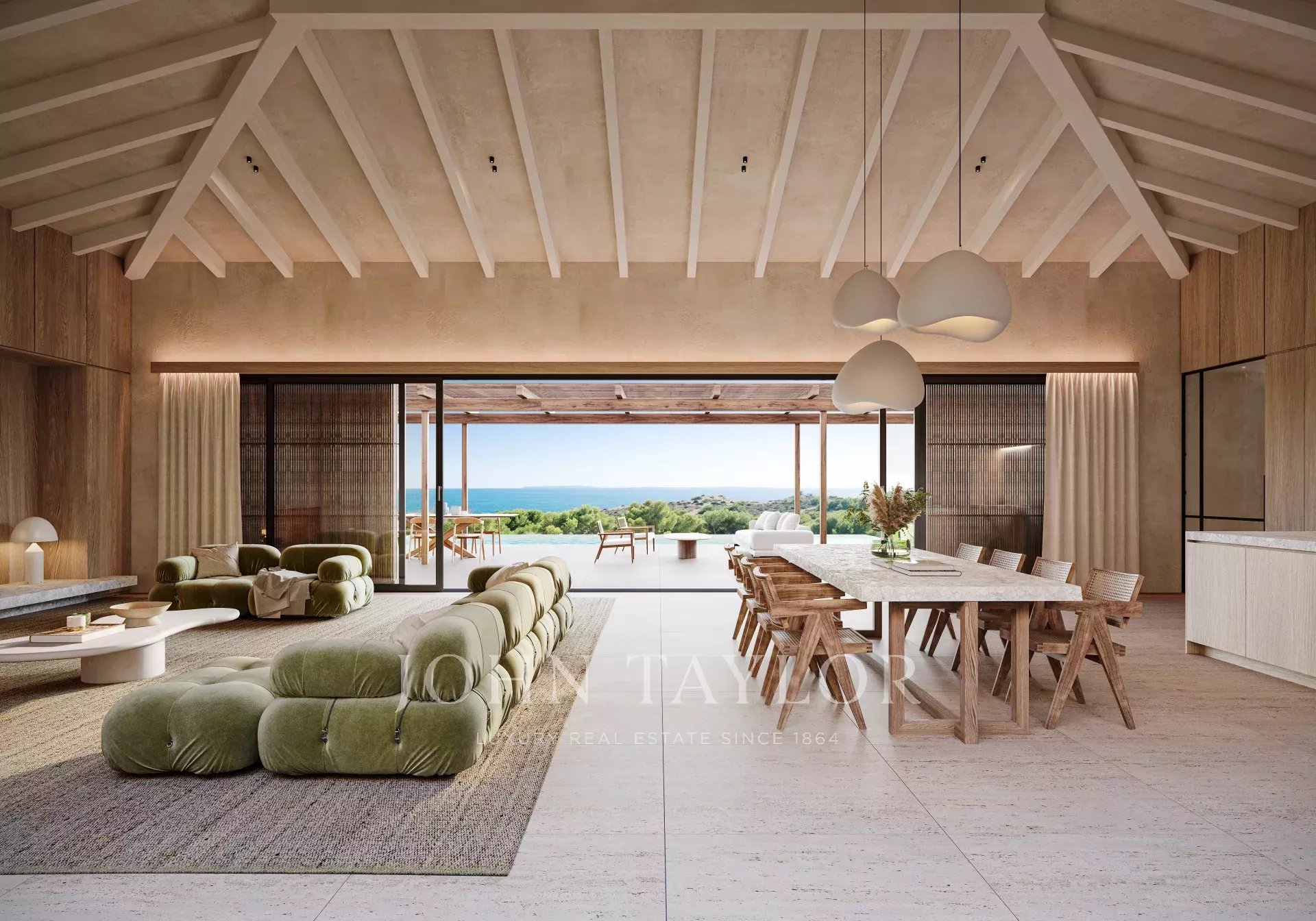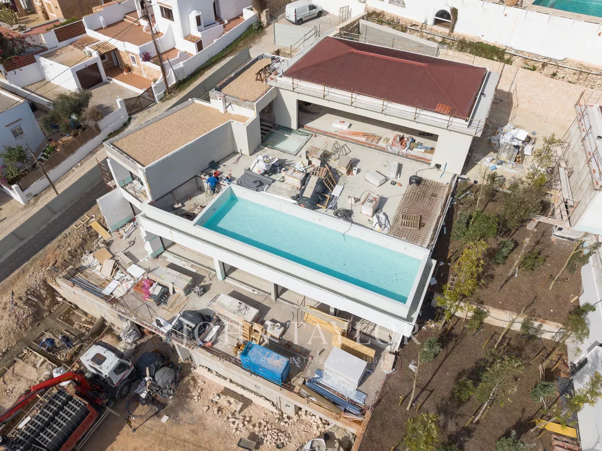 Две недавно построенные виллы с широким открытым видом на море и Форментеру расположены в Кап Мартине. Эти уникальные дома имеют исключительную высоту потолков 4,5 метра в жилых помещениях, что создает ощущение простора в сочетании с отделкой из дерева.