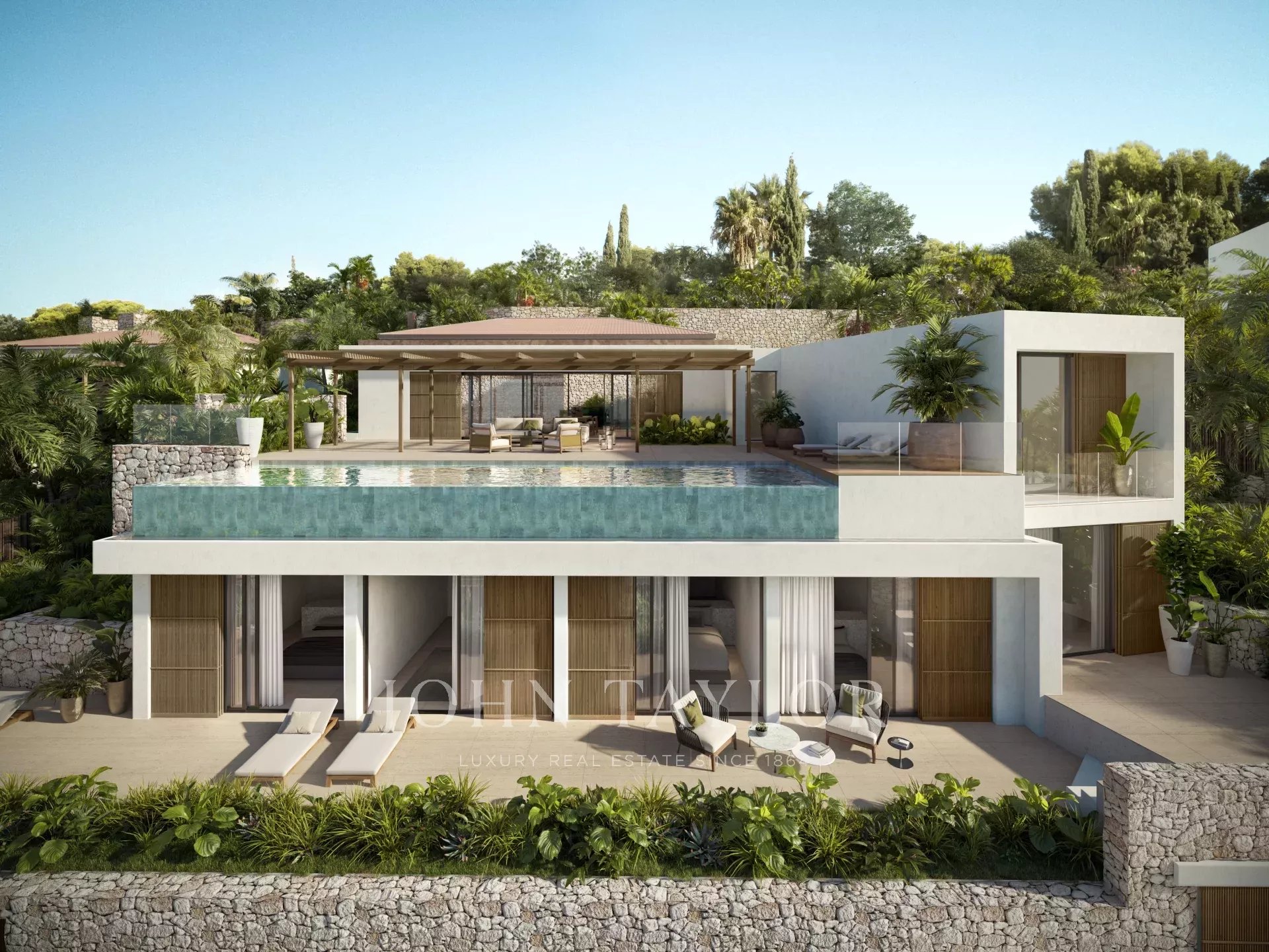 Две фантастические трехэтажные виллы с видами на Средиземное море и Форментеру, расположенные на участке площадью 1 104 м2 с видом на юг в районе Кап Мартине.