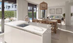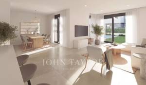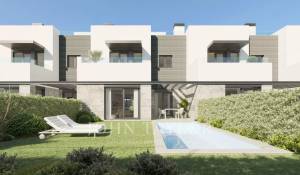 Каждый дом имеет частный сад и бассейн, солярий на крыше и два открытых парковочных места. Внутренняя планировка включает просторную гостиную и столовую площадью до 40 кв. м, полностью оборудованную кухню, четыре спальни (включая главную спальню с гардеробной) и три полные ванные комнаты, одна из которых с ванной. Эти энергоэффективные дома помогут вам сэкономить на ежемесячных счетах благодаря окнам с двойным остеклением, которые поддерживают стабильную температуру и снижают уровень шума, обеспечивая комфорт круглый год.