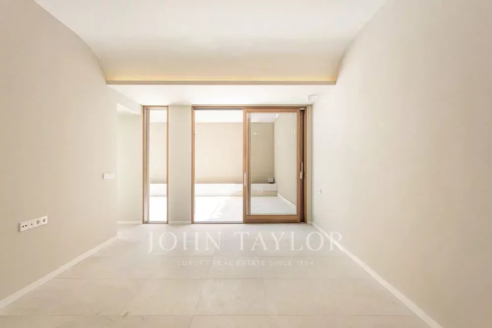 Апартаменты на первом этаже: 100 кв. м, 2 спальни, 2 ванные комнаты (1 ванная), кухня, столовая, гостиная с выходом на частное патио площадью 30 кв. м.