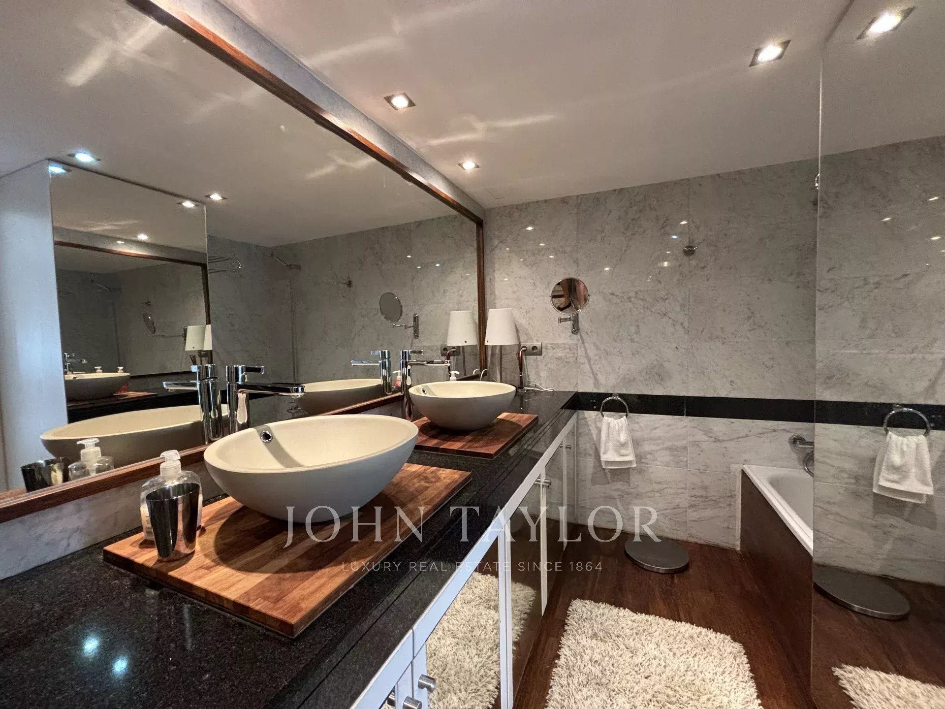 Кроме того, в квартире имеется круглосуточная охрана, специальный консьерж и общий бассейн, что обеспечивает безопасность и расслабление. Дополнительные преимущества включают два частных парковочных места в крытом гараже.