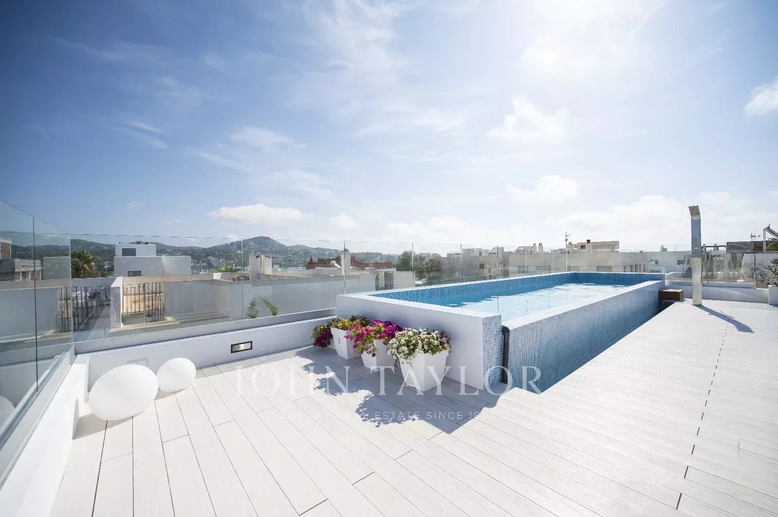Терраса с панорамным видом на море Фоорментеры и часть Таламанкы подготовлена для установки кухни или рабочей поверхности, с подведёнными водо- и электрокоммуникациями для посудомоечной машины, холодильника и другого оборудования — в соответствии с предпочтениями нового владельца.