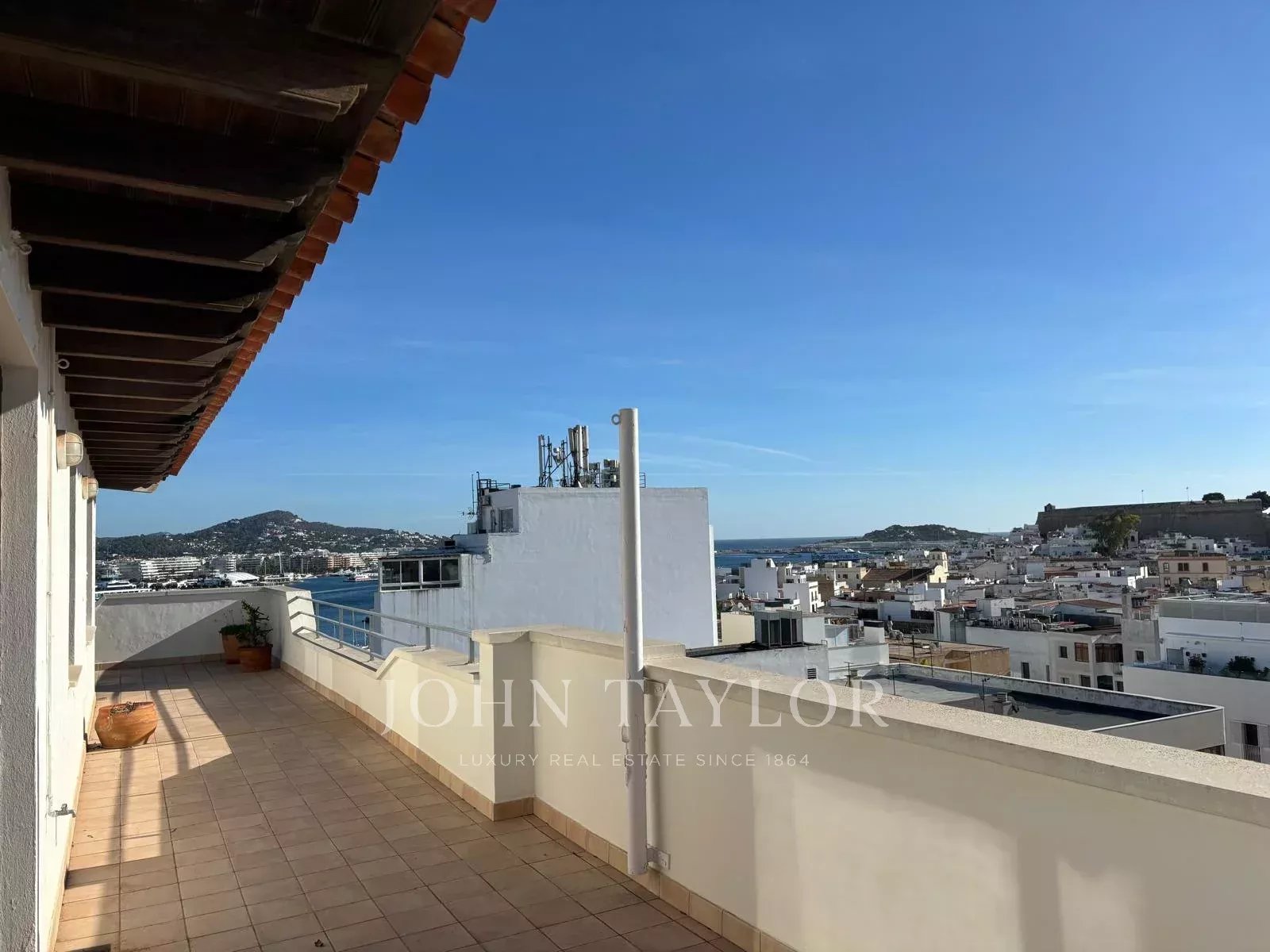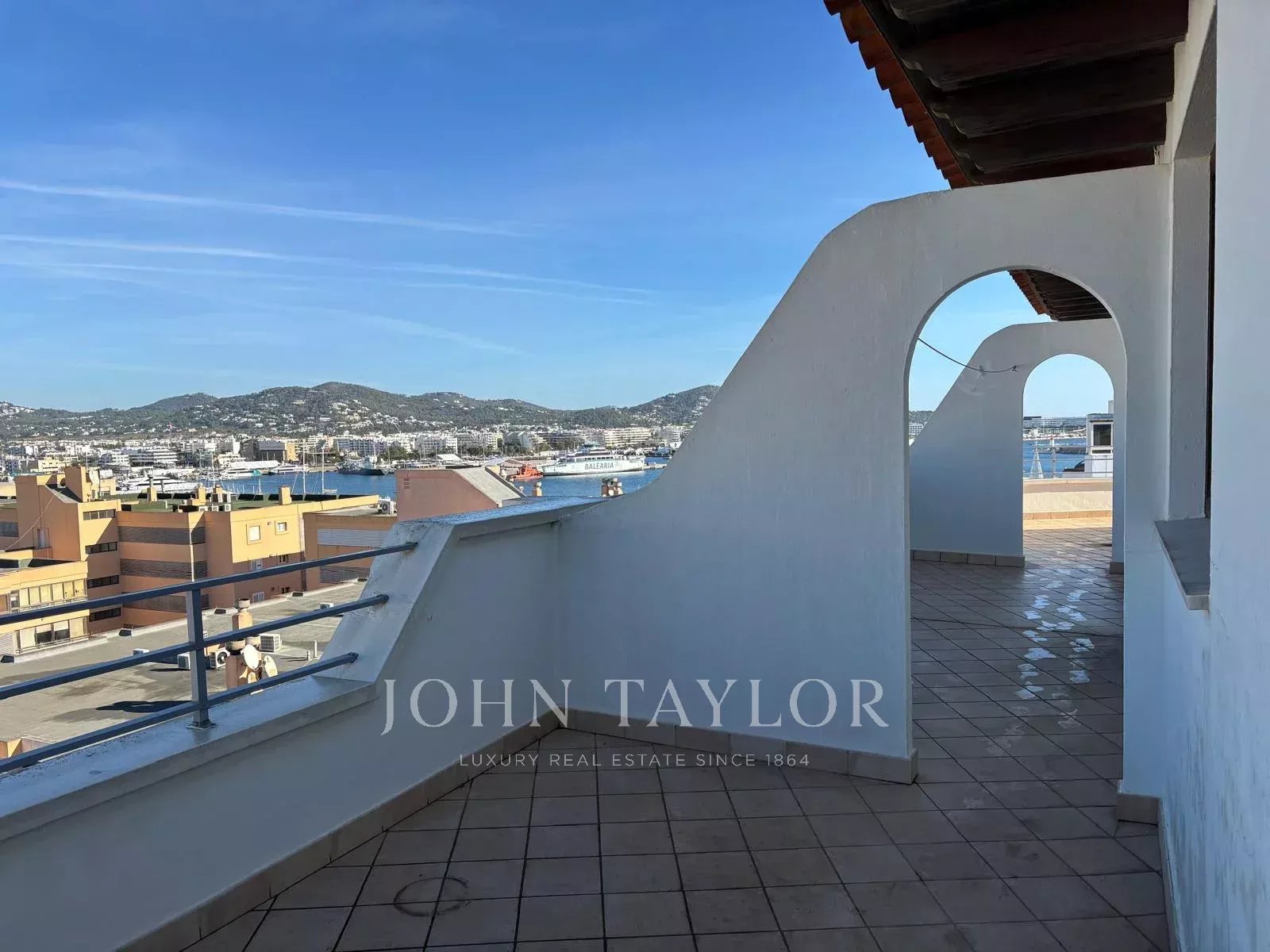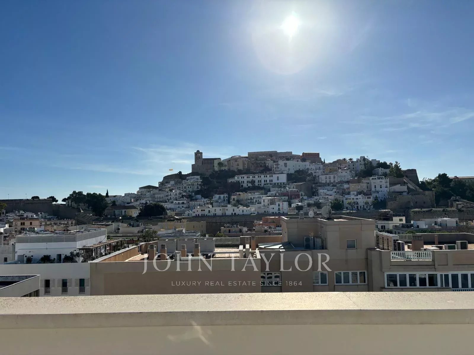 Дуплекс-пентхаус на Ибице площадью 250 м² с террасой 90 м², предлагающий впечатляющие панорамные виды на 180 градусов на Далт Вила, порт Ибицы и горы.