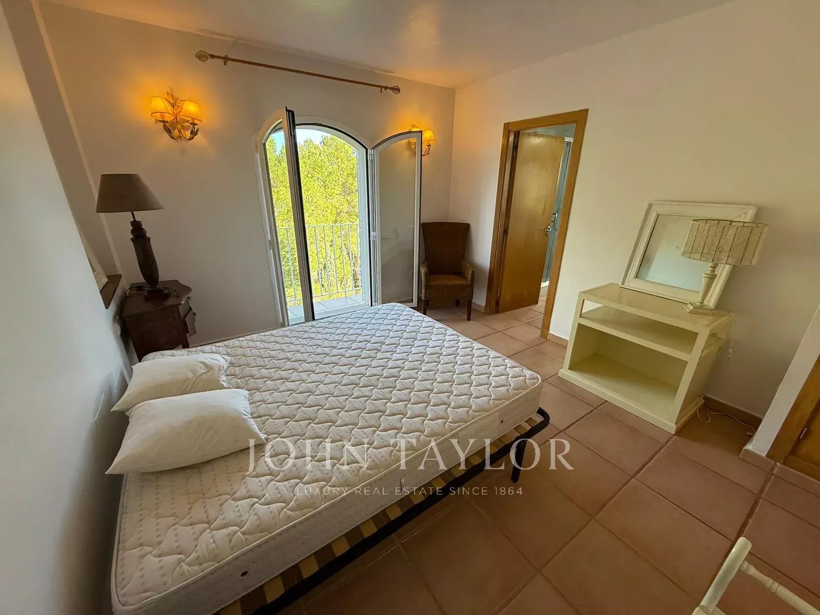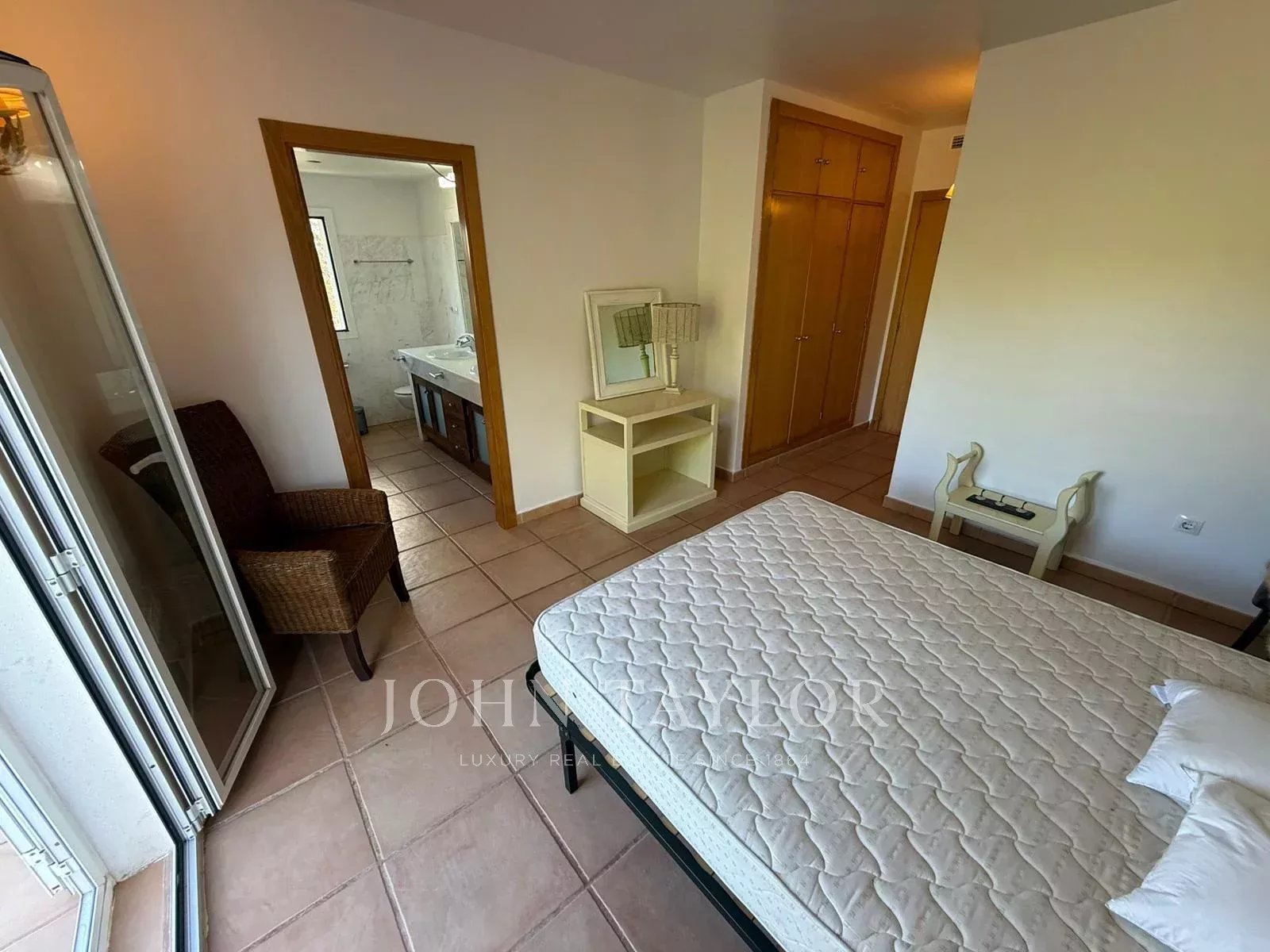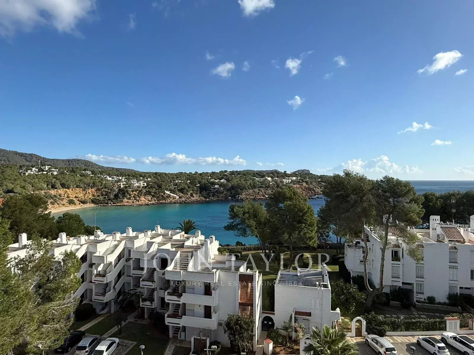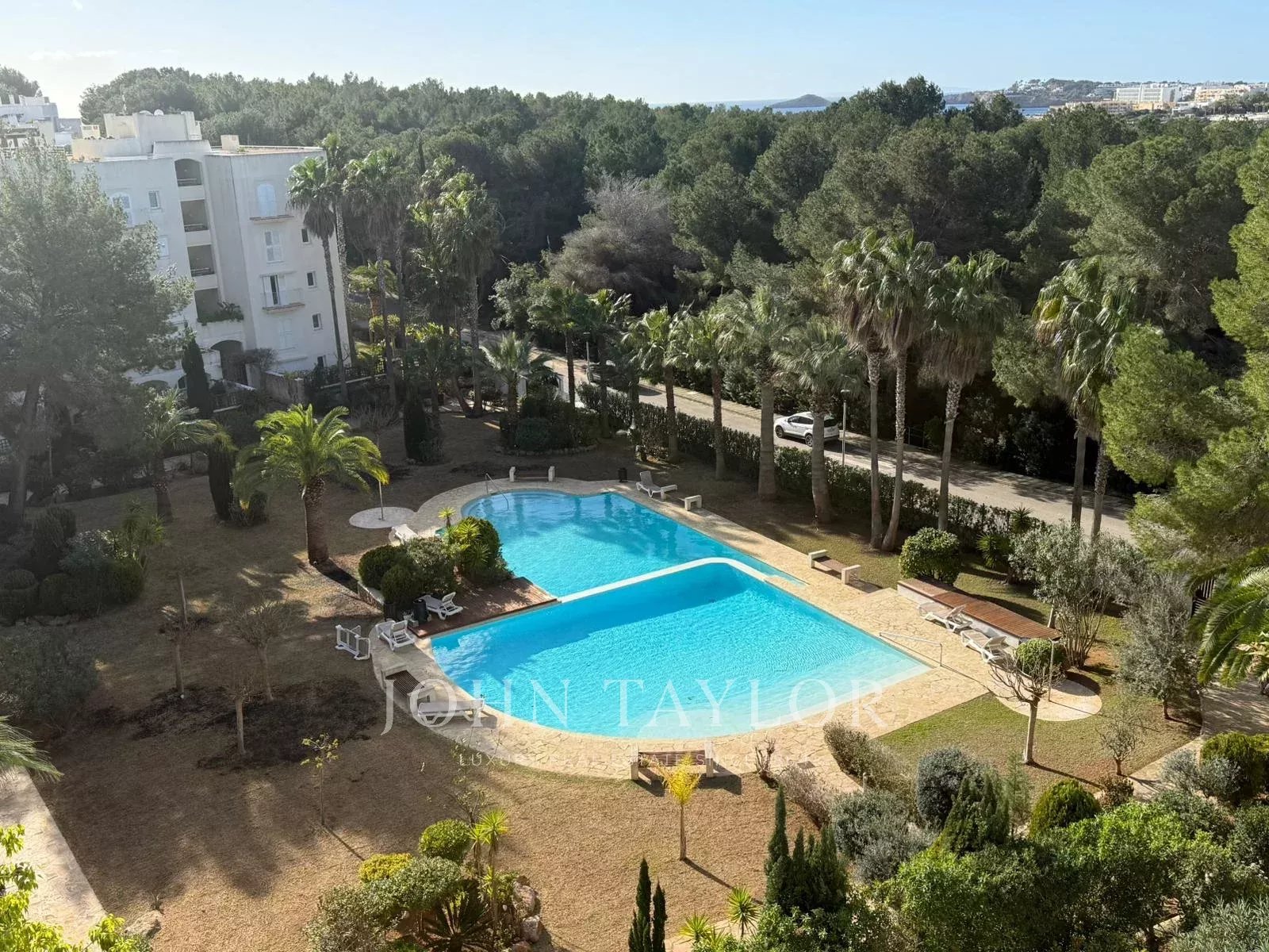 Комплекс располагает ухоженной территорией около 7 000 м² с садами, двумя бассейнами и кортами для паделя, находится примерно в 400 метрах от пляжа и всего в нескольких минутах езды от Santa Eulalia del Río. Отличный вариант для тех, кто ищет спокойствие, вид на море и просторные внешние зоны на севере Ибицы.