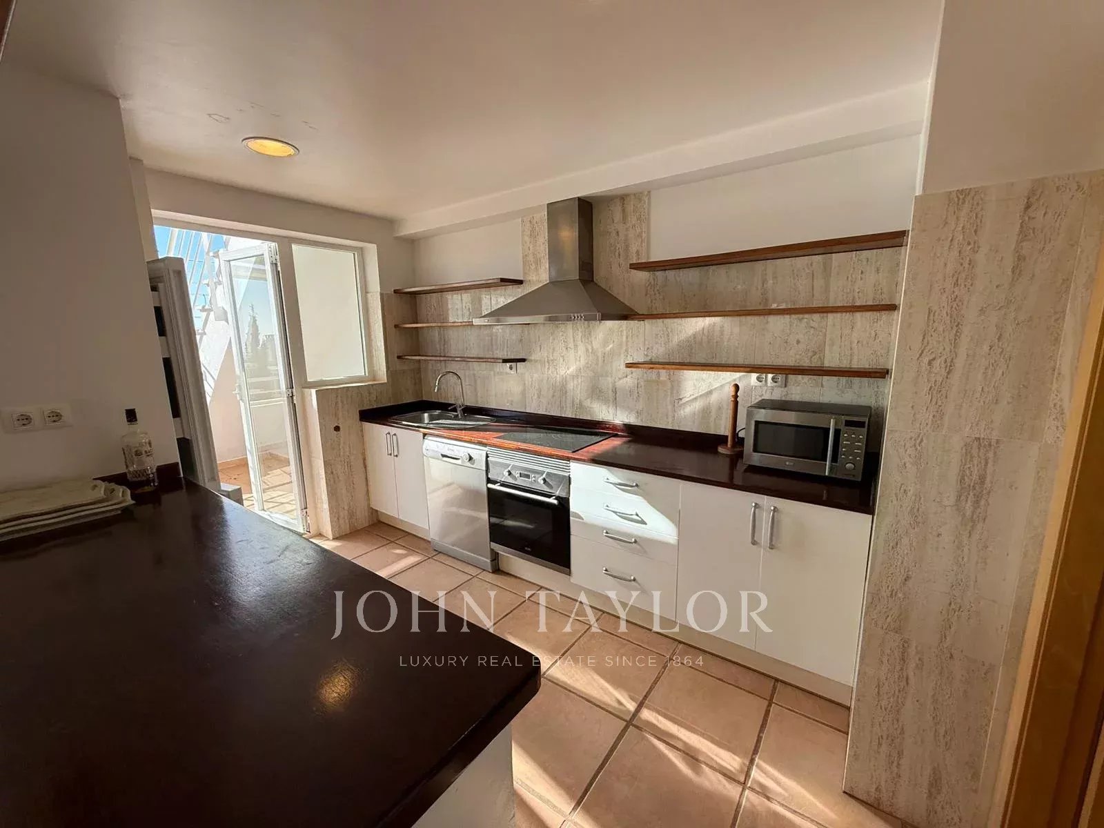 В апартаментах просторная и светлая гостиная с камином и прямым выходом на крытую террасу с видом на море, полностью оборудованная кухня и отдельная прачечная. В пентхаусе четыре спальни и три ванные комнаты, включая главную спальню с собственной ванной комнатой, две двухместные спальни и одну спальню также с ванной комнатой en suite, что делает планировку удобной как для семьи, так и для гостей.