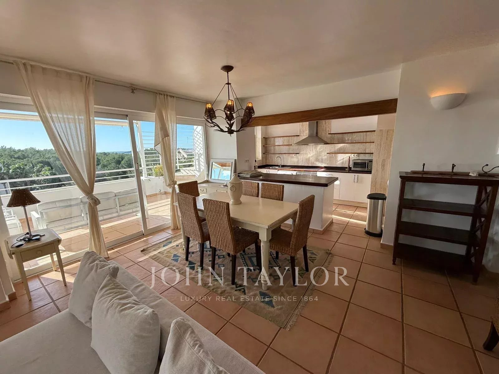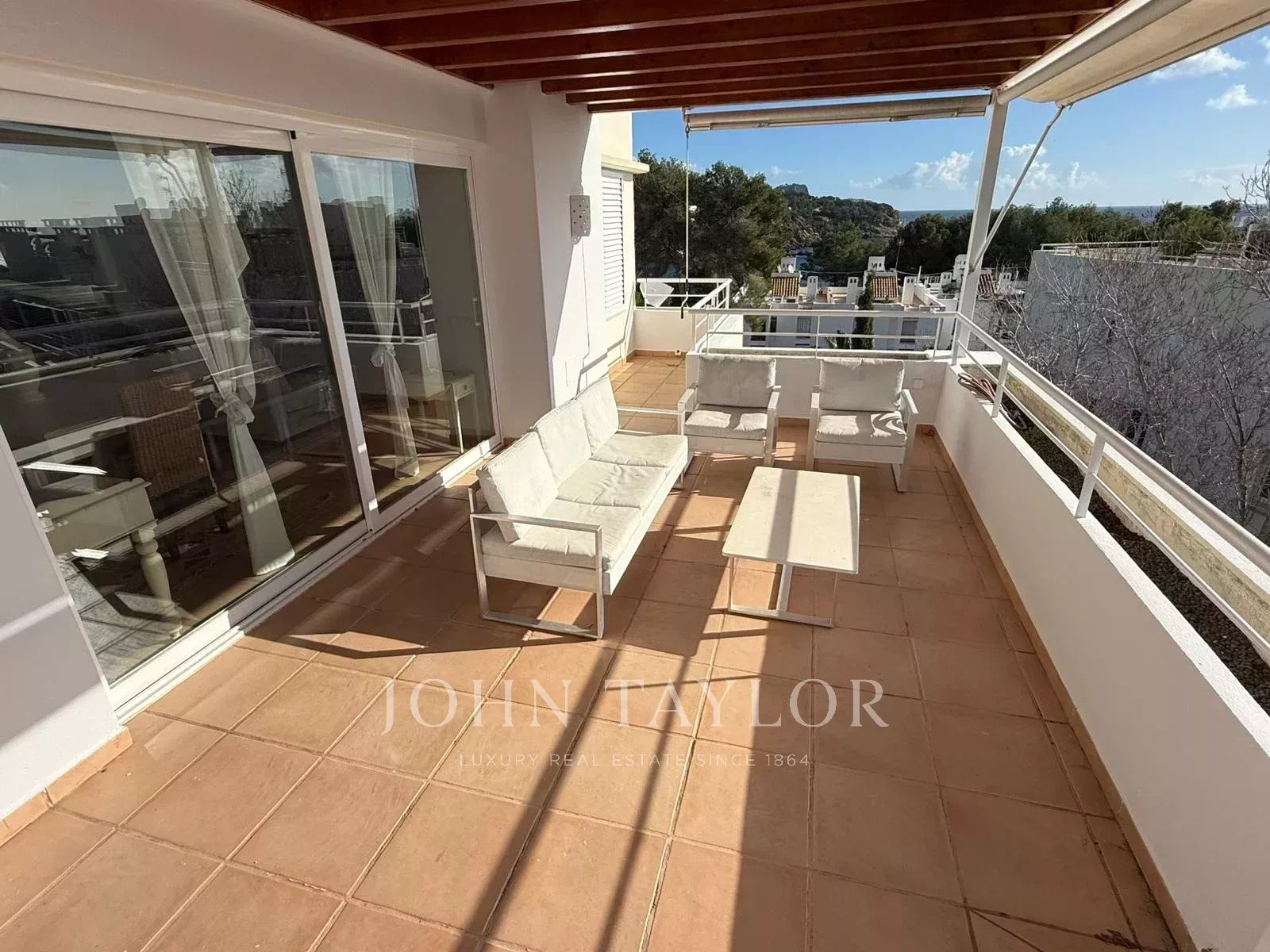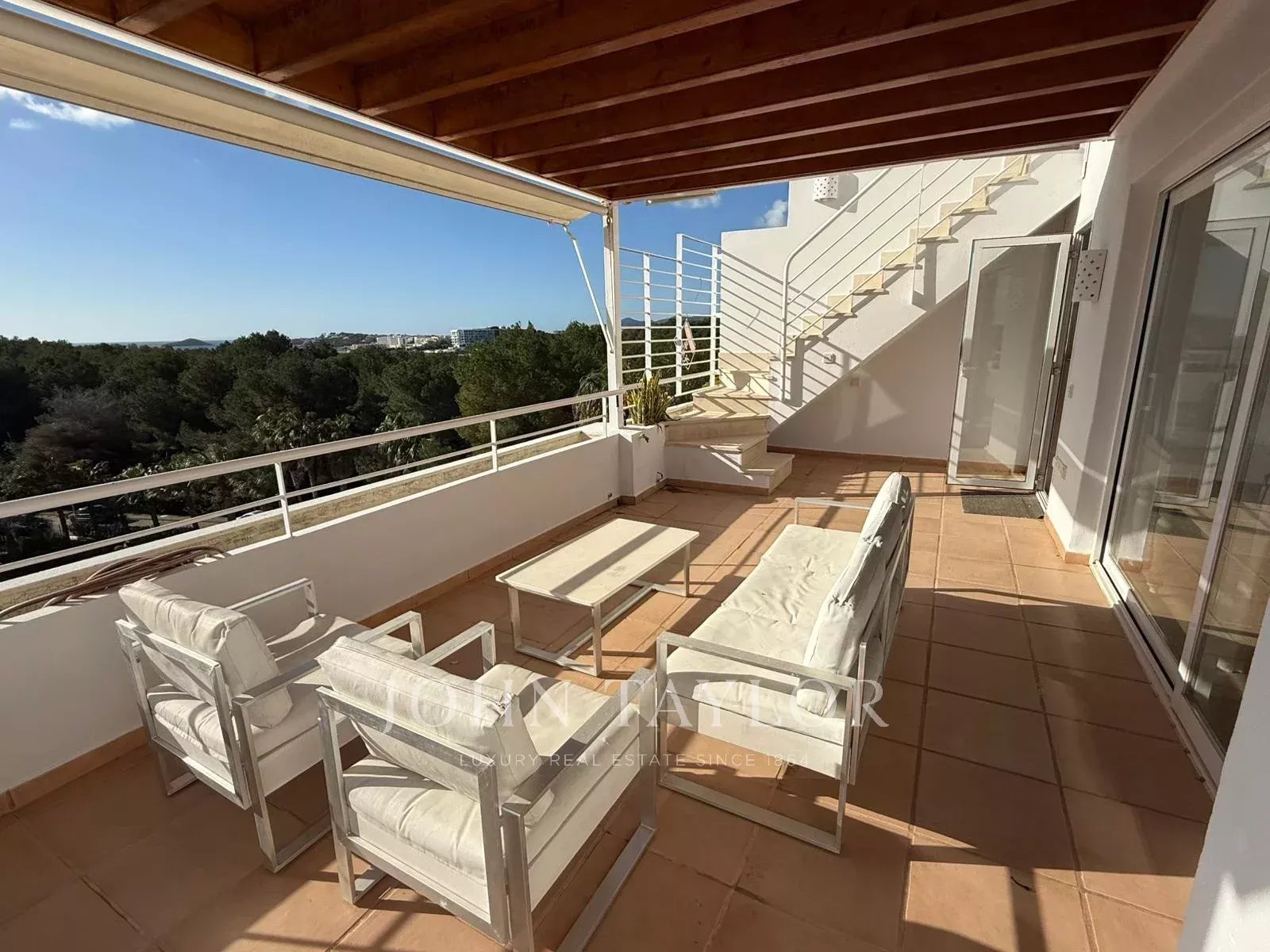 Эксклюзивный пентхаус на продажу в районе Cala Llenya, всего в нескольких минутах от San Carlos, расположенный в спокойной природной зоне в пешей доступности от моря. Общая внутренняя площадь составляет около 154 м², дополнительно имеется крытая терраса 36 м² и частная терраса-солярий площадью около 120 м² с открытым видом на Средиземное море и остров Форментера.