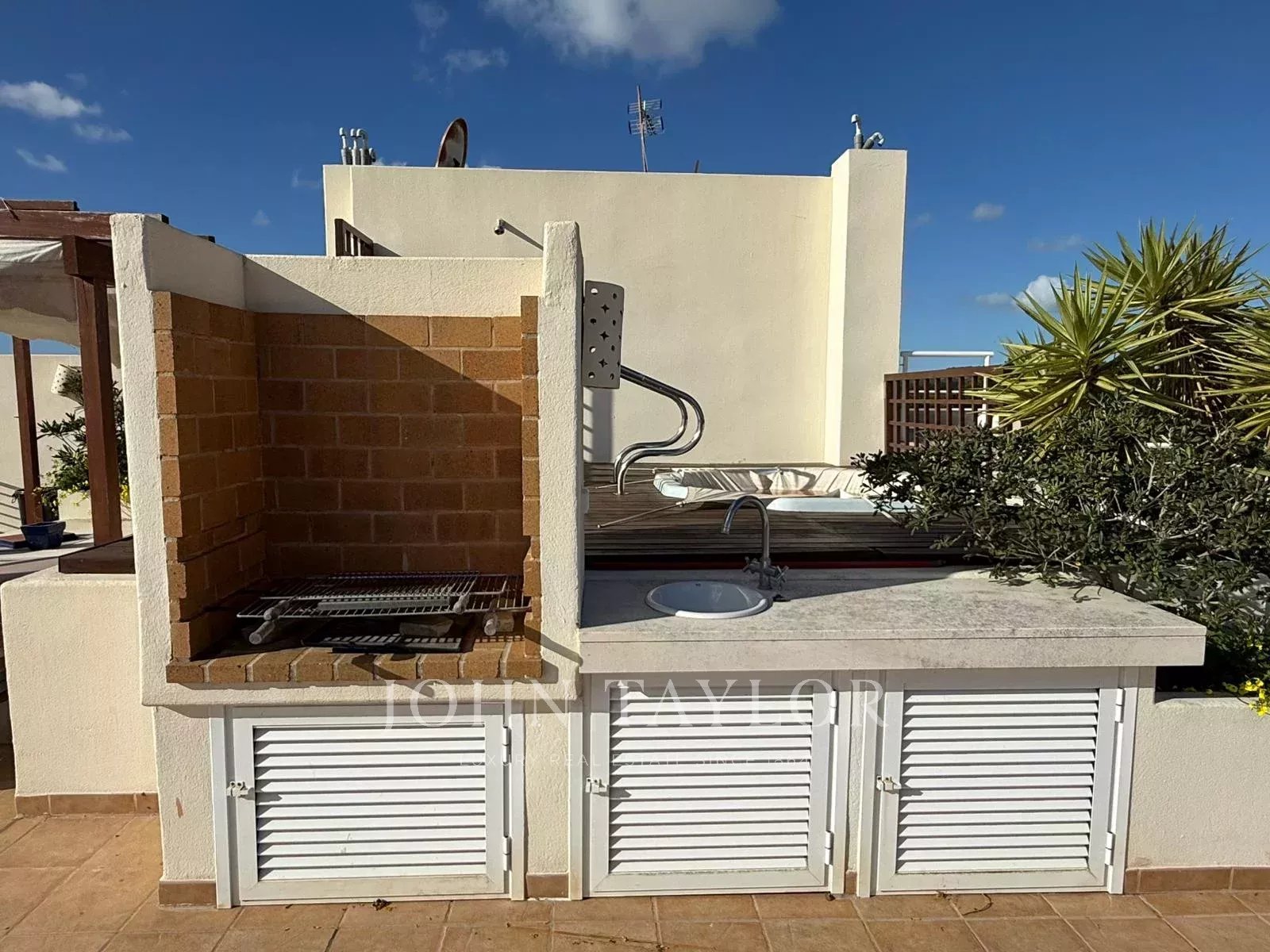 Частная терраса на крыше с джакузи и зоной барбекю является главным преимуществом этой недвижимости и позволяет наслаждаться мягким климатом Ибицы круглый год в полной приватности. Дополнительно: центральная система кондиционирования (тепло/холод), окна с двойным остеклением, сигнализация, два подземных парковочных места и кладовая.