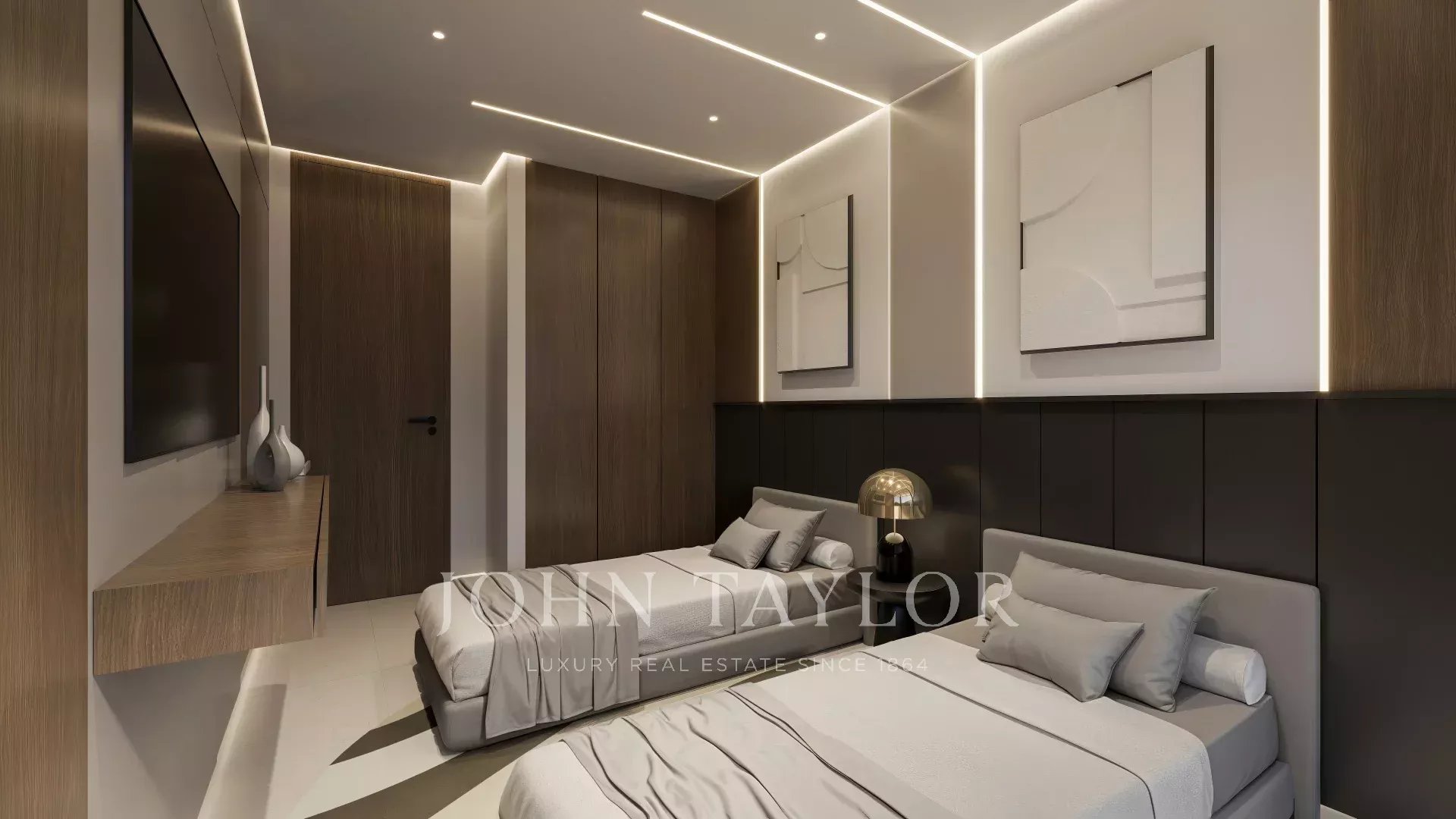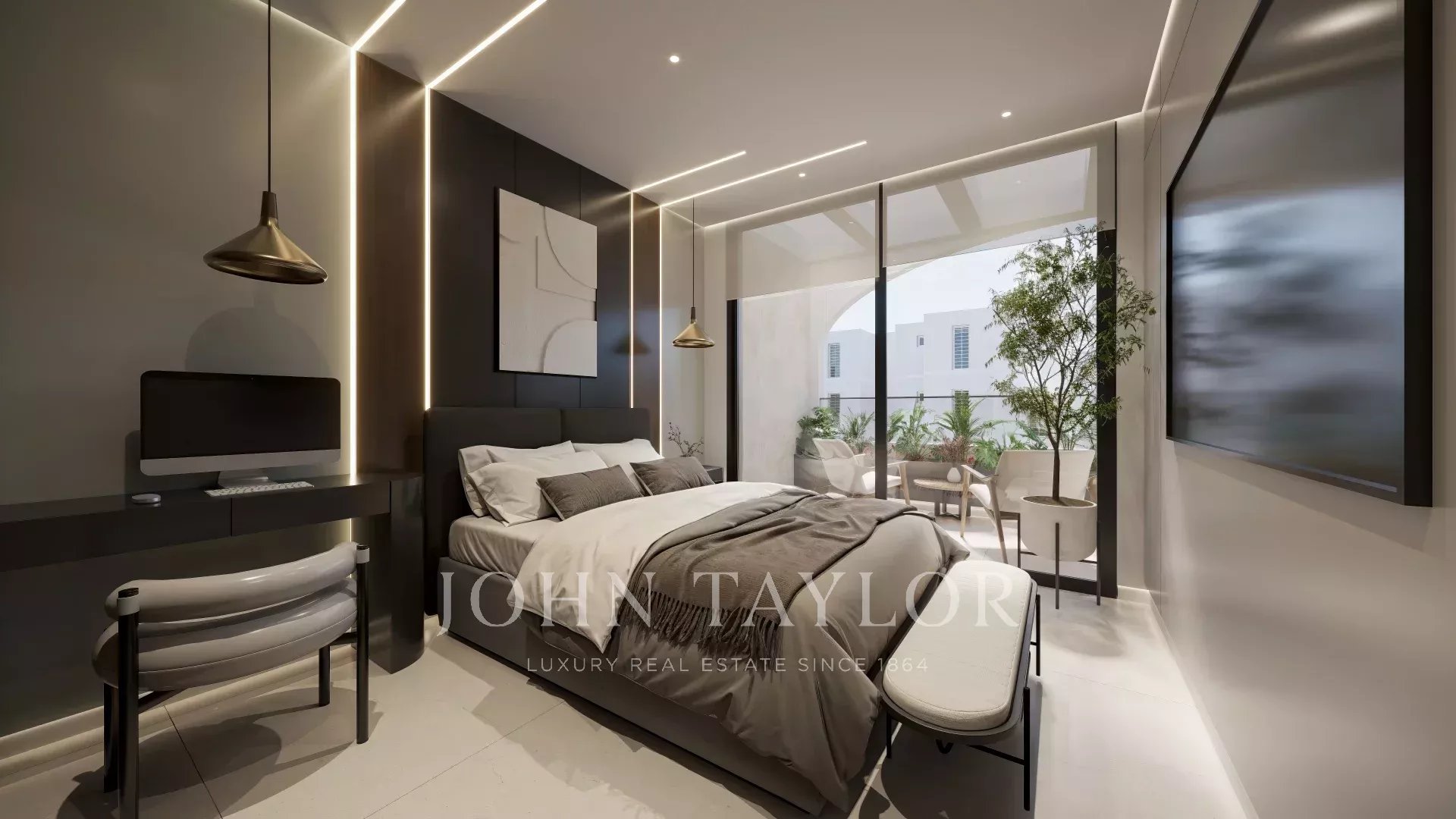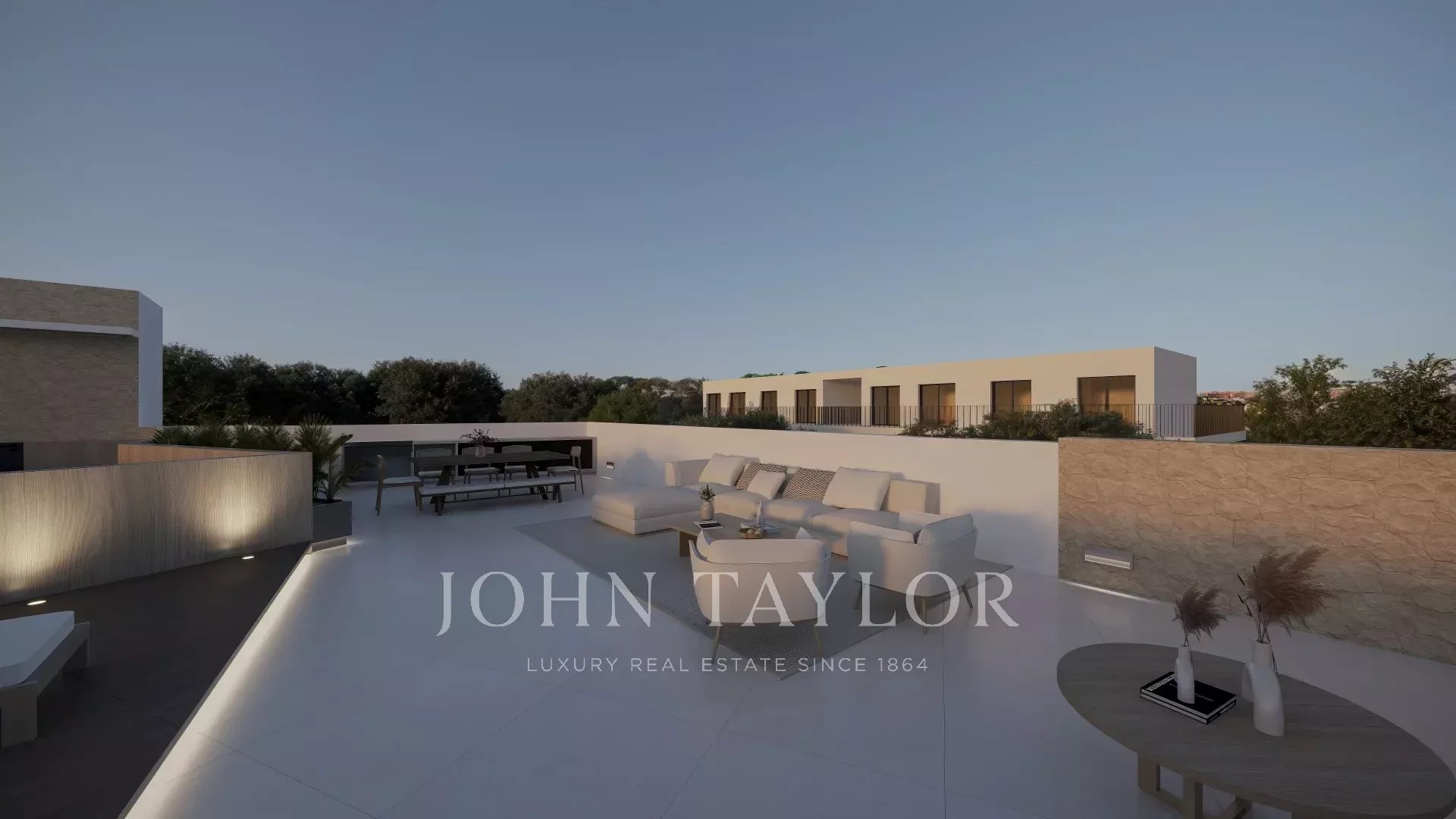 С площадью около 150 м² внутри, террасой 64 м² и впечатляющим солярием 136 м², эта резиденция предлагает идеальный баланс между элегантностью, уединением и жизнью на свежем воздухе. На крыше предусмотрено место для лаунж-зоны, обеденной зоны и возможности установки частного бассейна — идеальное пространство для наслаждения закатами Ибицы.