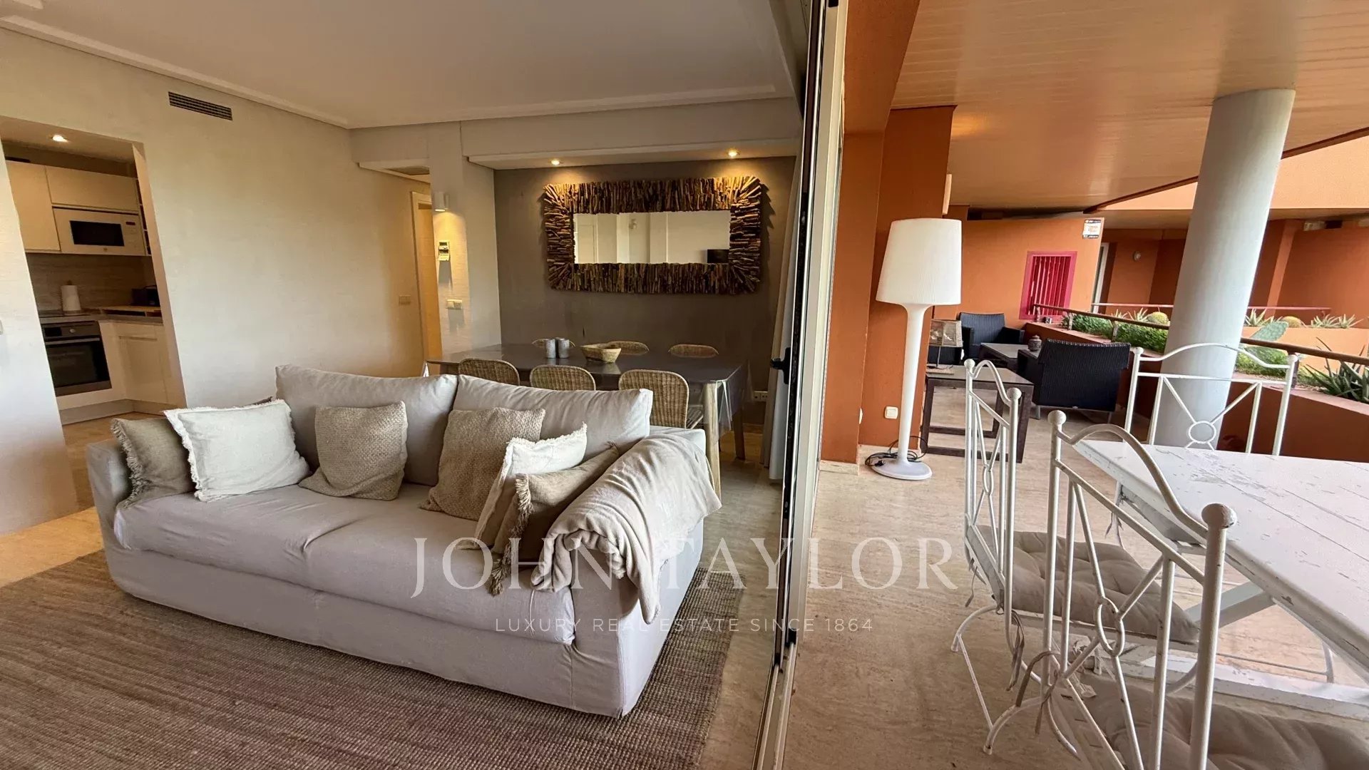На улице находится большая терраса, которая приглашает наслаждаться средиземноморским климатом. Это пространство, идеально подходящее для обедов на свежем воздухе, дополняется ухоженной зоной отдыха, созданной для расслабления и единения с окружающей природой.