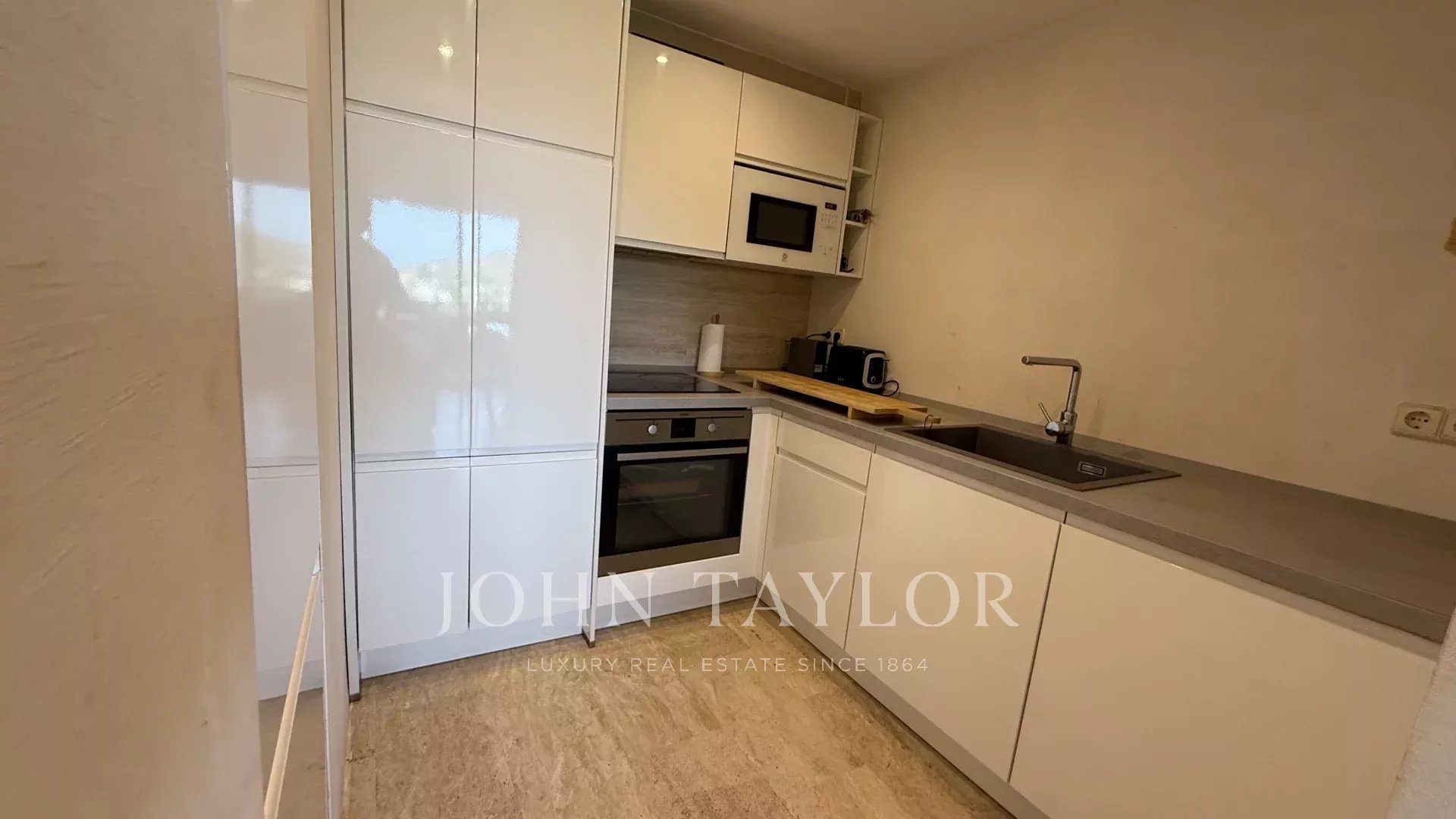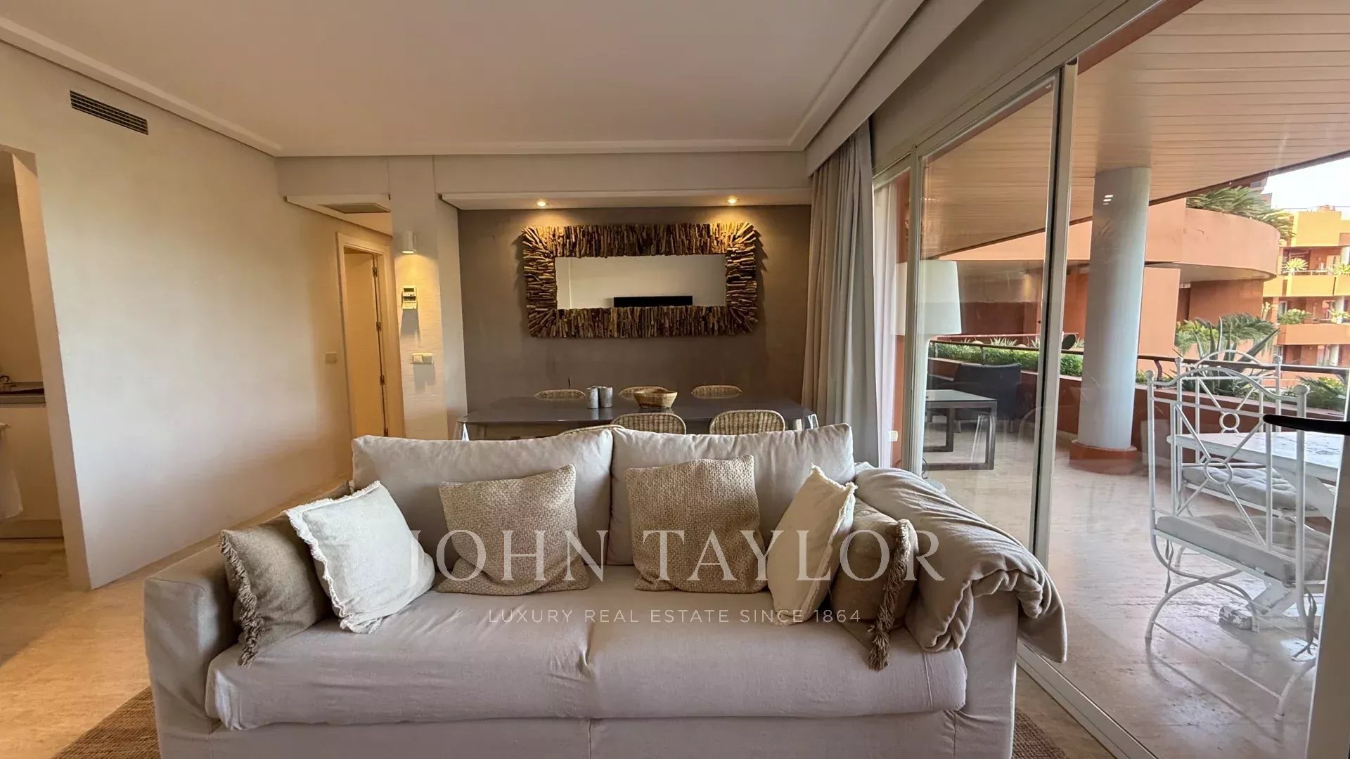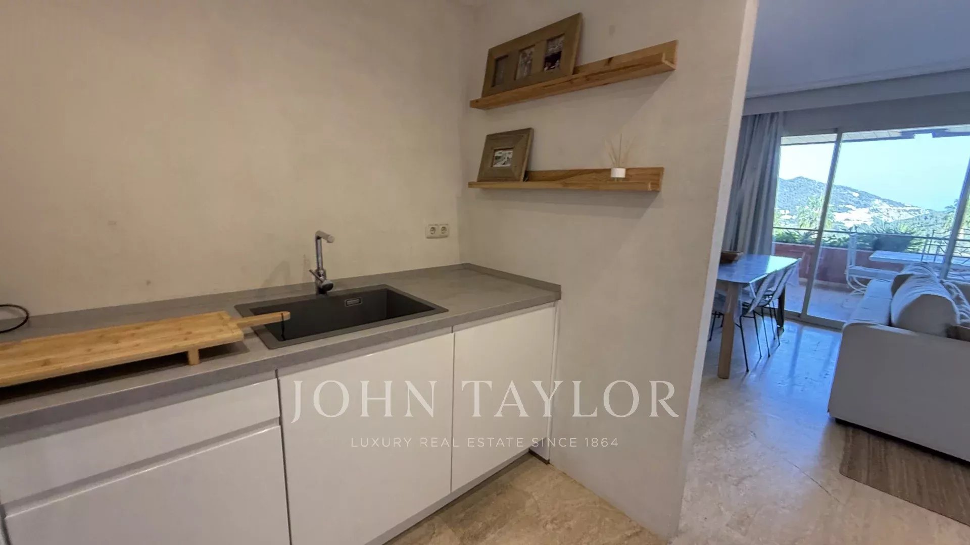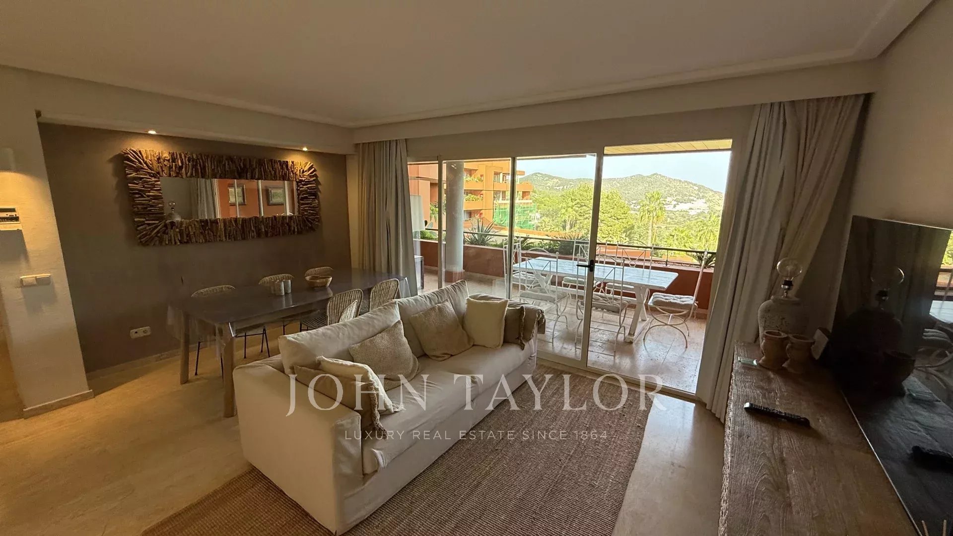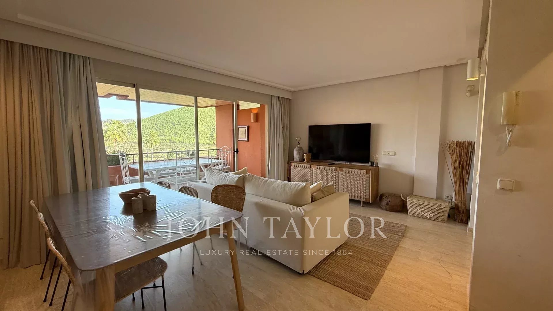 В квартире имеются две двухместные спальни — одна из них с собственной ванной комнатой — а также третья одноместная комната, которую можно использовать как дополнительную спальню, кабинет или гостевое помещение. Просторная и светлая гостиная-столовая выходит на горы, обеспечивая постоянное ощущение спокойствия и простора.