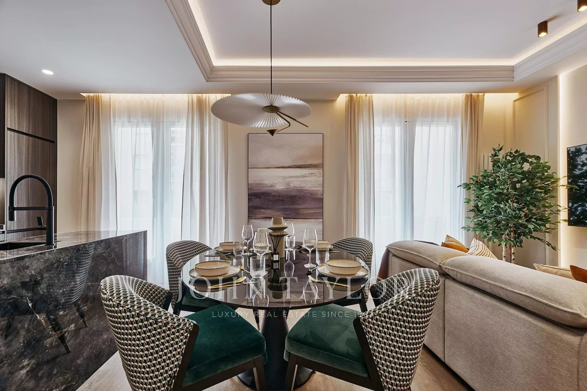Жилье было полностью обновлено с изысканным современным дизайном, идеально сочетающим эстетику и функциональность. День разделен на светлую гостиную-столовую, созданную как уютное и плавное пространство, которое гармонично интегрировано с полностью оборудованной кухней, предназначенной для современного образа жизни.