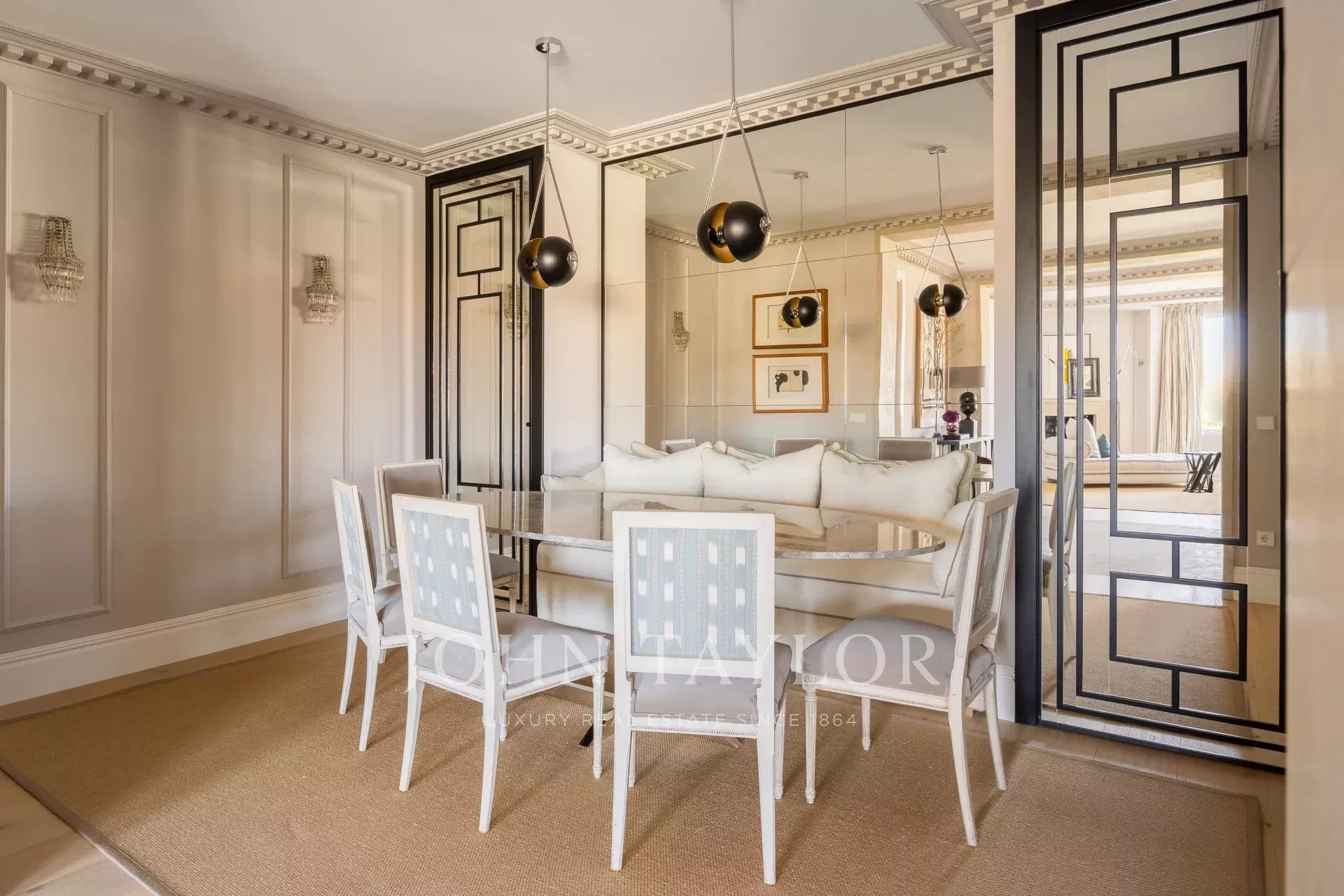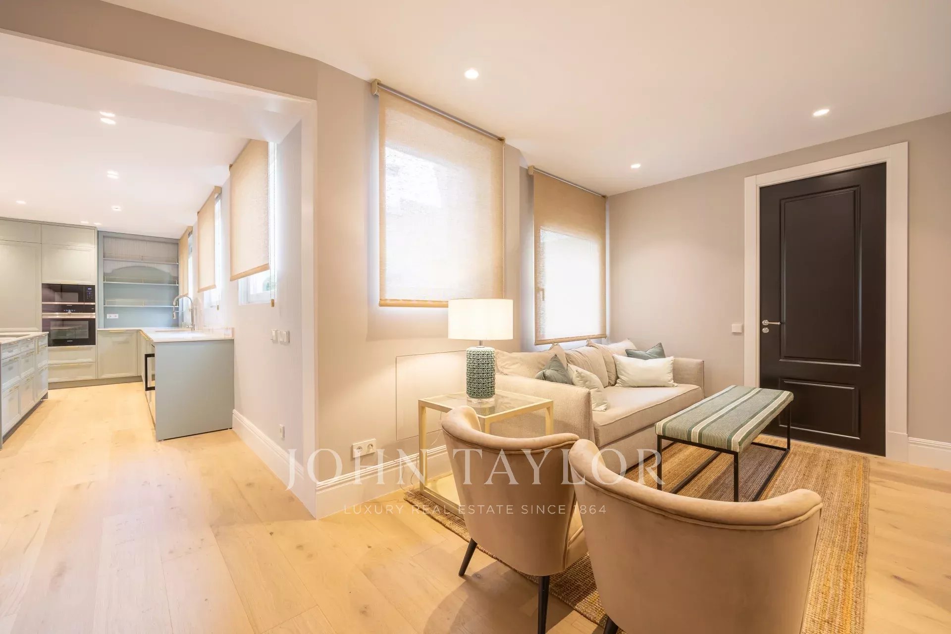 В доме имеется две входные двери - главная и служебная. В доме имеется швейцар, гараж и кладовая. Квартира полностью меблирована и оформлена по проекту Луиса Гарсии Грайле.