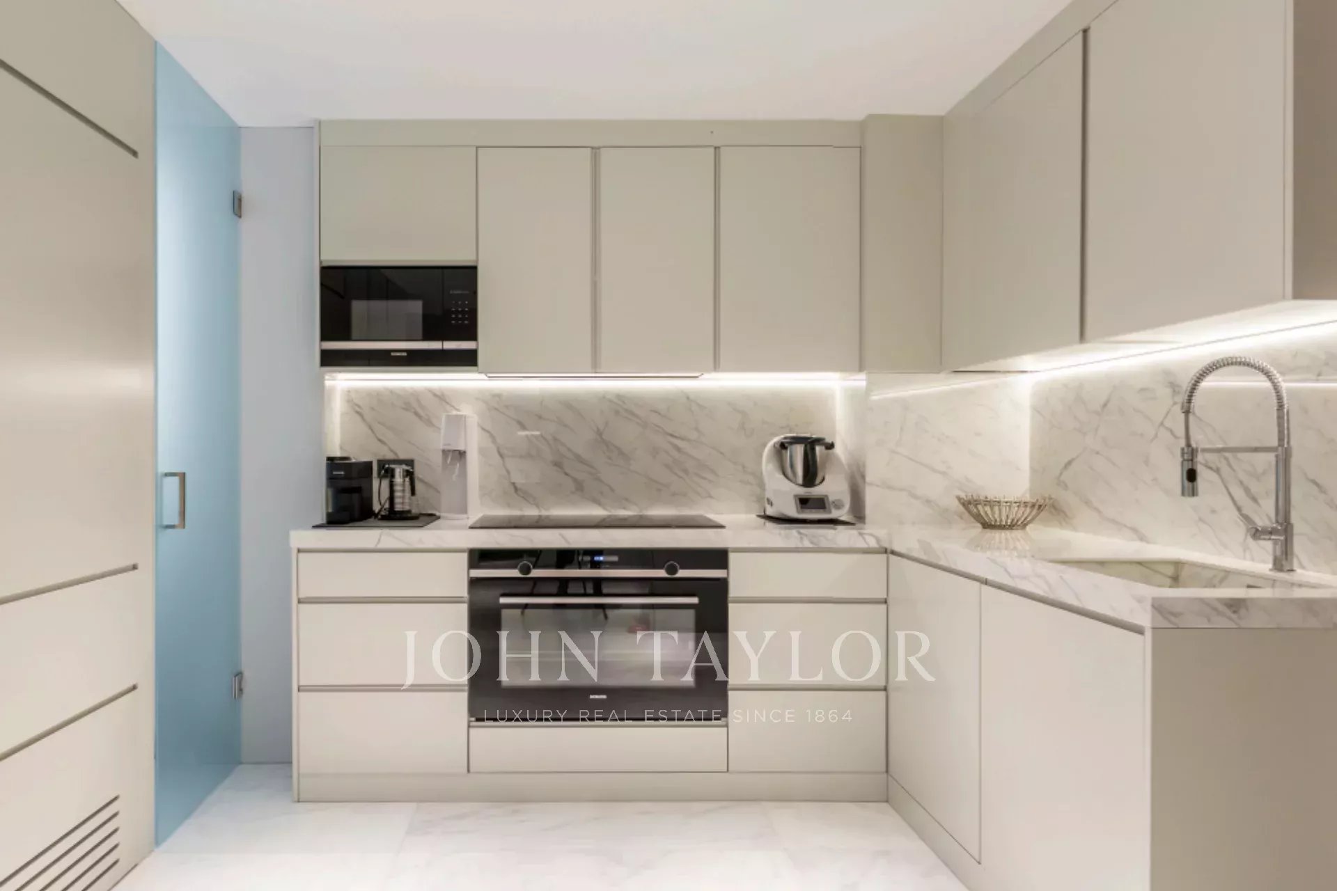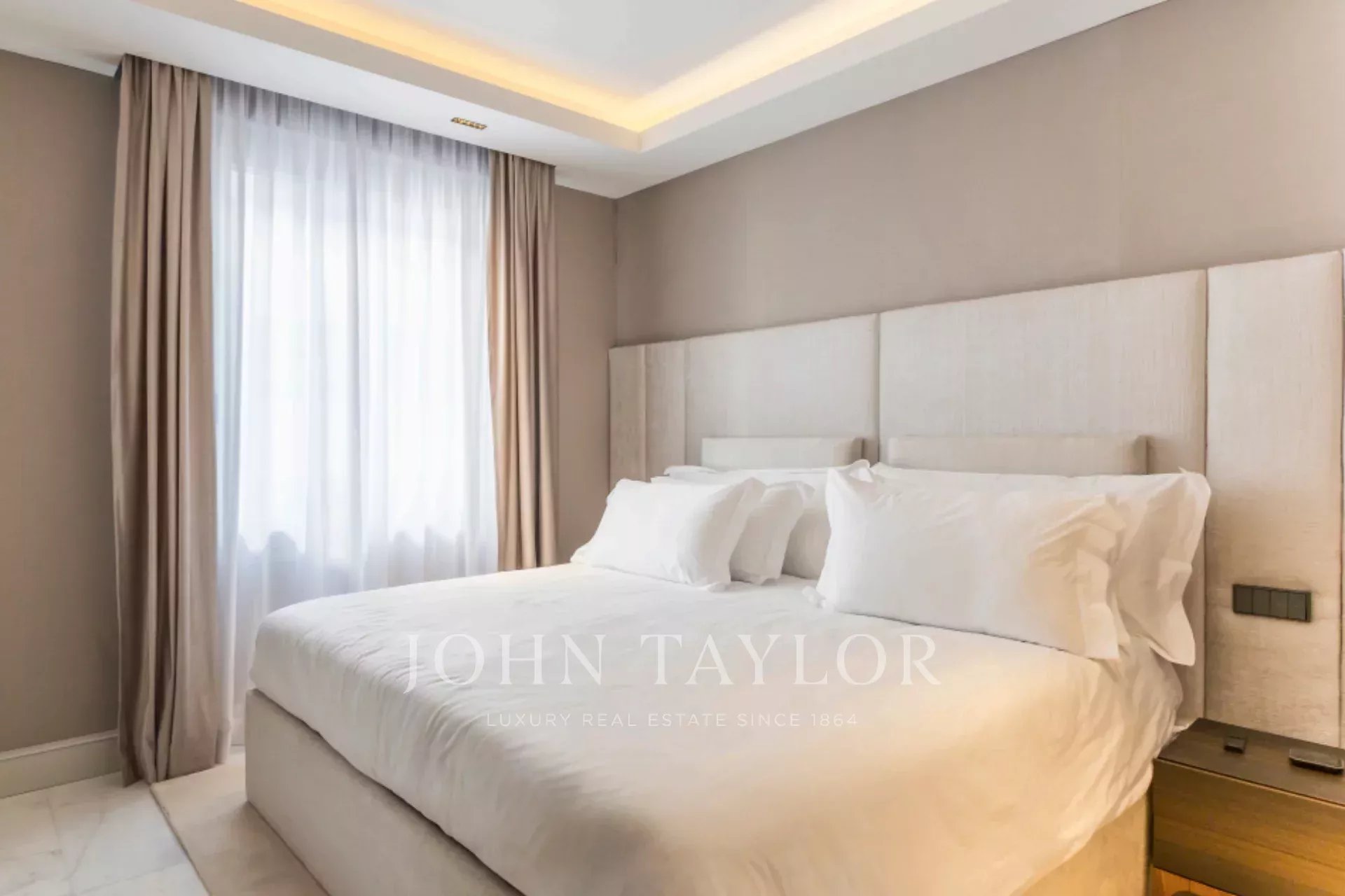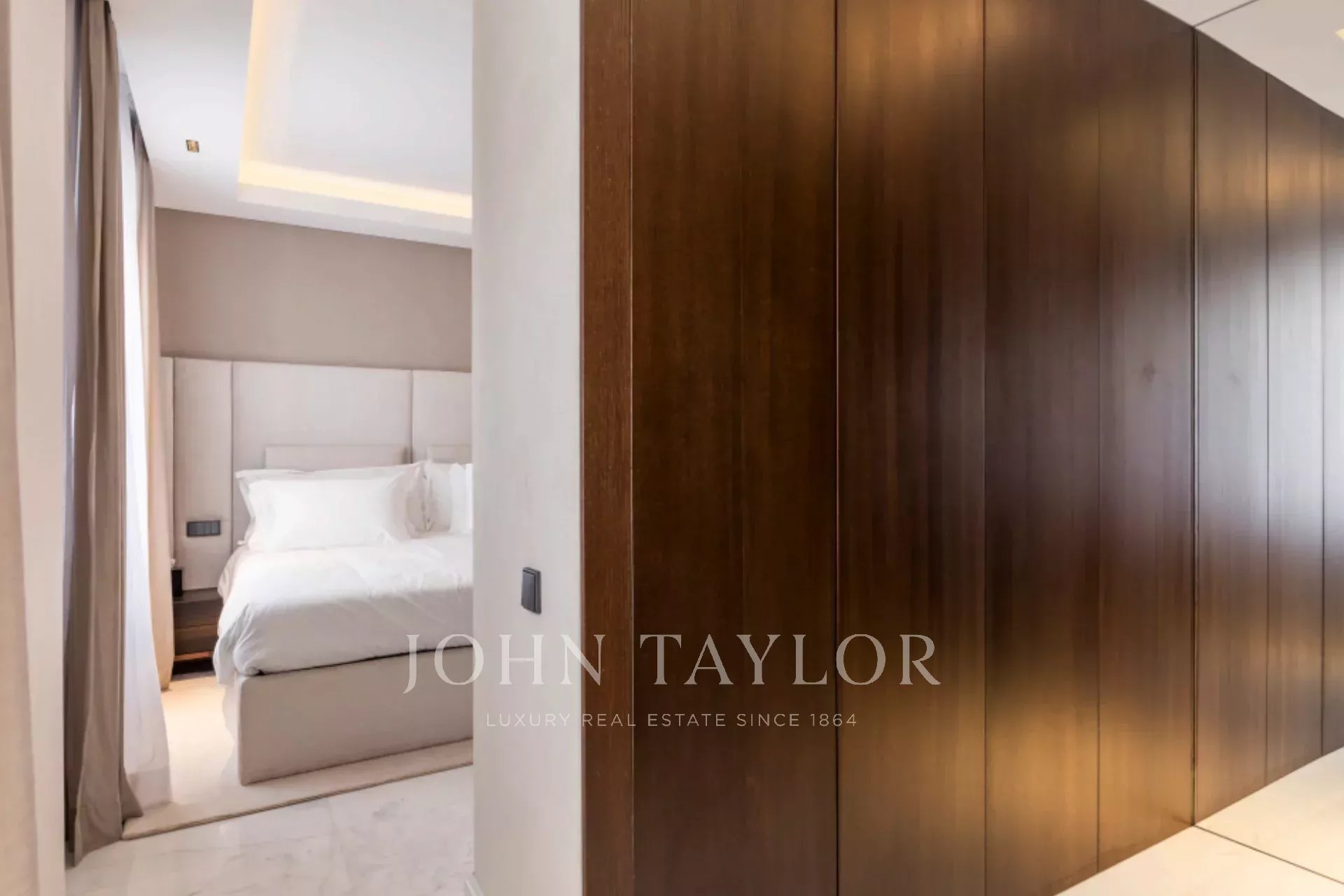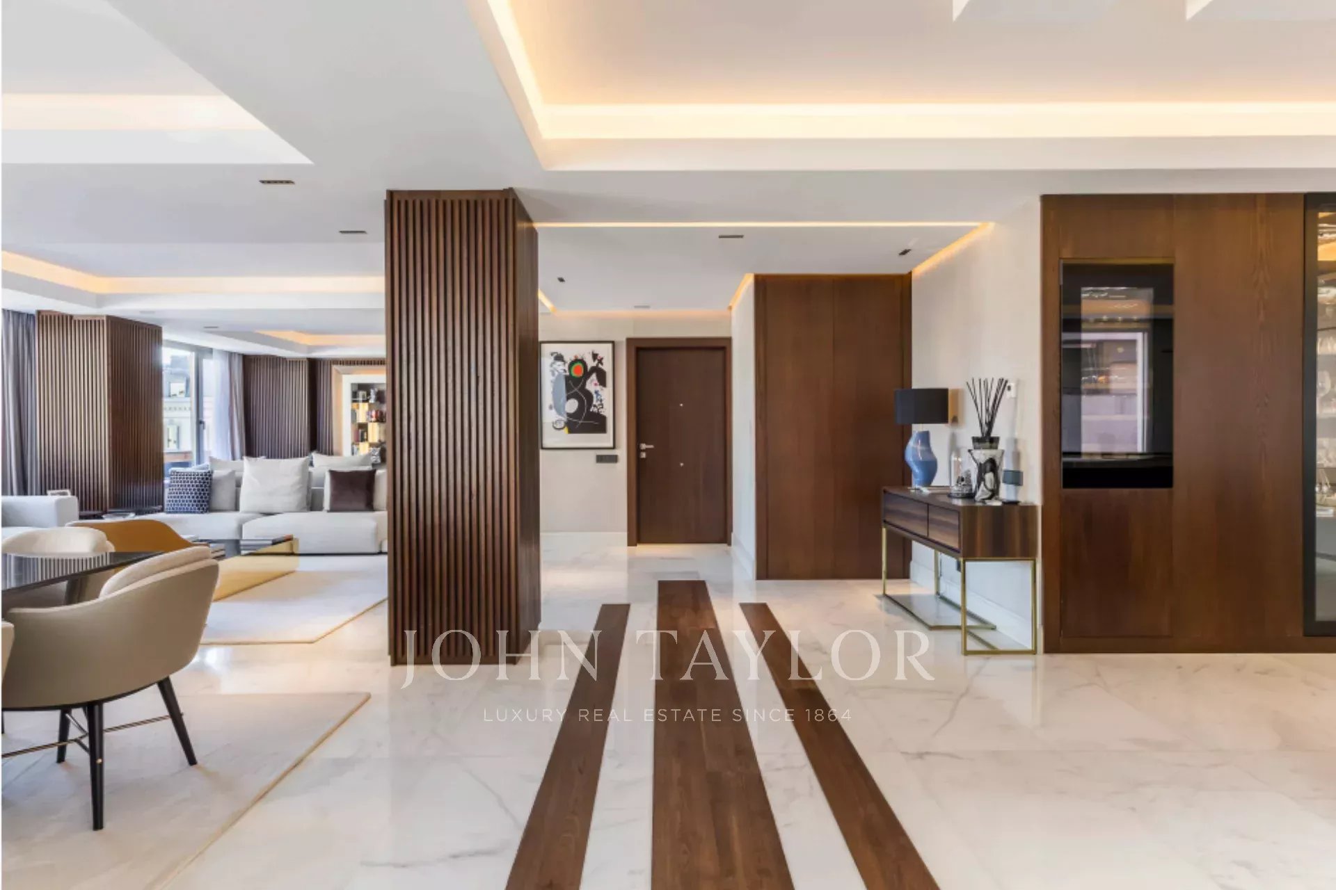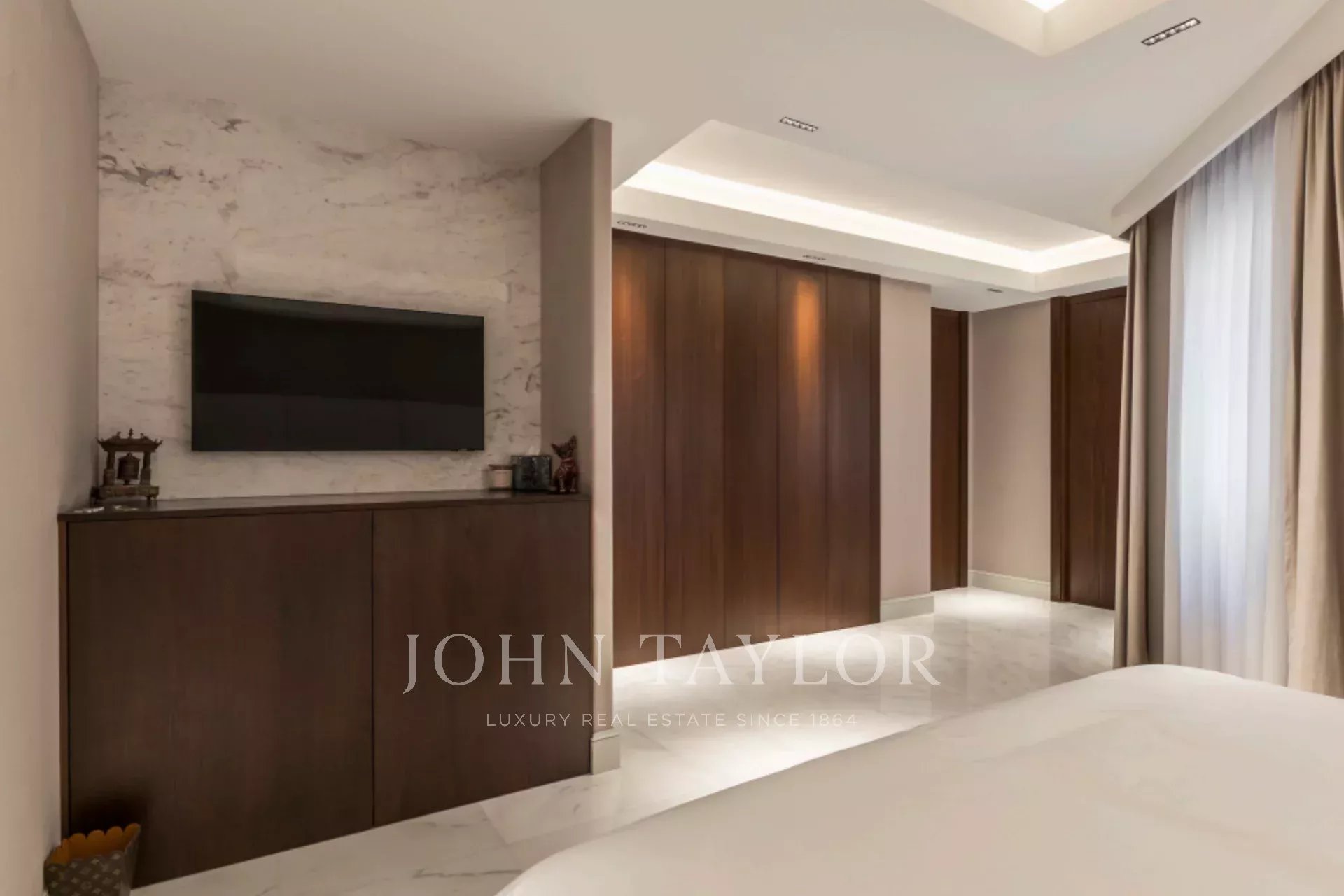 Расположенный в одном из лучших районов Мадрида, этот исключительный дом сочетает в себе международный современный дизайн и высококачественную отделку. Созданный известной студией дизайна интерьеров, он включает в себя такие благородные материалы, как доломитовый мрамор и натуральная древесина дуба, придающие дому уникальный характер.