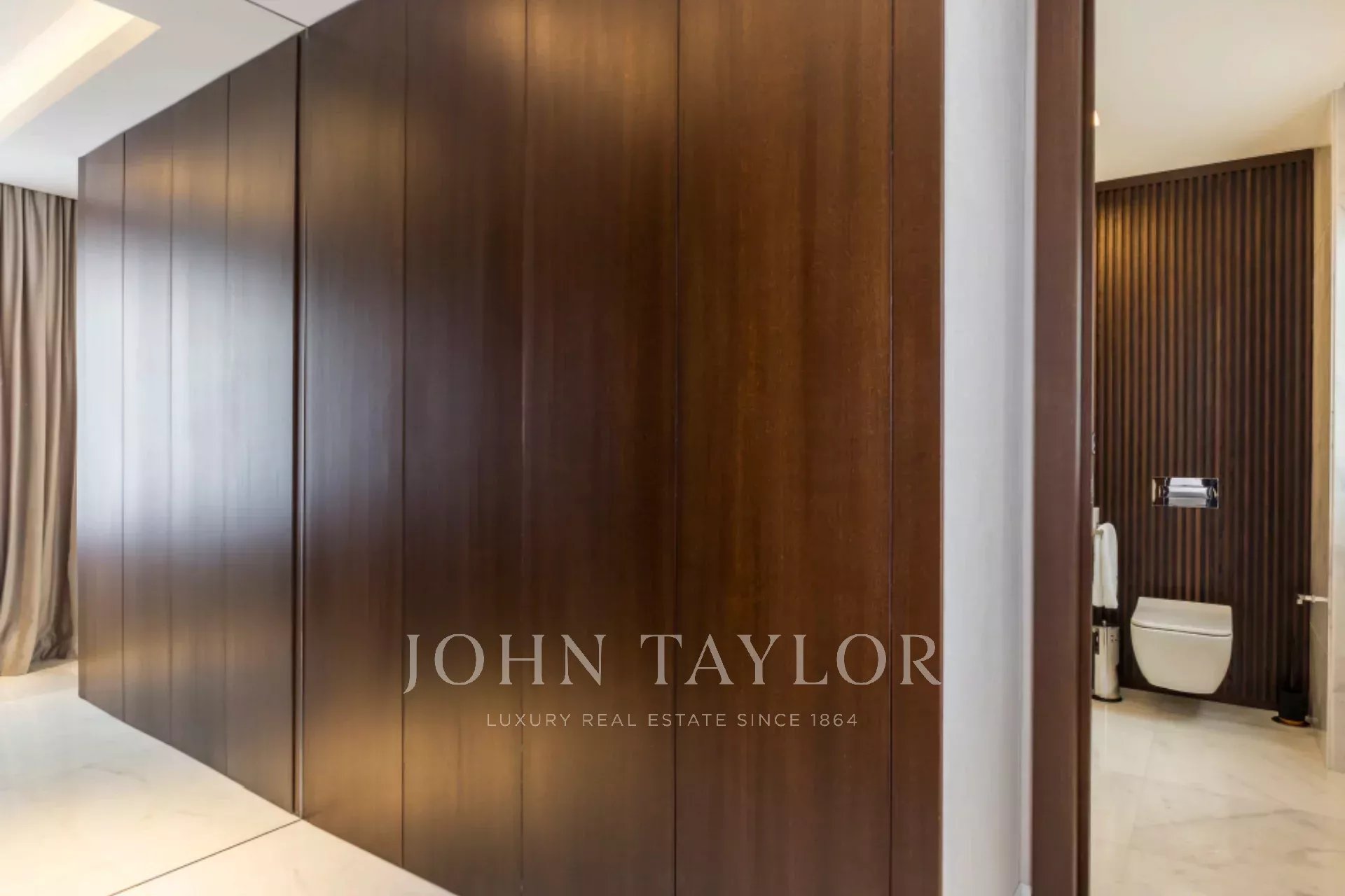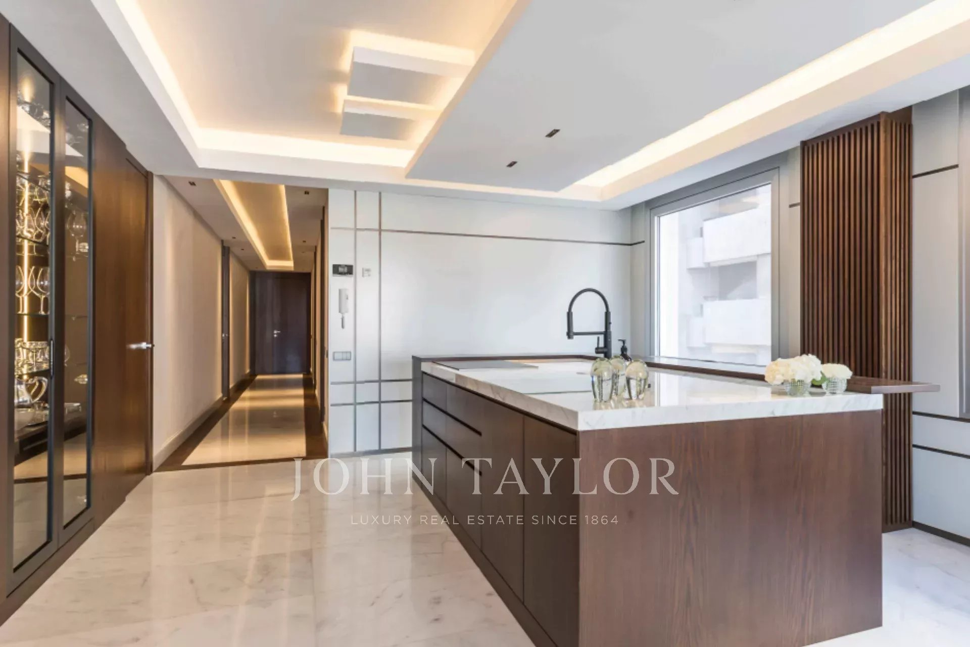 Планировка включает в себя просторную приемную со встроенной столовой, вмещающей до двенадцати человек, и большую гостиную, выходящую на террасу с беспрепятственным видом. Полностью оборудованная кухня с высококлассной техникой и винным погребом плавно соединяется с гостиной, а вторая независимая кухня предлагает дополнительную функциональность, включая прачечную, кровать для обслуживающего персонала и ванную комнату, превращая это пространство в независимую квартиру.