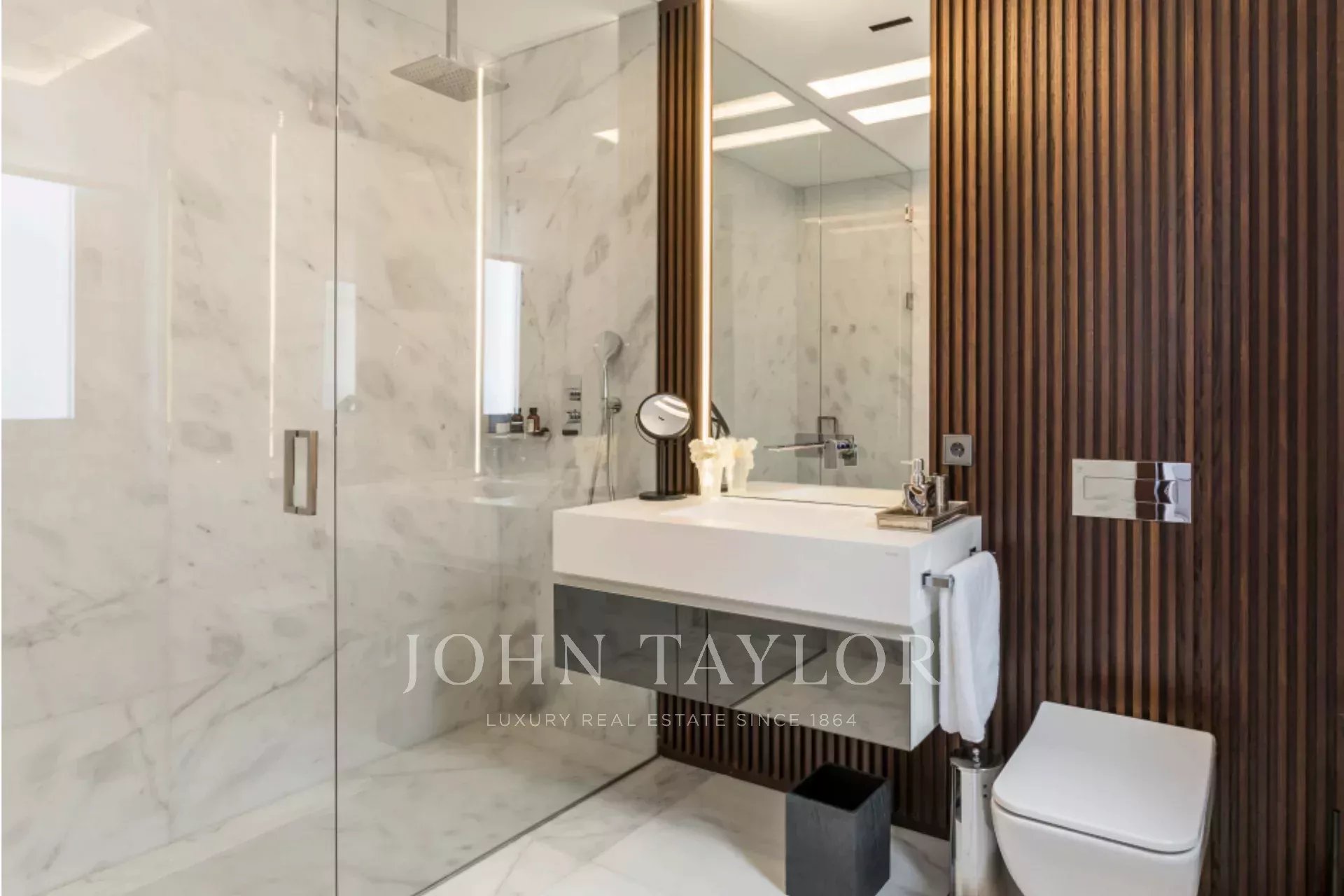 Спальная зона состоит из трех спален с ванными комнатами, просторными шкафами и современными ванными комнатами, отделанными мрамором и деревом. Система Casambi также позволяет адаптировать освещение к потребностям каждого момента, создавая расслабляющую и комфортную обстановку. Полы с подогревом и охлаждением, работающие на аэротермальной энергии, обеспечивают исключительный комфорт при низком потреблении энергии.