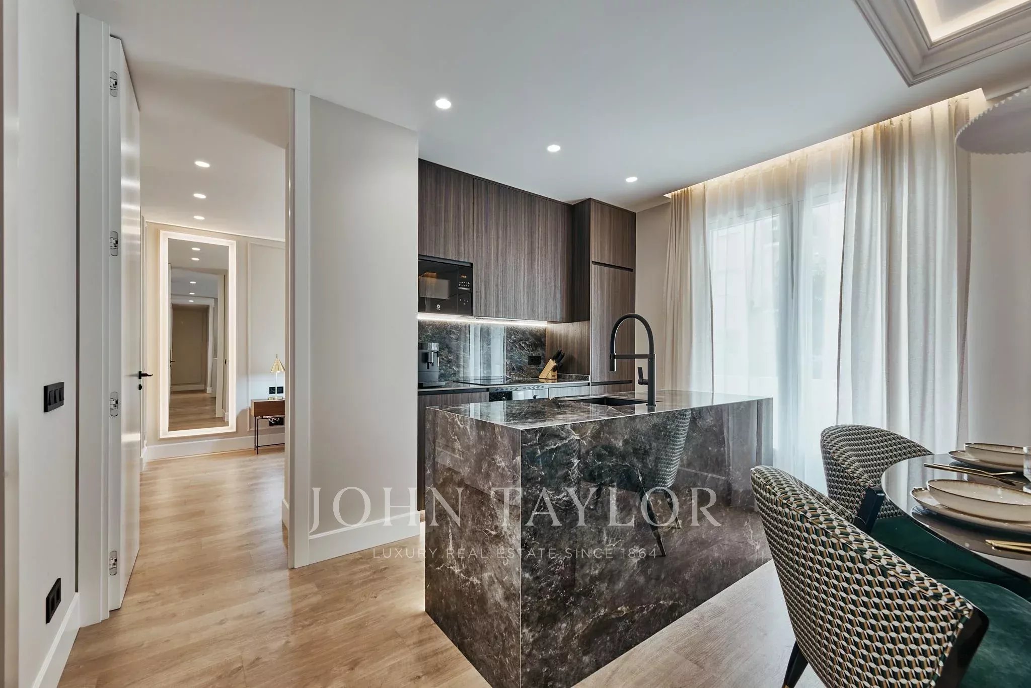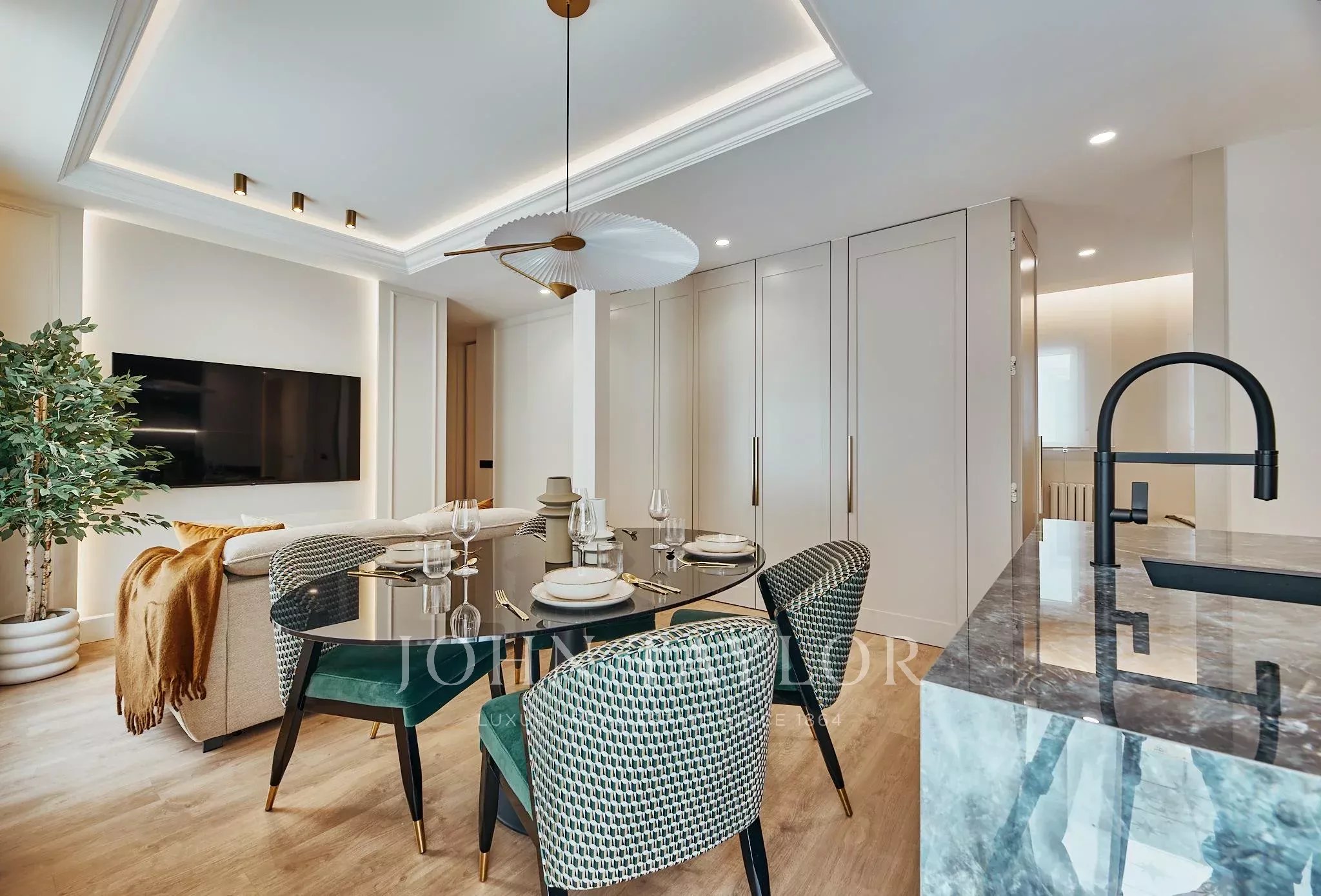 Жилье было полностью обновлено с изысканным современным дизайном, идеально сочетающим эстетику и функциональность. День разделен на светлую гостиную-столовую, созданную как уютное и плавное пространство, которое гармонично интегрировано с полностью оборудованной кухней, предназначенной для современного образа жизни.