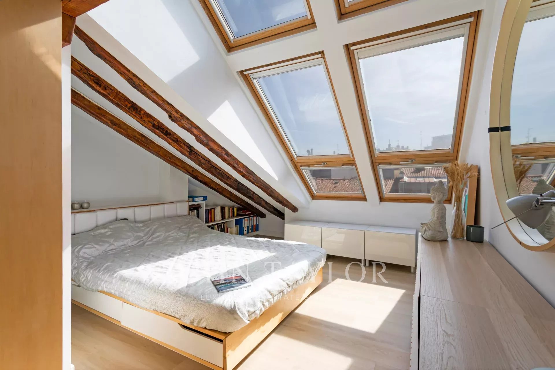 Окна гостиной и спальни выходят на улицу Алькала, откуда можно любоваться красивыми классическими зданиями и частью парка Ретиро. Это пентхаус для любителей солнца и естественного света.