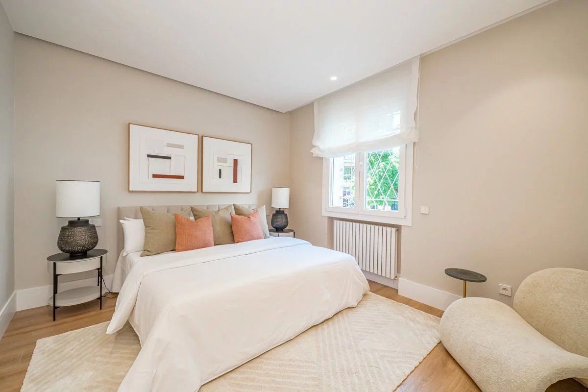 Расположенный в Саламанке, одном из самых востребованных районов Мадрида, дом предлагает близкий доступ к магазинам, услугам, транспорту и культурным местам, сочетая удобство жизни в центре с уединением в хорошо спроектированной резиденции.