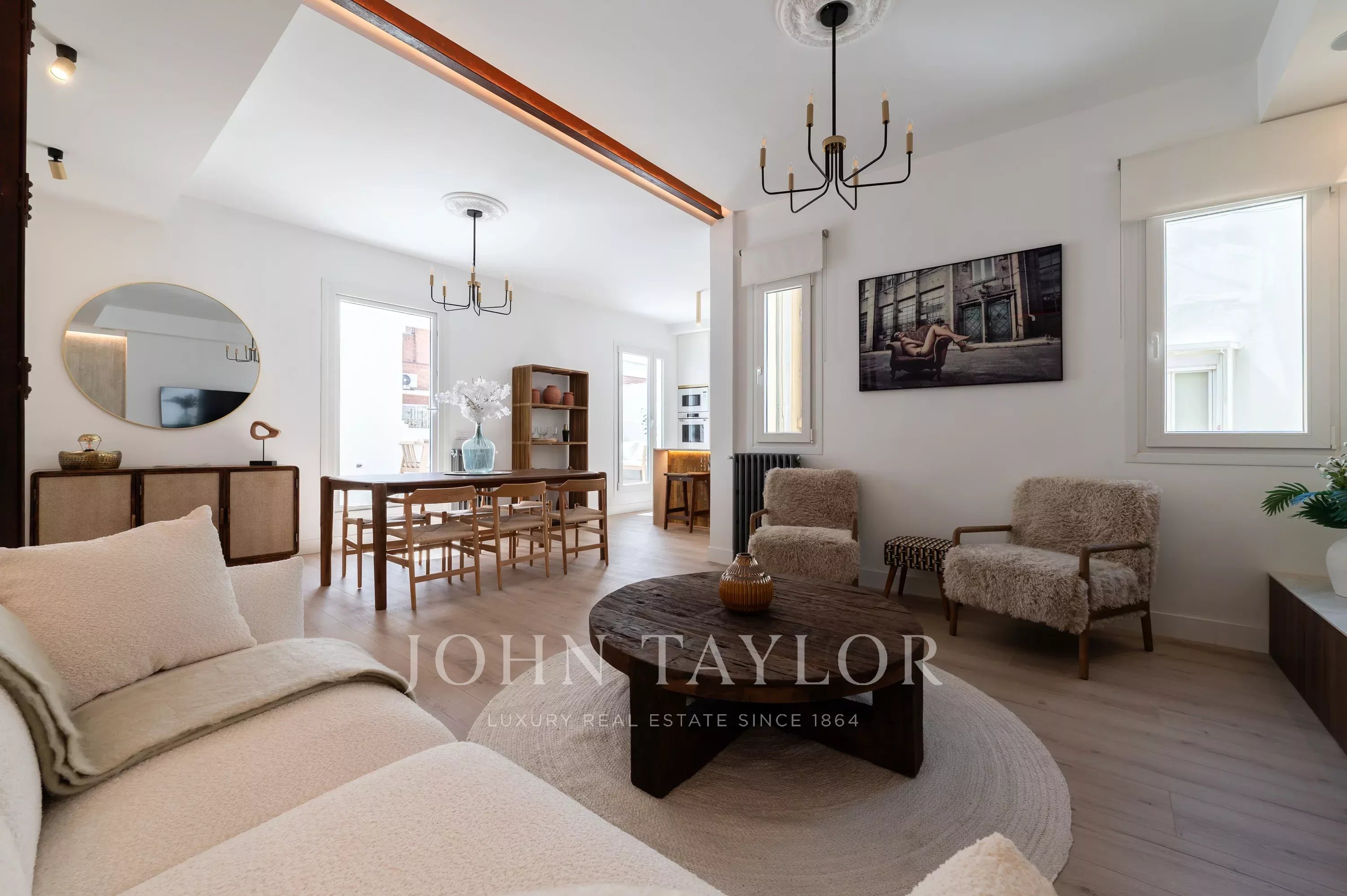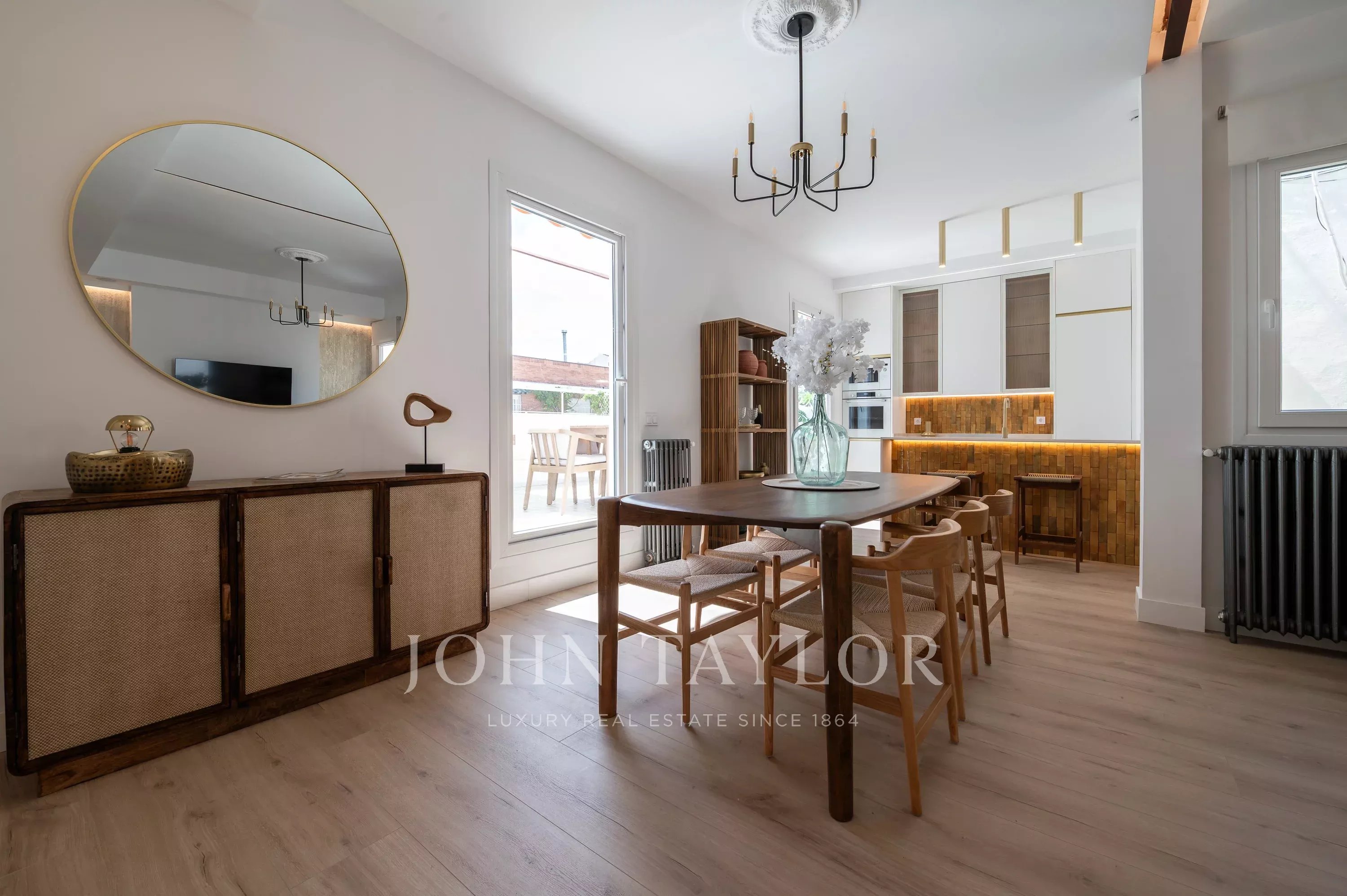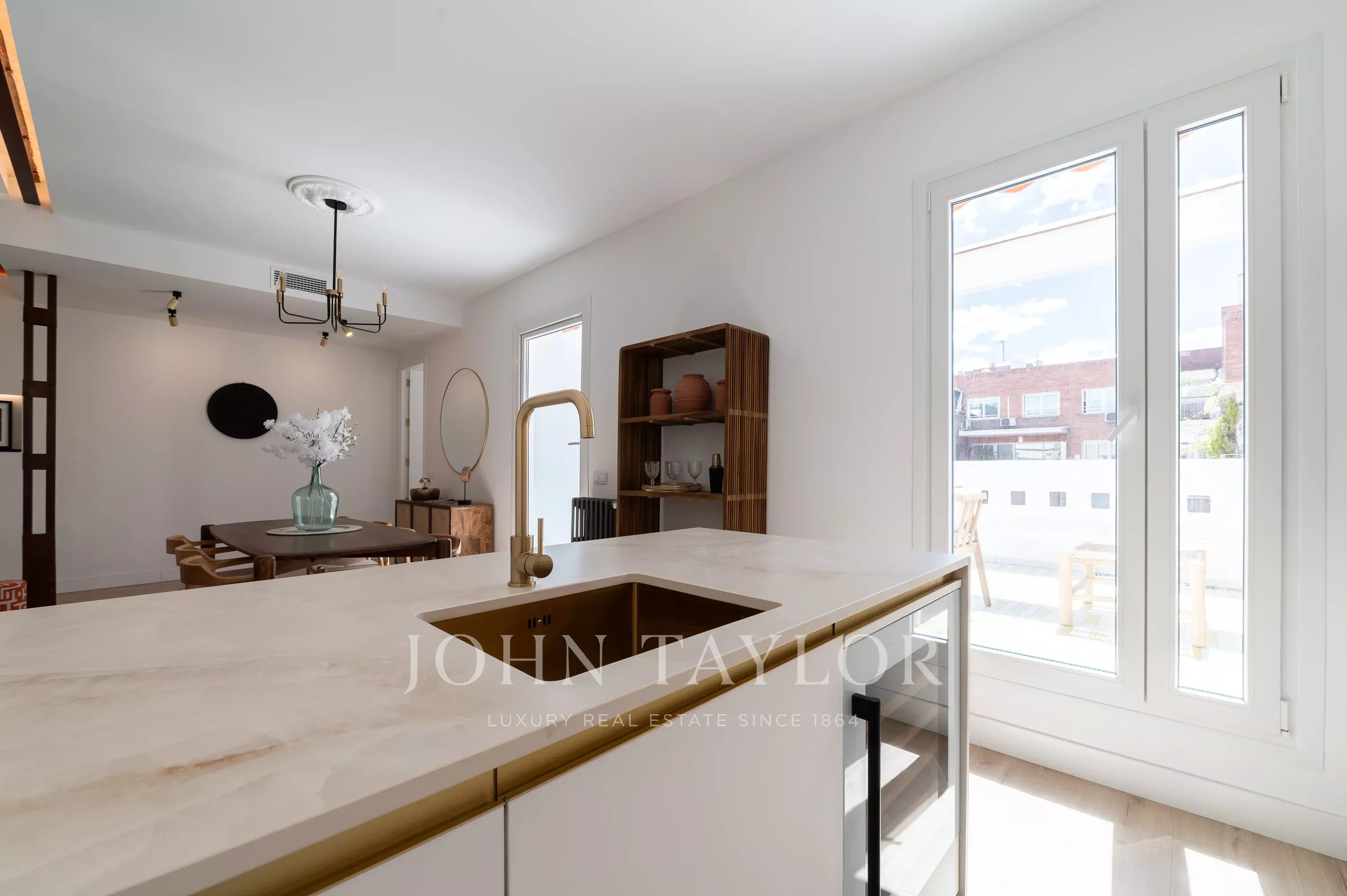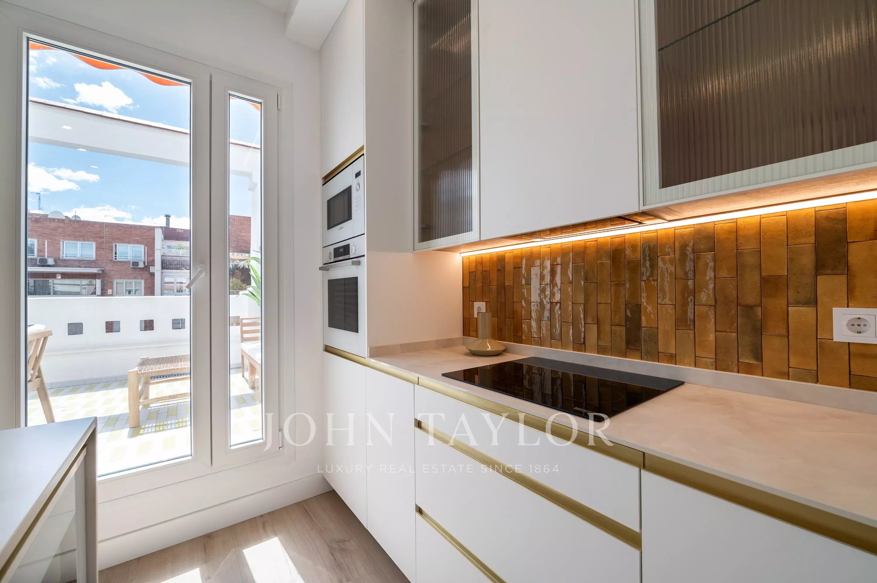 Внешний пентхаус, ориентированный на юг, в классическом здании, где естественный свет и спокойствие повышают качество жизни в Мадриде.