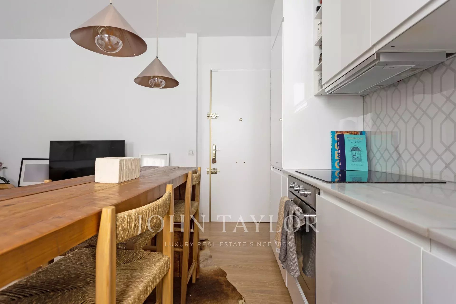 Гостиная/столовая выходит на кухню открытой планировки, образуя единое открытое пространство. Квартира была обставлена владельцами, и каждый аспект был тщательно продуман. Квартира находится в идеальном состоянии.