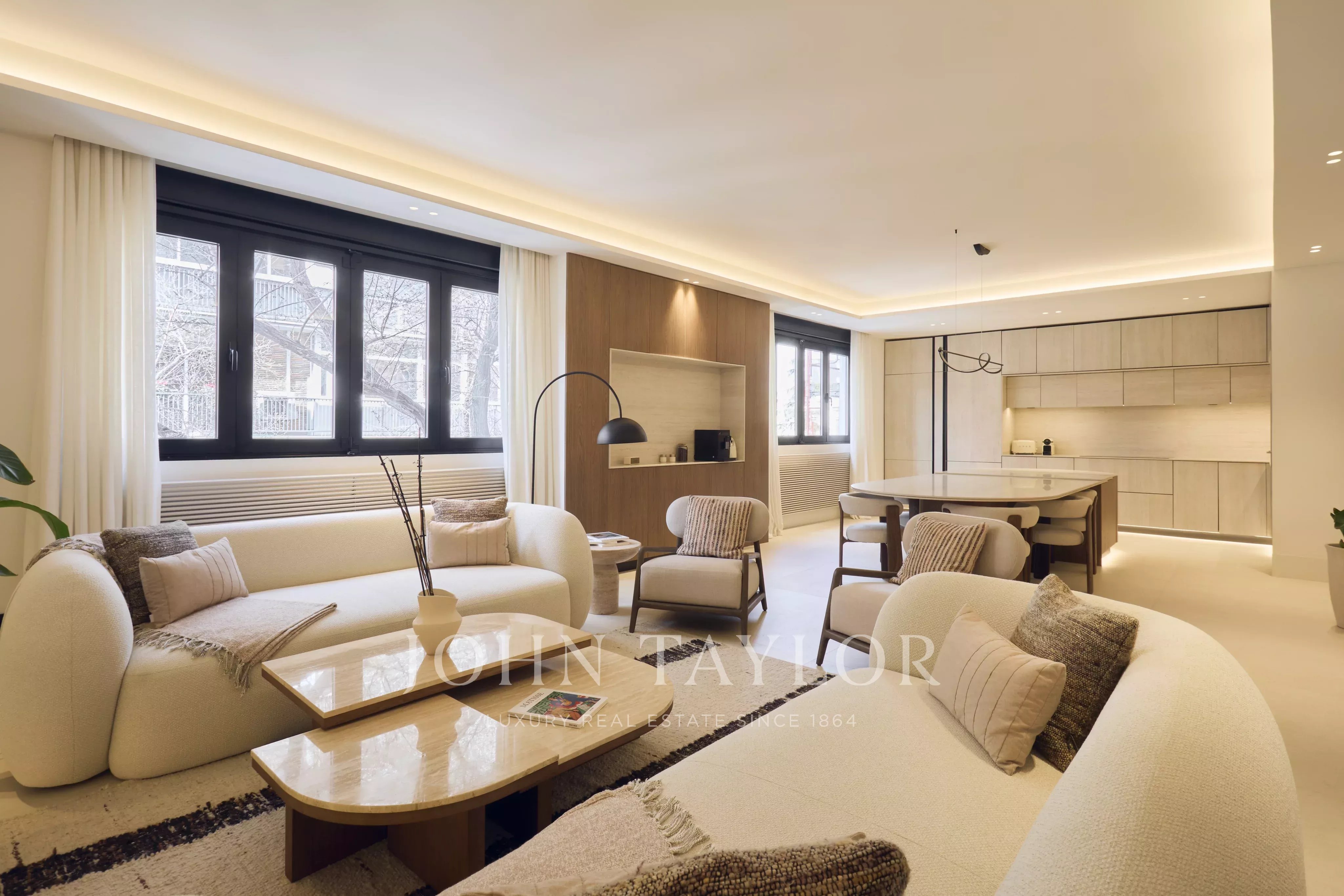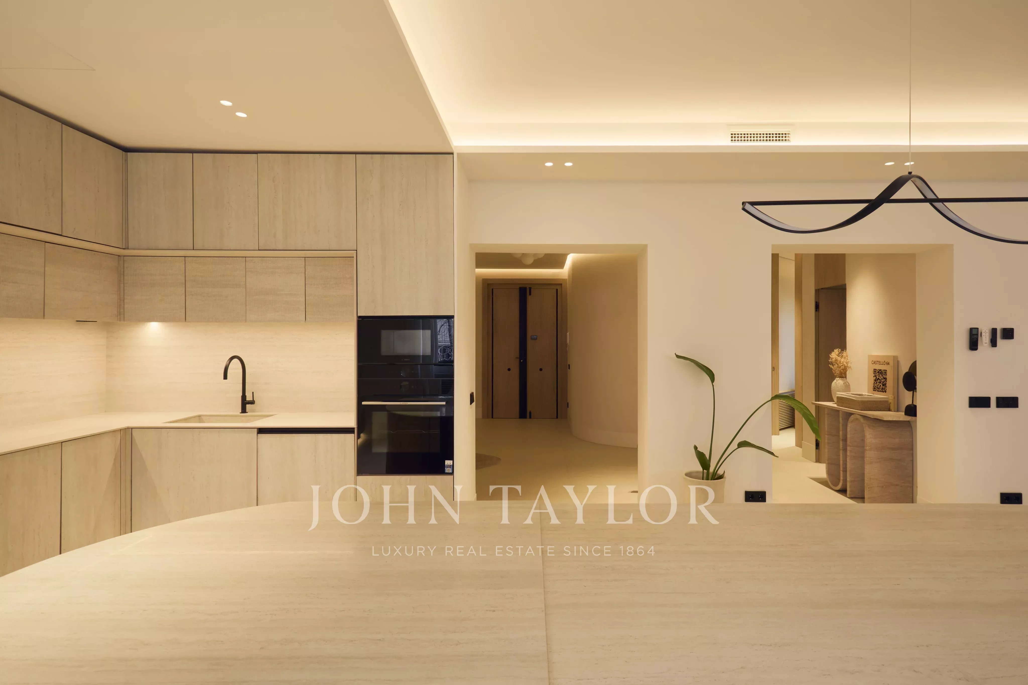 John Taylor представляет эту впечатляющую квартиру, которая отличается качеством и деталями ремонта, а также большим количеством спален и комнат. Она занимает весь этаж здания и имеет двойную ориентацию на запад и восток.