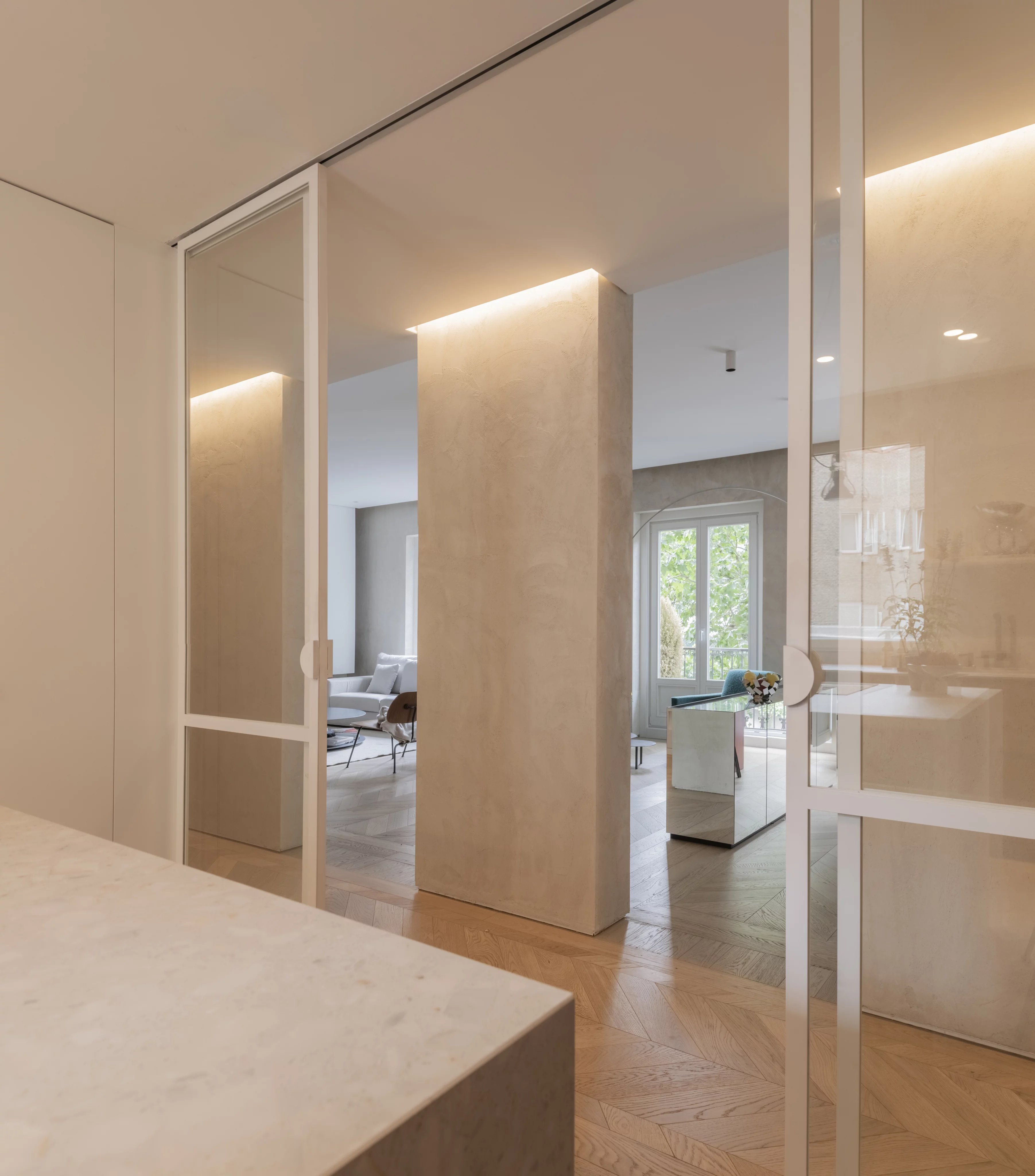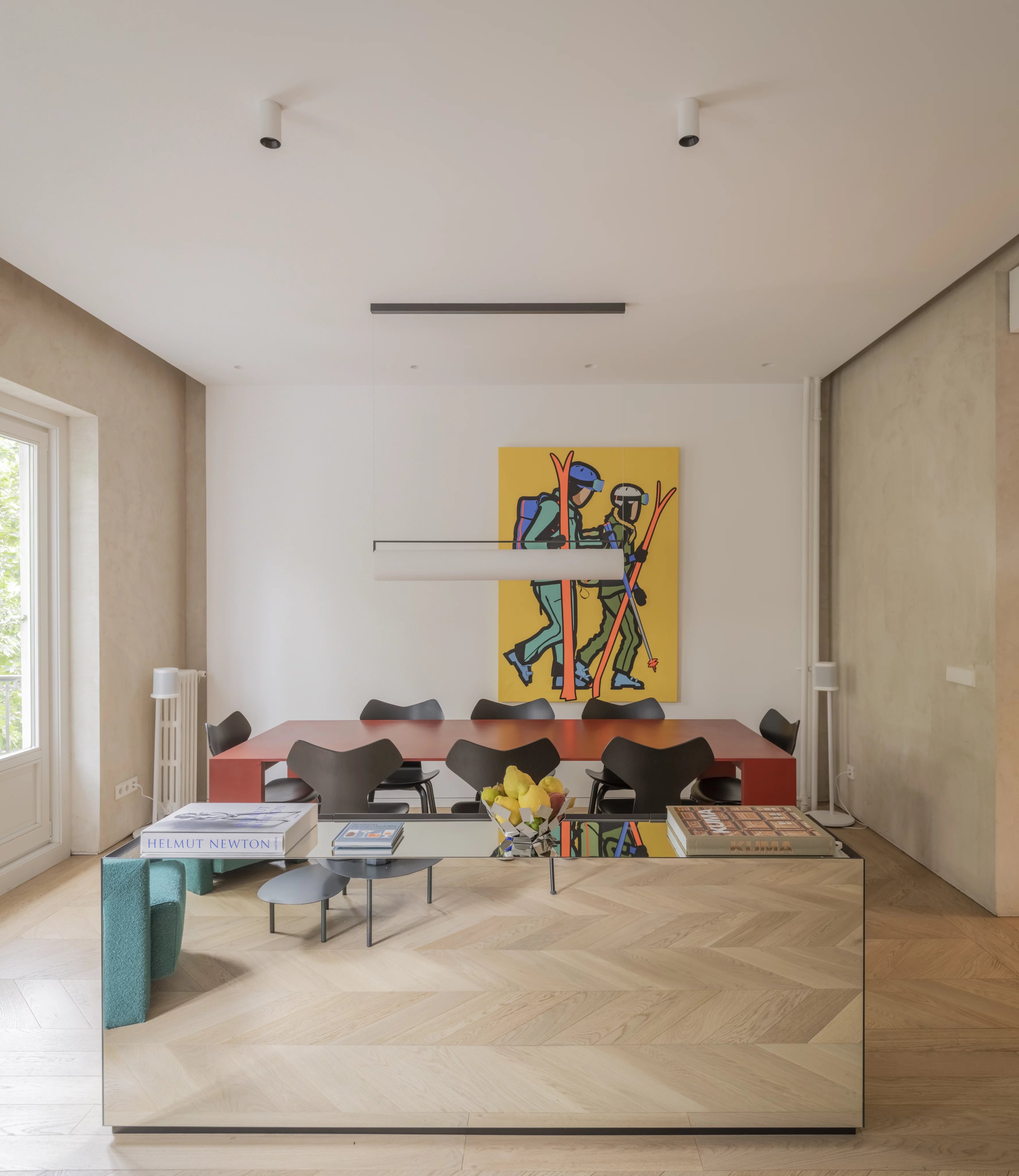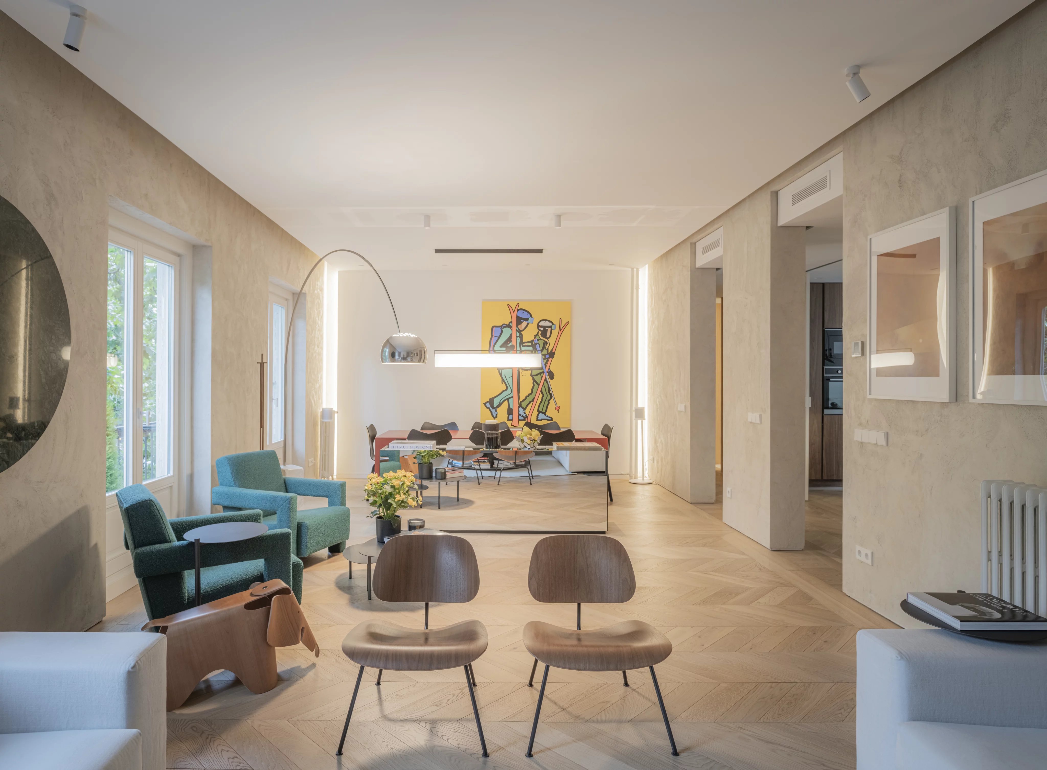 Эта квартира площадью 160 м² выделяется четырьмя внешними балконами, которые вместе с высокими потолками наполняют помещение естественным светом.