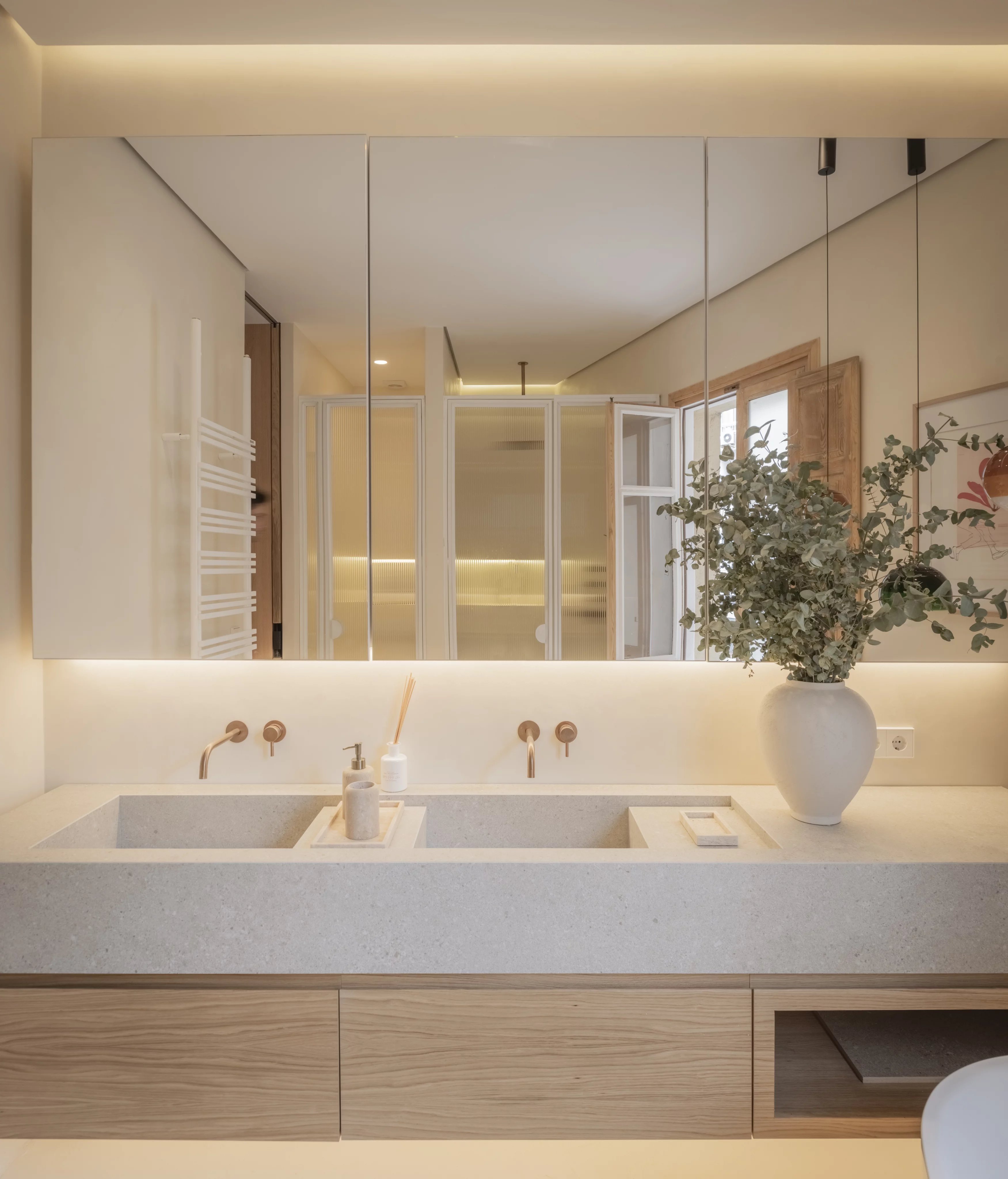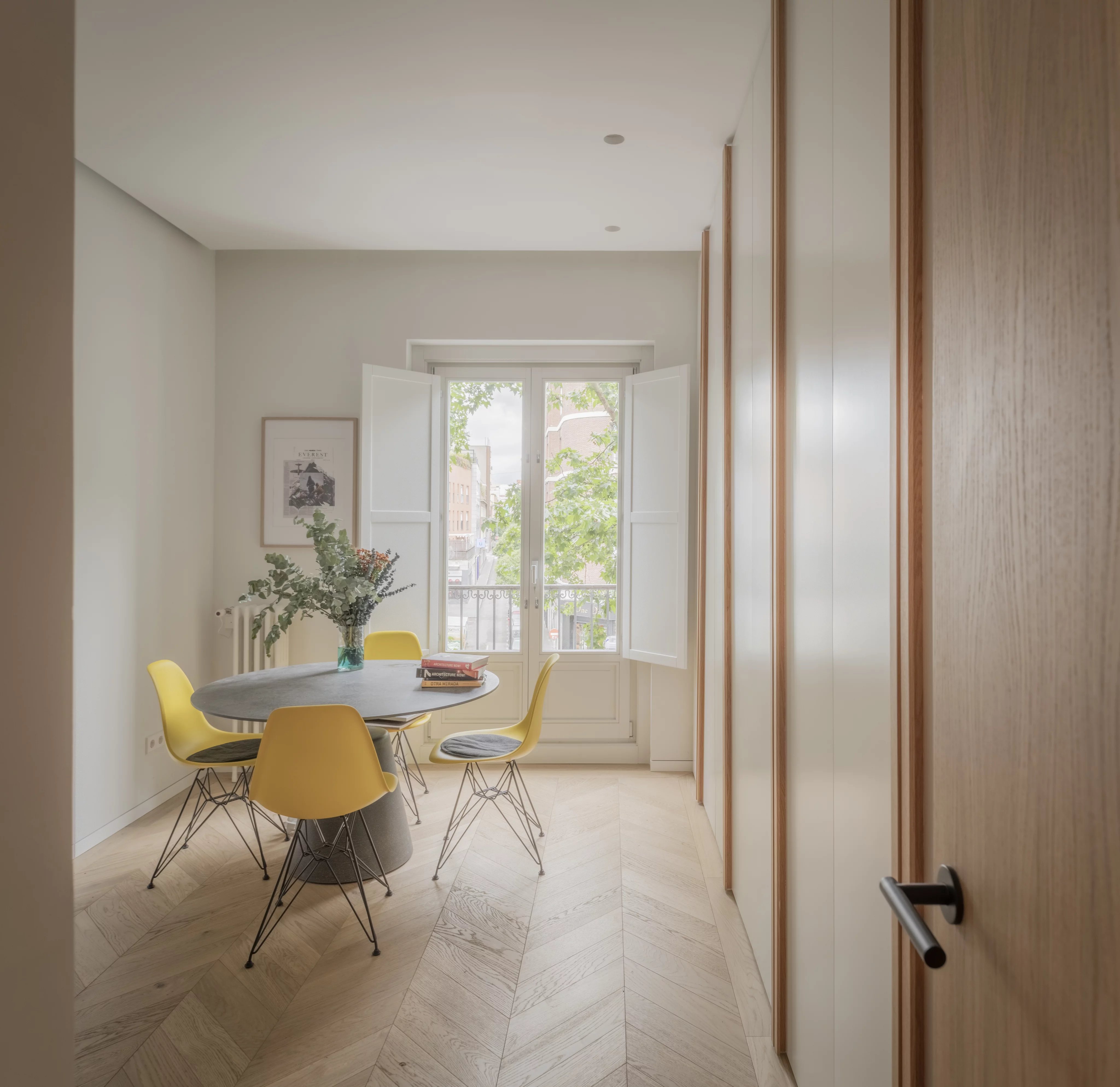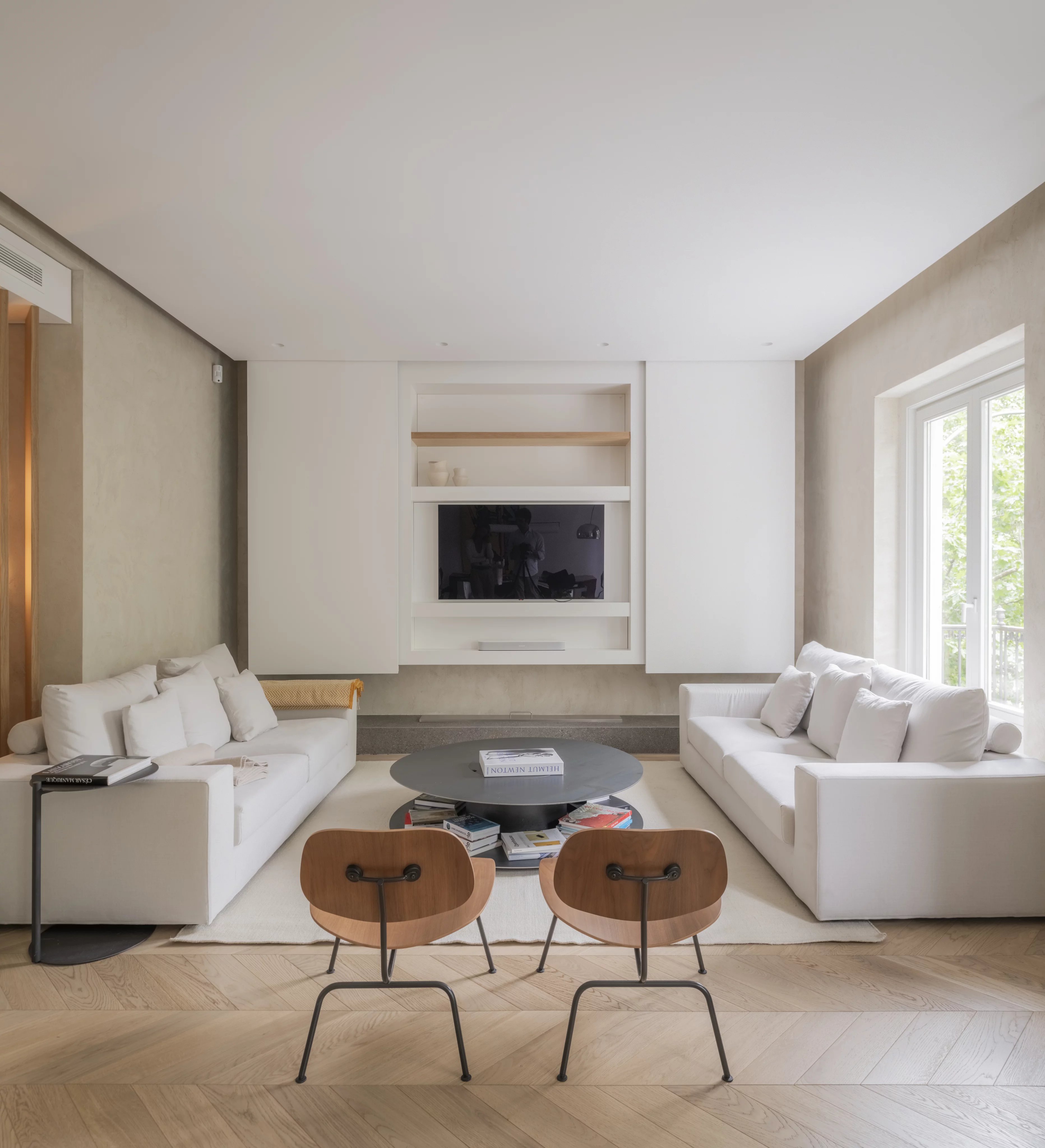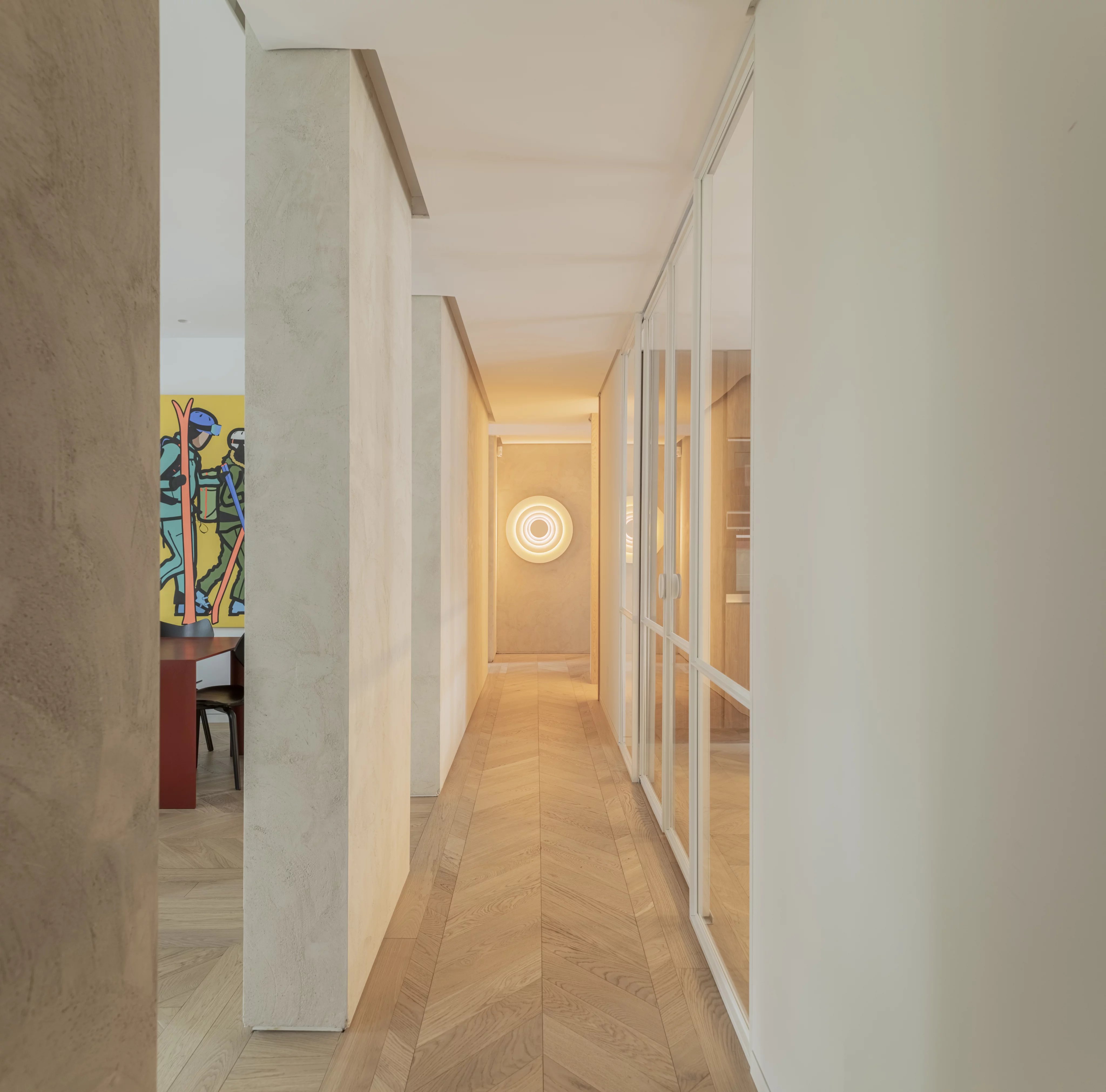 Эта квартира площадью 160 м² выделяется четырьмя внешними балконами, которые вместе с высокими потолками наполняют помещение естественным светом.