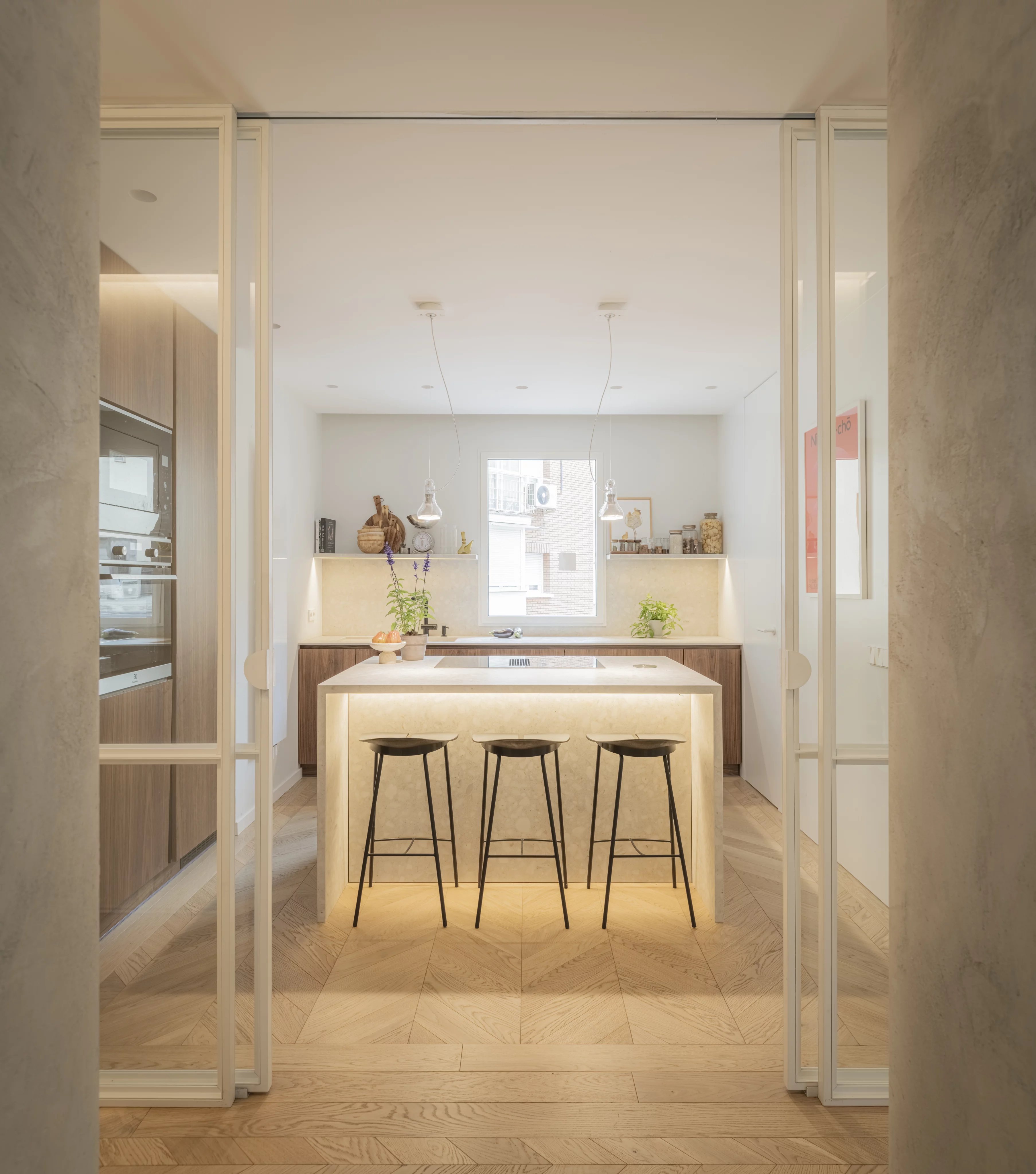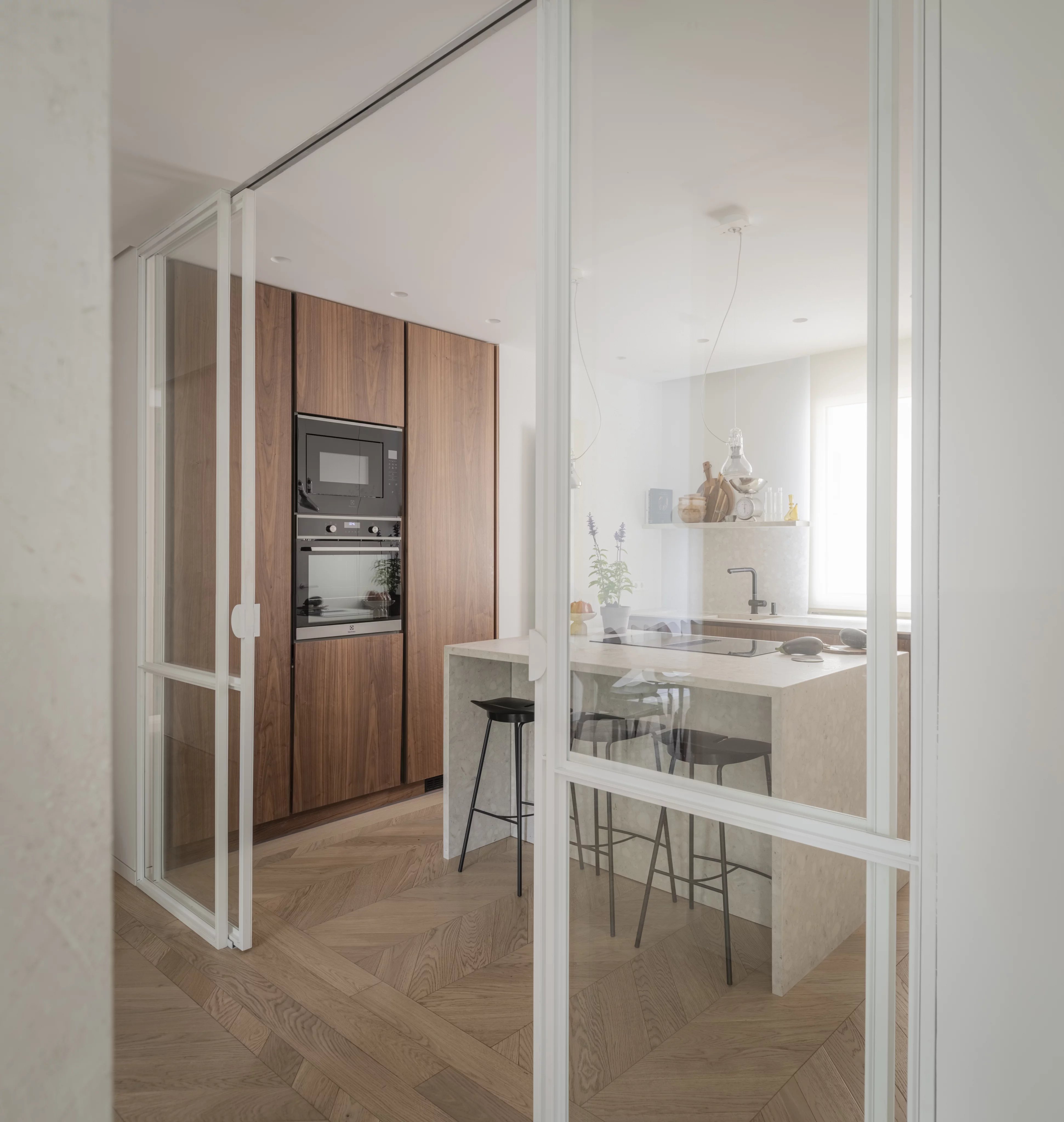 Общественная зона выходит наружу через балконы, в то время как частная зона была задумана так, чтобы обеспечить максимальный комфорт и уединение.