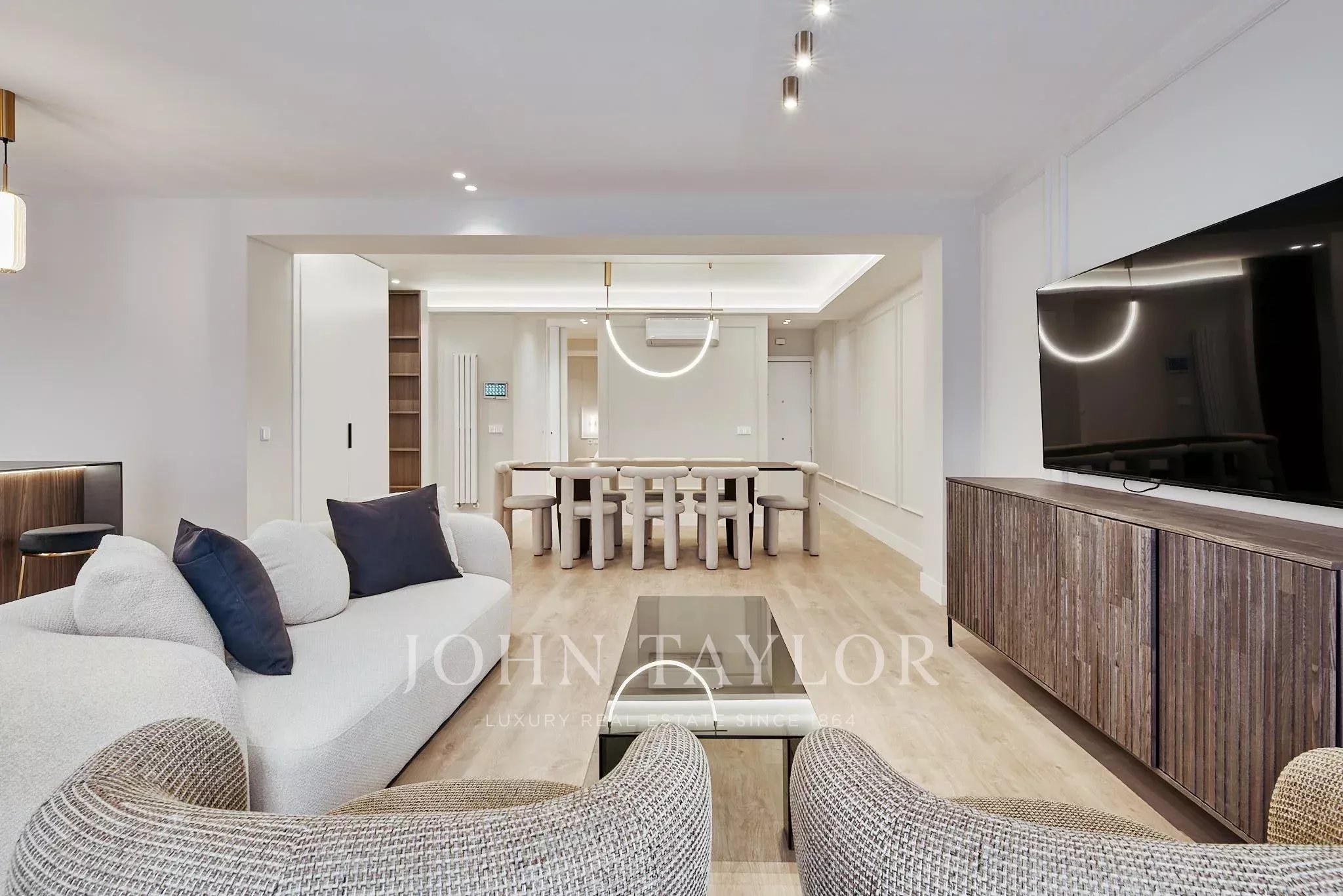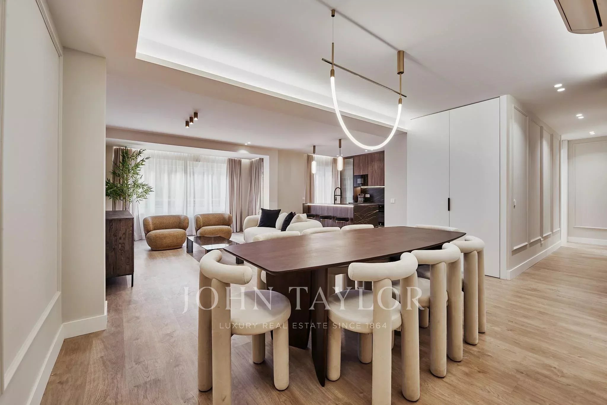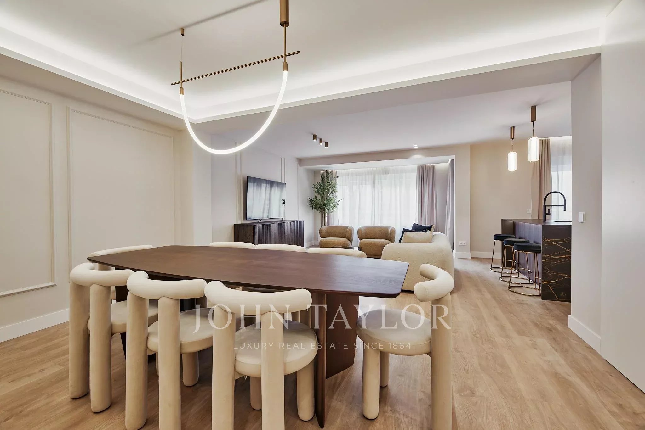 Проект ремонта привел к щедрому и гармоничному распределению, где гостиная-столовая напрямую выходит на террасу, создавая естественную связь между интерьером и экстерьером. Полностью оборудованная кухня элегантно интегрирована в общий дизайн, предназначена для современного образа жизни.