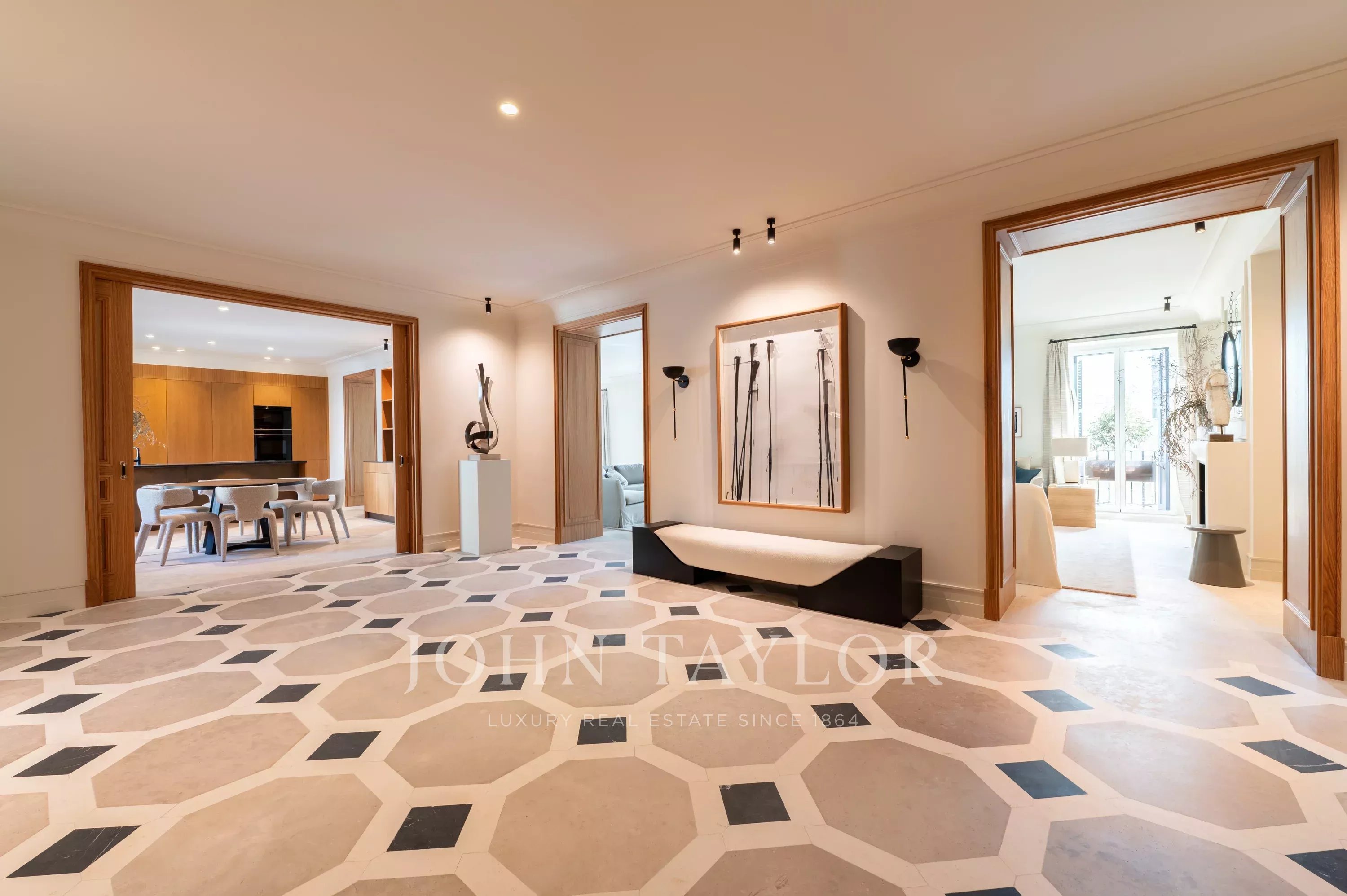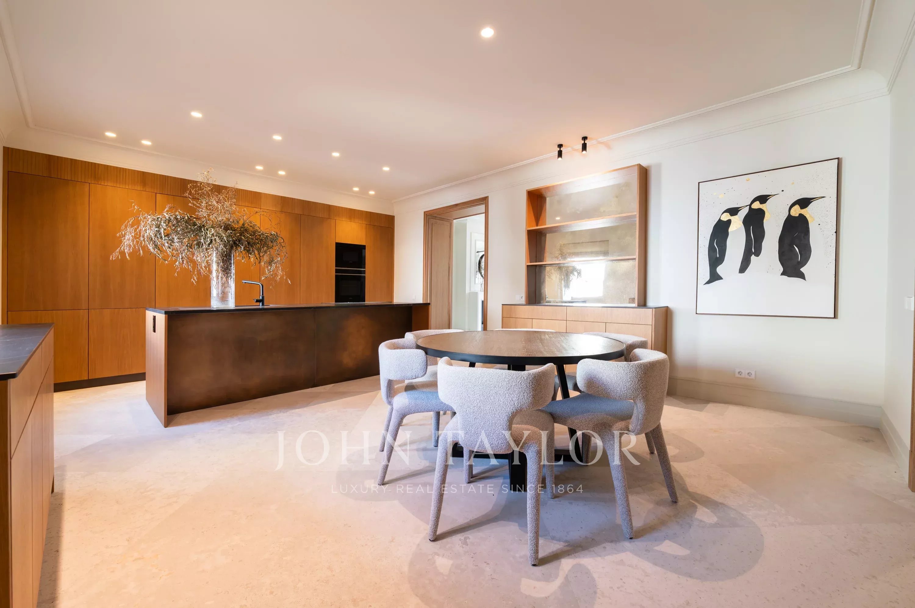 В спальной зоне находятся 3 спальни с ванными комнатами. Впечатляющая главная спальня имеет большую ванную комнату-гардеробную и качественную отделку. В ходе комплексной реформы этого дома были выбраны лучшие материалы и установки. Каждая деталь была продумана до мелочей, чтобы сделать эту квартиру уникальной и эксклюзивной.