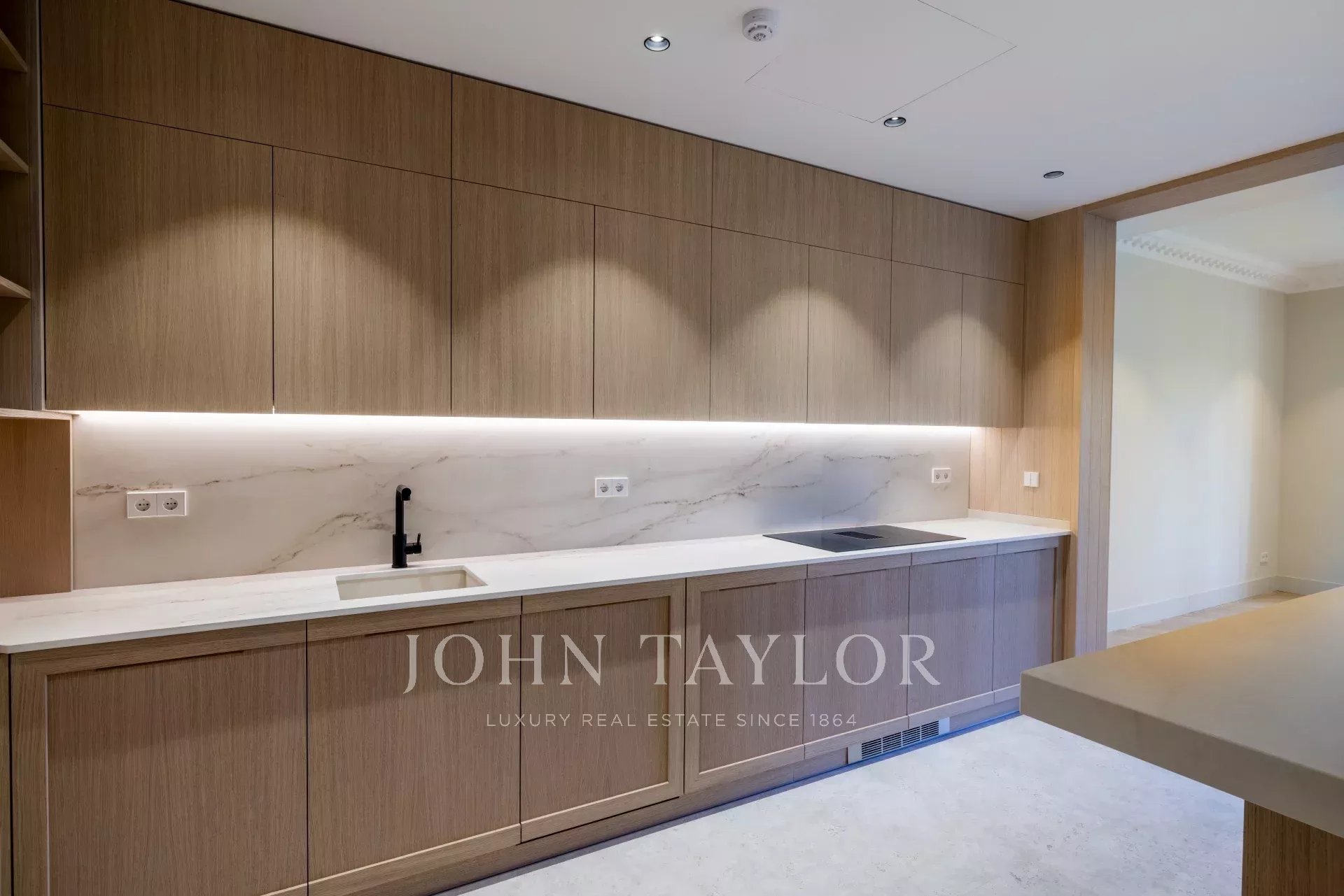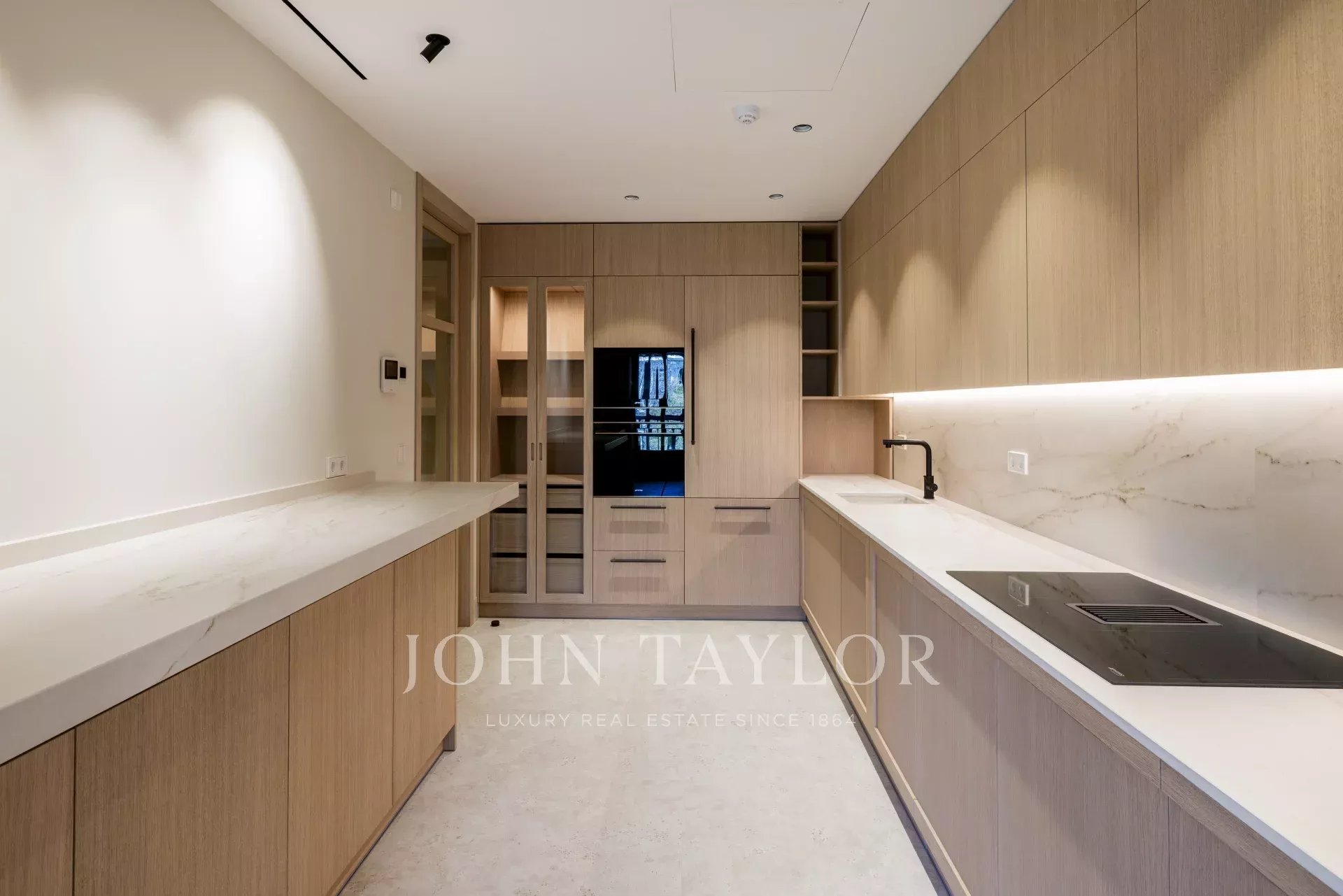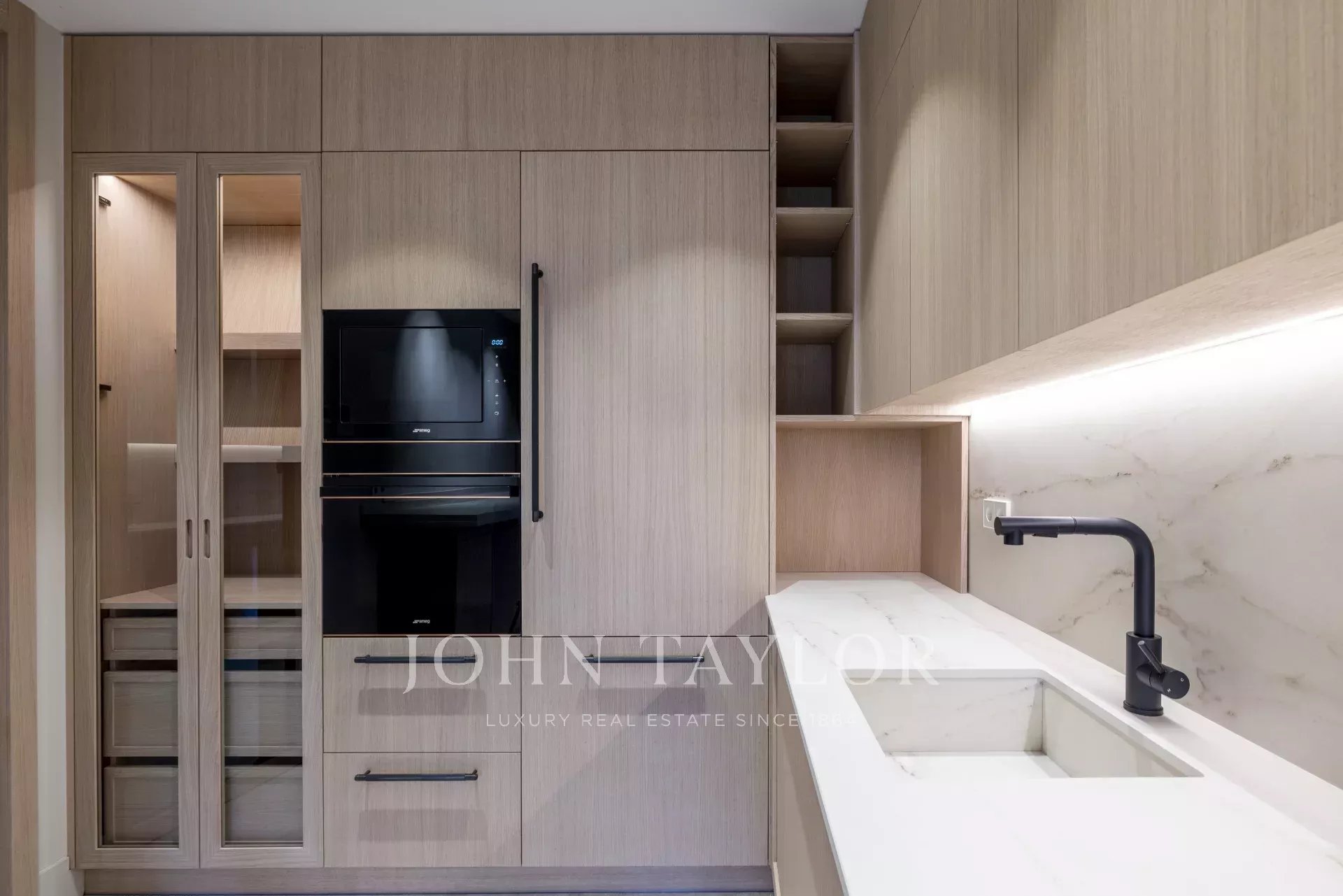 Вход в дом ведет в просторную двойную гостиную-столовую с камином на биоэтаноле. Отдельная кухня современного дизайна, полностью оборудованная техникой SMEG, дополнена отдельной прачечной, которую можно переоборудовать под комнату для прислуги с ванной.