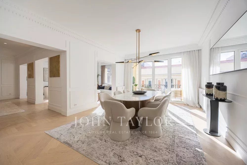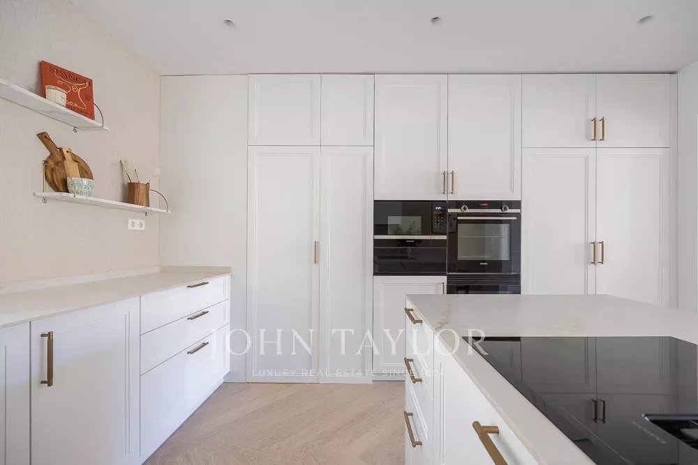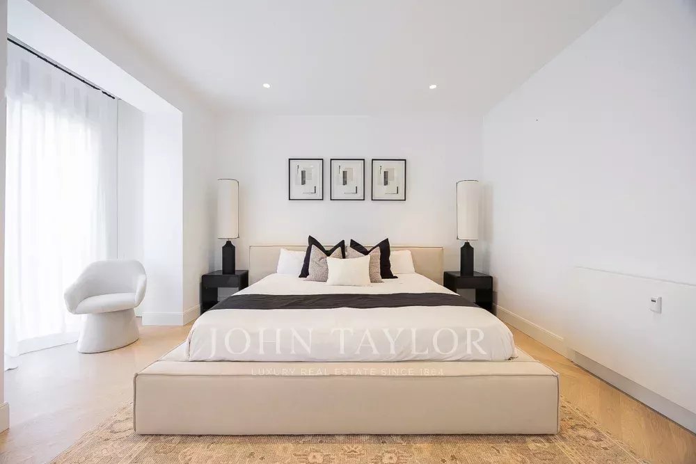 Приватная зона включает в себя три спальни с ванными комнатами, а также удобный кабинет для работы из дома. Главная спальня предлагает просторное пространство и гардеробную, а также выходит на большой внутренний двор, обеспечивая прекрасное естественное освещение.