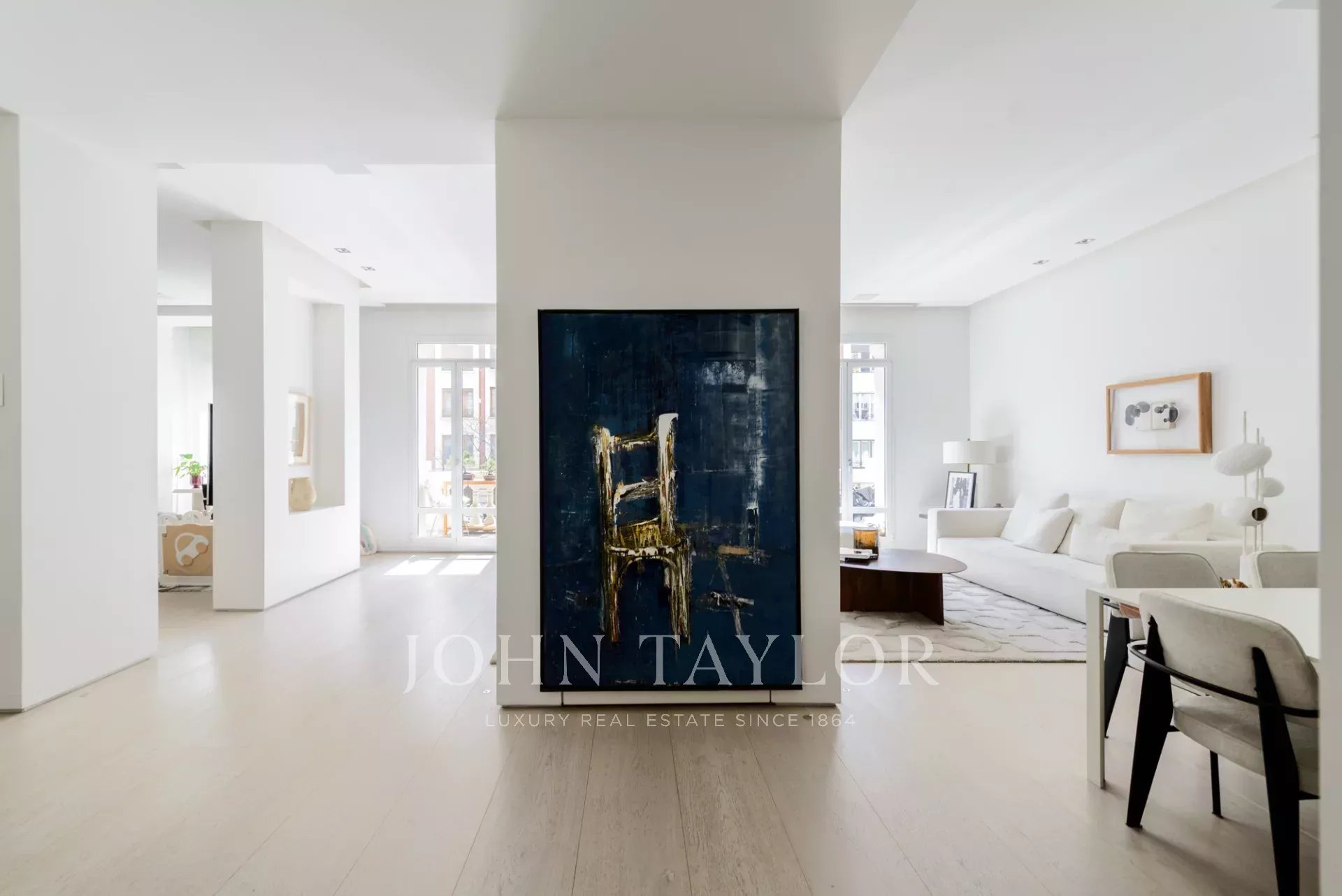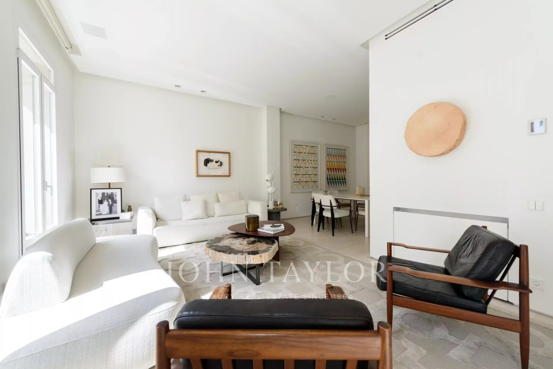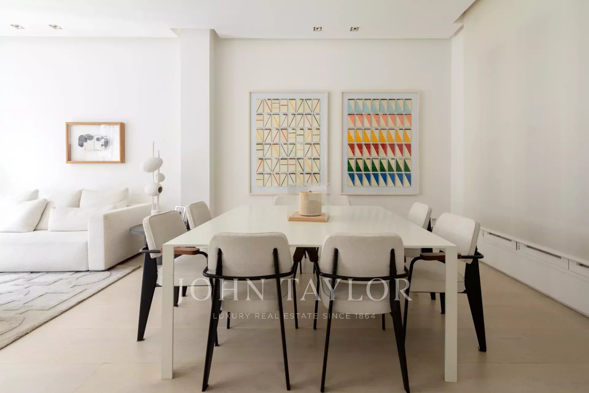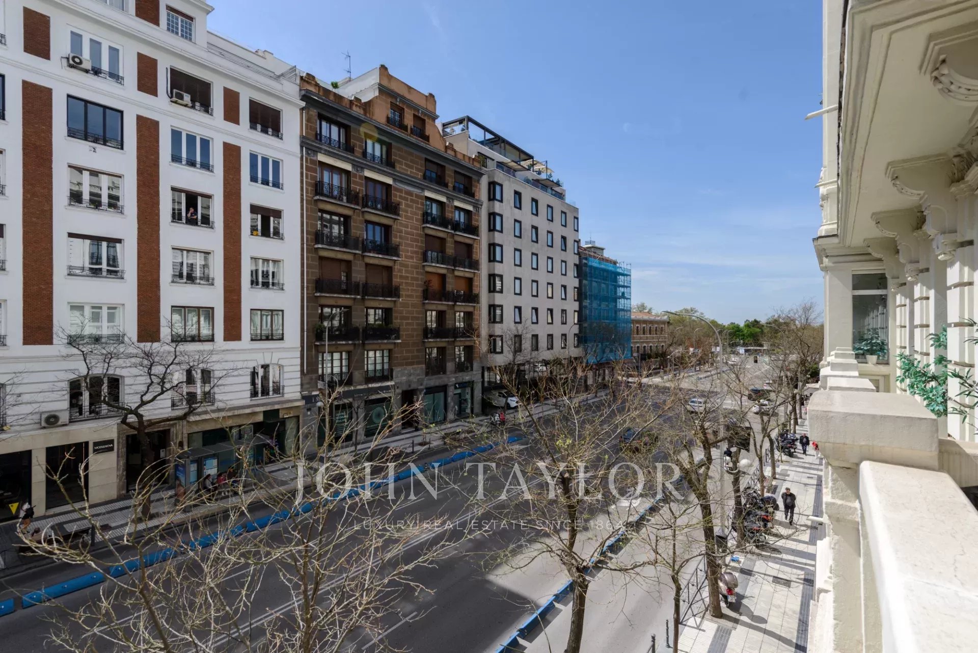 Этот уникальный объект расположен рядом с парком Ретиро, в впечатляющем здании с классическим фасадом. Мы особенно выделяем его четыре балкона и внушительную высоту потолков, которые придают простор и характер каждой комнате. Над ремонтом работала известная команда испанских дизайнеров, и каждая деталь была создана специально для этой квартиры, включая элегантные двери от пола до потолка, которые усиливают ощущение изысканности.